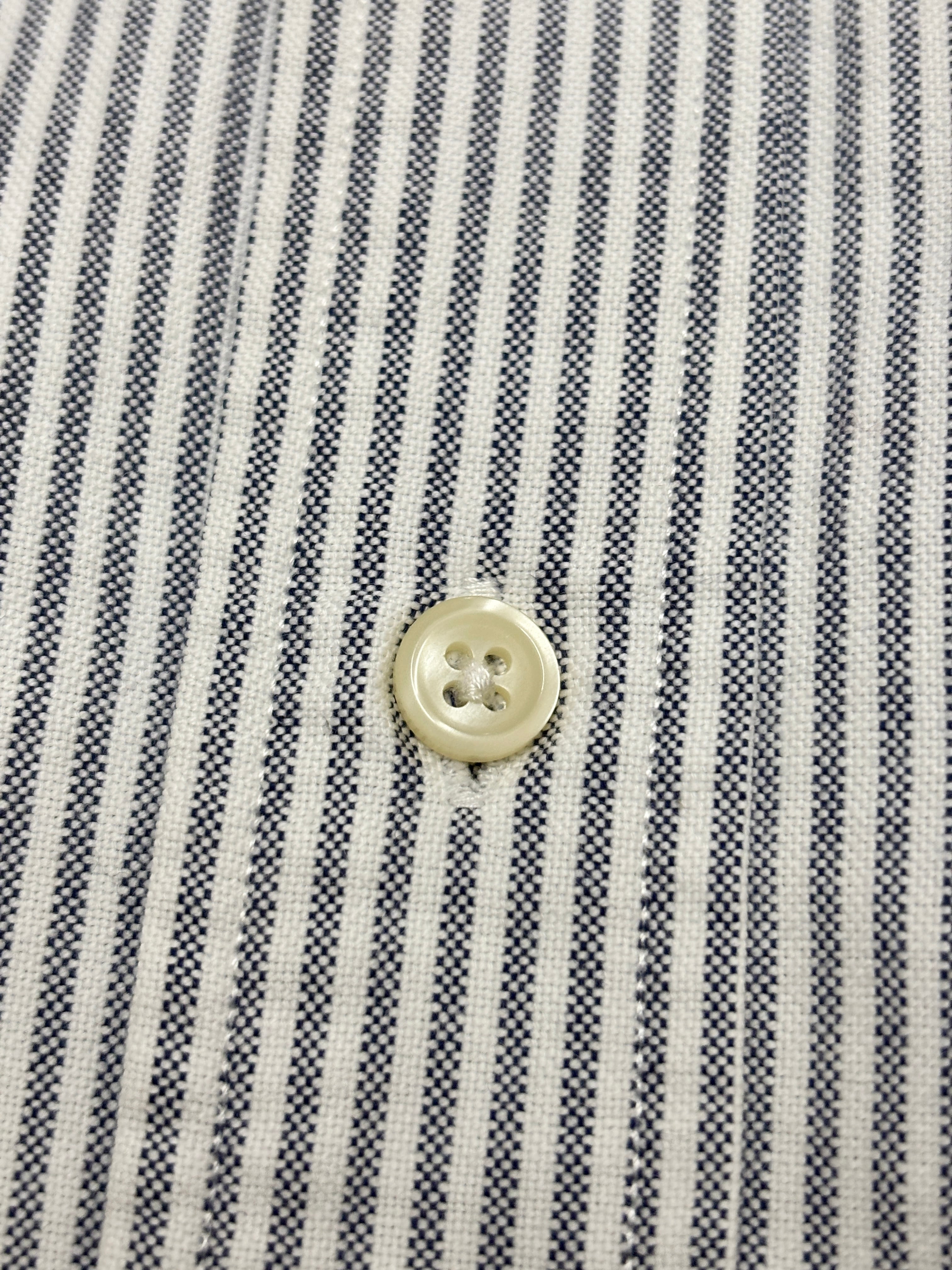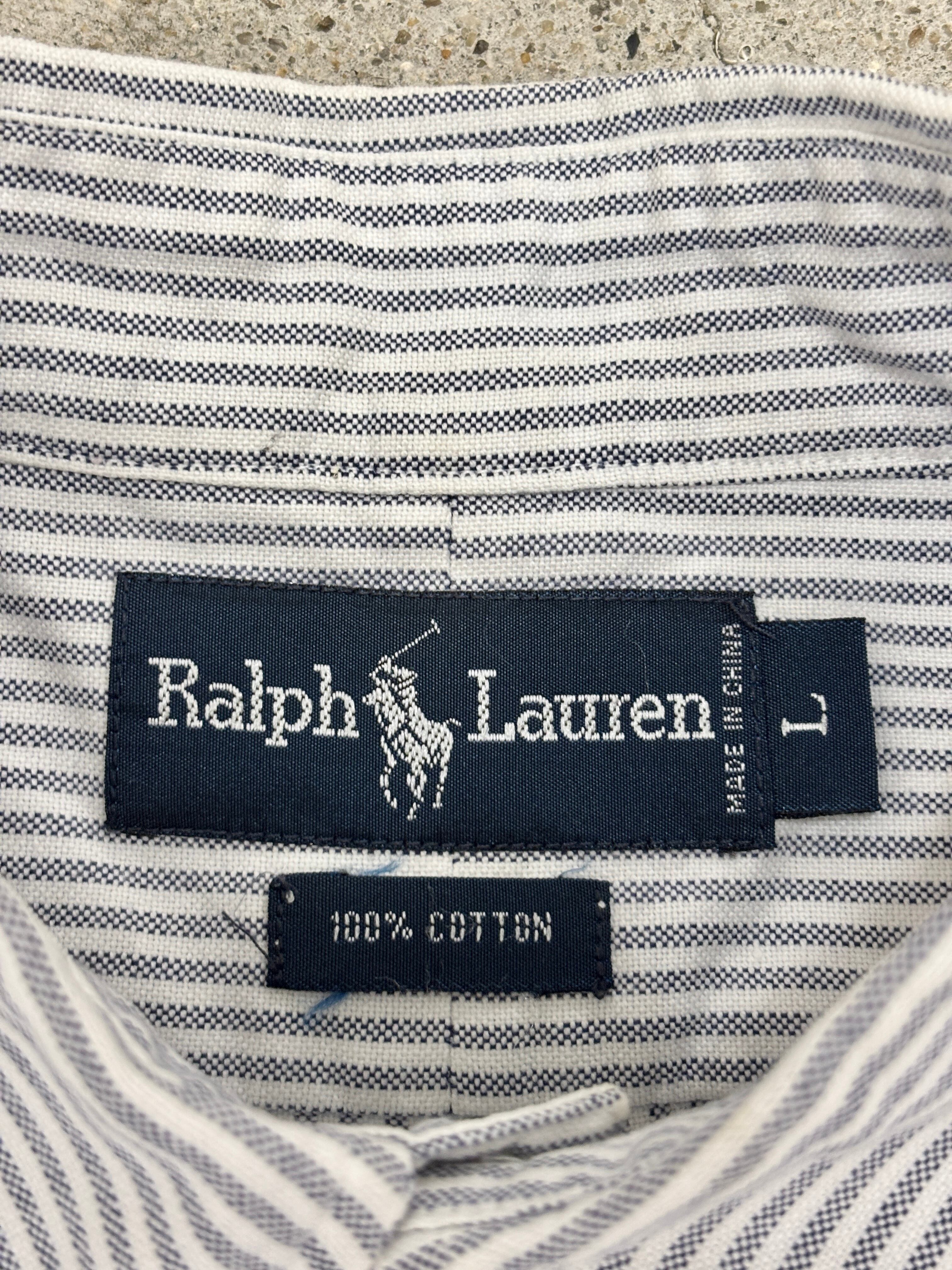 90~00s POLO RALPH LAUREN/Stripe BD Shirt/L/ストライプ柄ボタンダウンシャツ/ポニー刺繡/長袖シャツ/グレ-/ホワイト/ポロラルフローレン