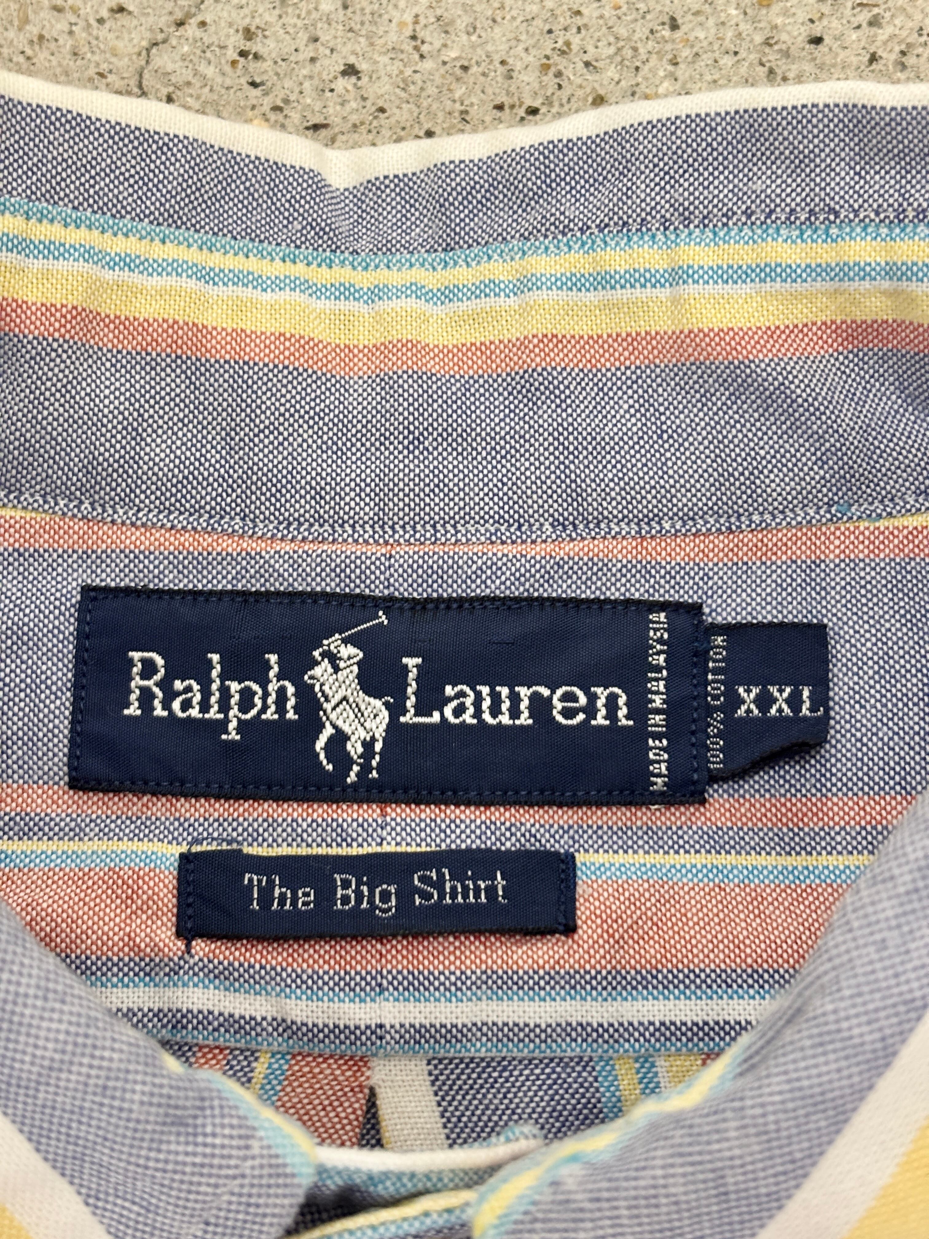 90~00s POLO RALPH LAUREN/Stripe BD Shirt/The Big Shirt/XXL/ストライプ柄ボタンダウンシャツ/ポニー刺繡/長袖シャツ/マルチカラ-/ポロラルフローレン/アメカジ/古着