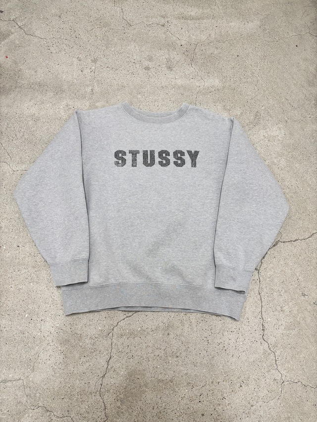 00s OLD STUSSY/Logo print Sweat/S/ロゴプリントスウェット/グレ-/ステューシ-/オ-ルドステューシ-