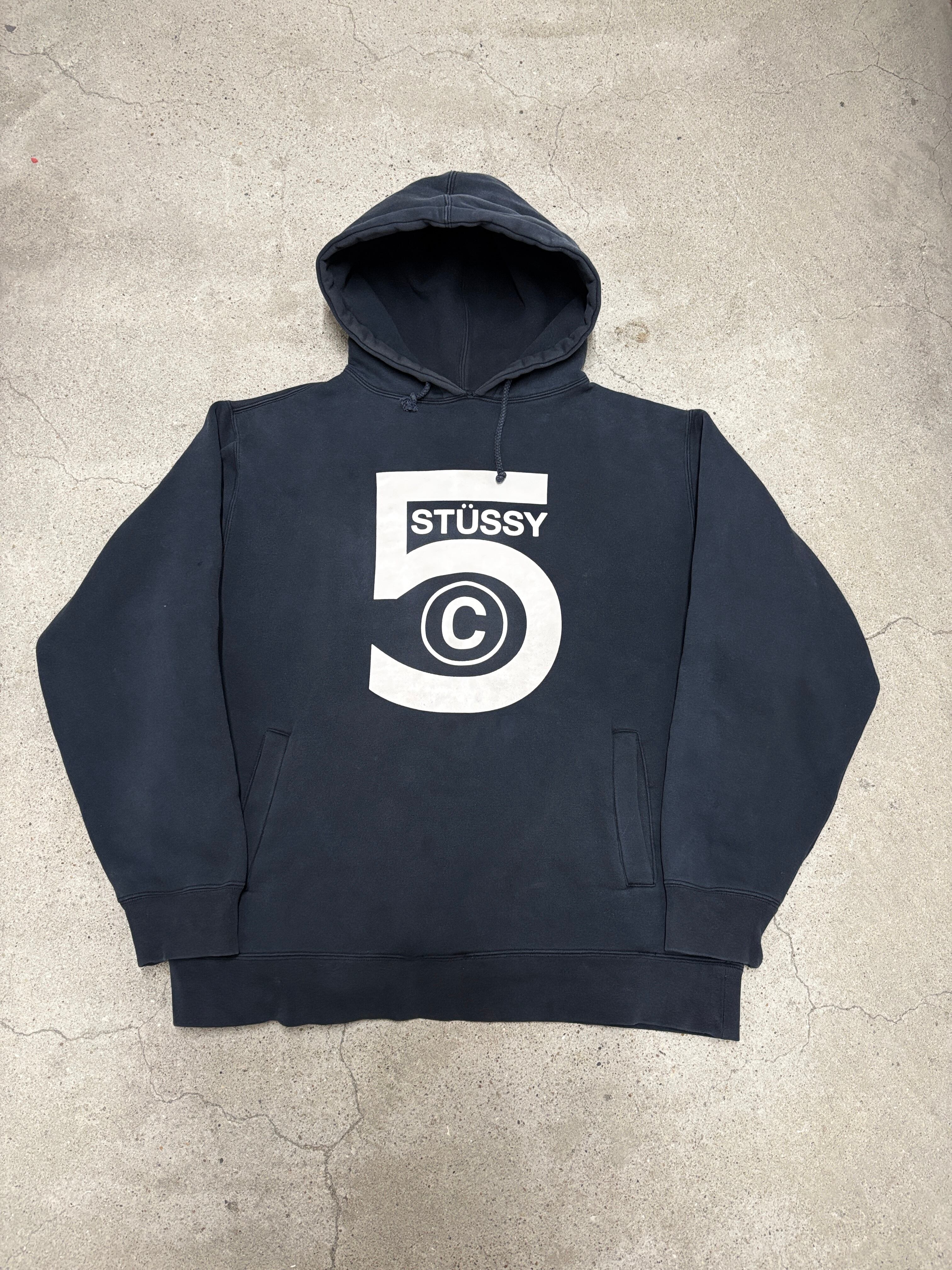 00s OLD STUSSY/No.5 print Hoodie/M/ロゴプリントフ-ディ-/パ-カ-/ブラック/ステューシー/オ-ルドステューシー