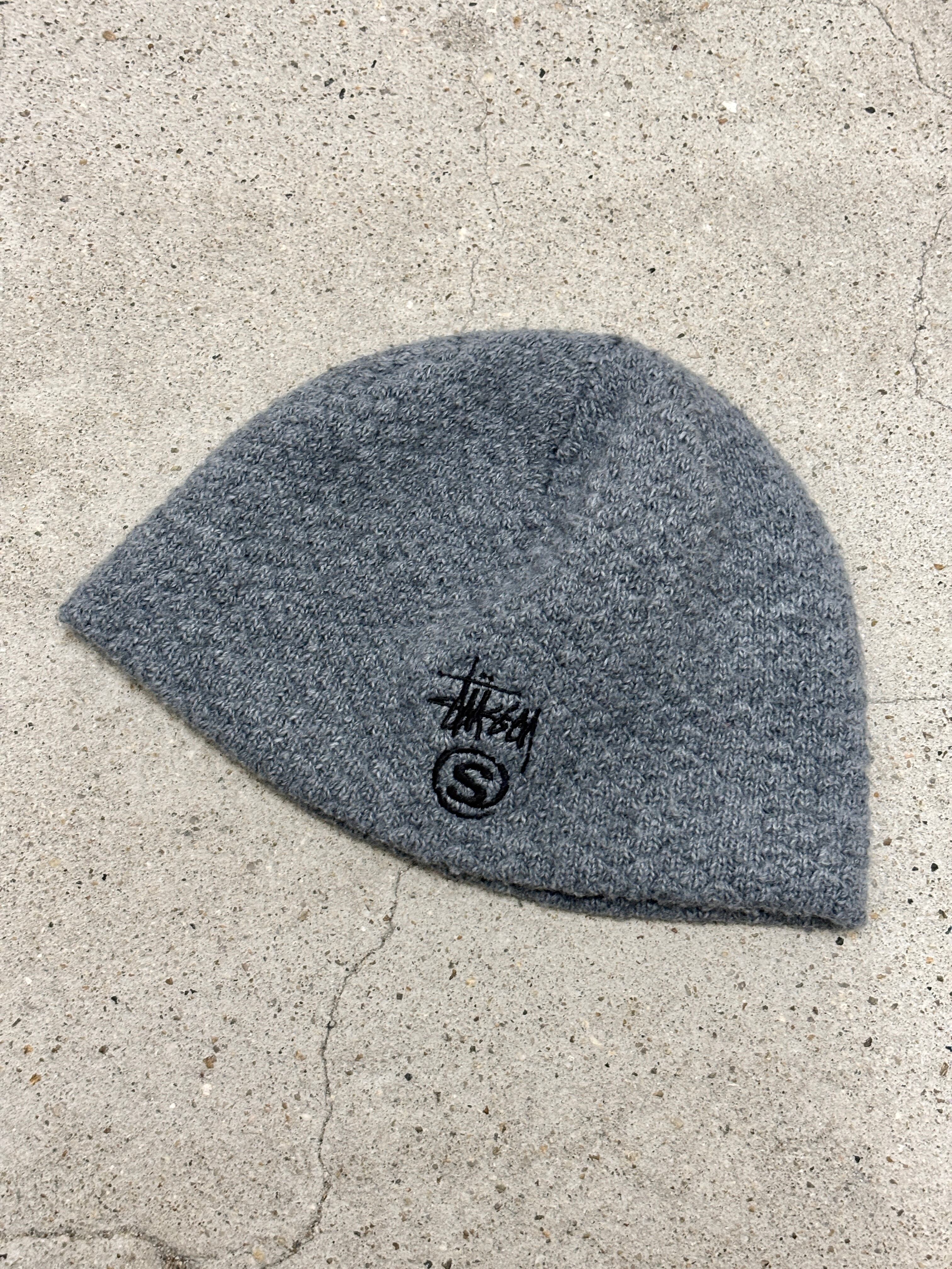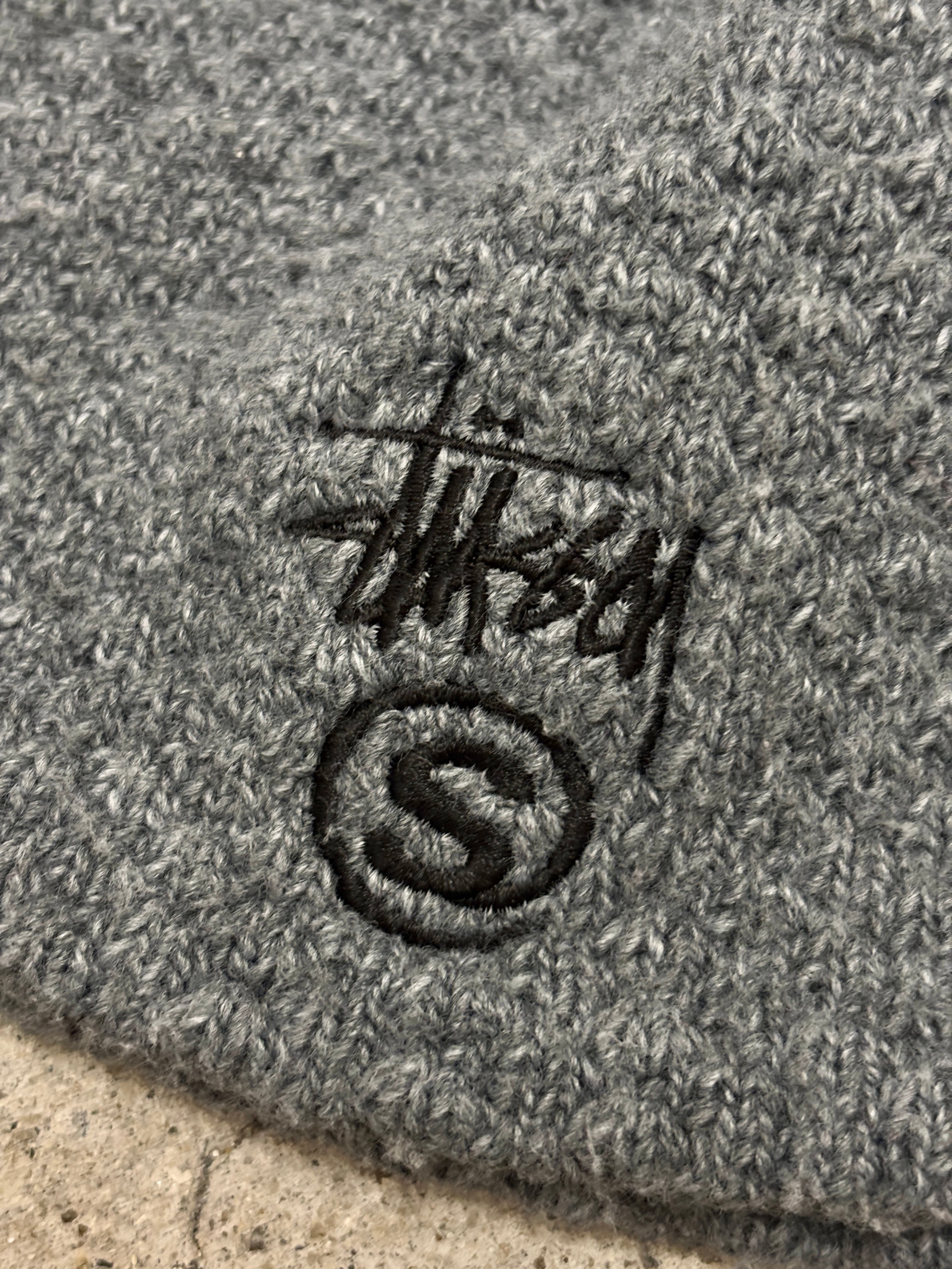 90~00s OLD STUSSY/Logo embroidery Beanie/USA製/Free/刺繍ロゴビ-ニ-/ストックロゴ/グレー/ステューシー/オ-ルドステューシー/帽子/ア―カイブ