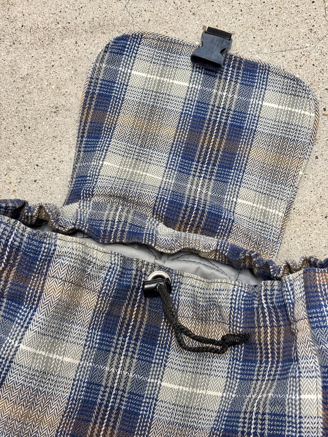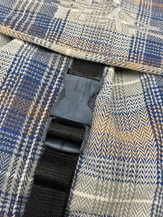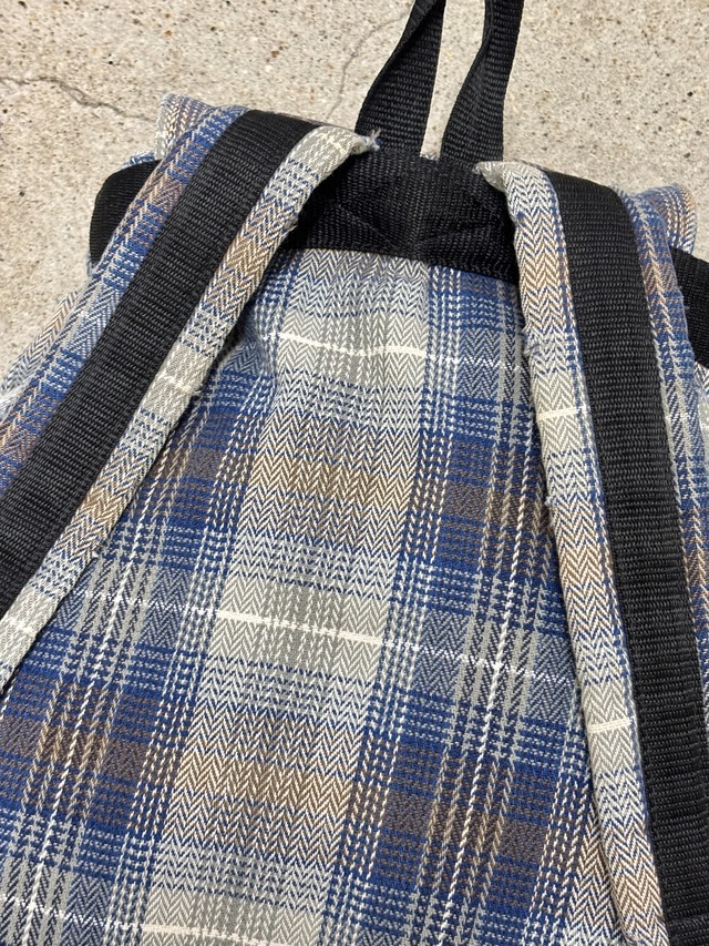 90s NO FEAR/Logo embroidery Backpack/USA製/刺繍ロゴ/バックパック/リュック/チェック柄/ネイビ-/グレ-/ノ-フィア-