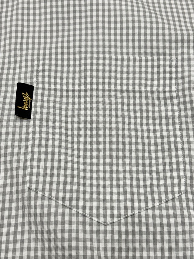 10s STUSSY × NEXUS7/RETROSPECTIVE/30th Anniversary/Crazy Button Shirt/2010年/XL/クレイジ-ボタンシャツ/グラデ-ション/ギャルソンシャツ/復刻モデル/長袖シャツ/グレ-/ホワイト/ネクサスセブンコラボ/ステューシー
