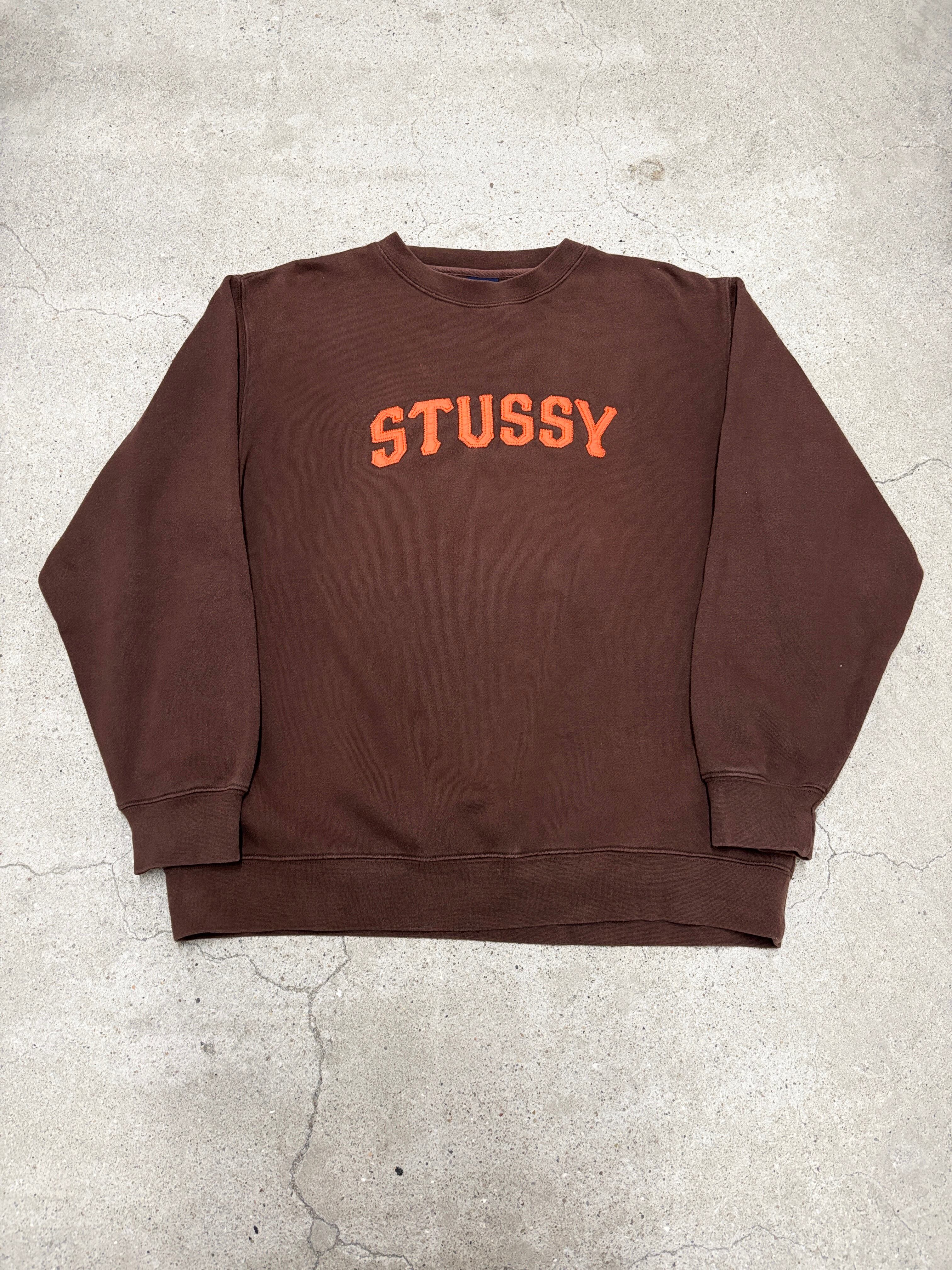 00s OLD STUSSY/Logo patch Sweat/紺タグ/S/ロゴパッチスウェット/ブラウン/オレンジ/ステューシー/オ-ルドステューシー/古着/ア―カイブ
