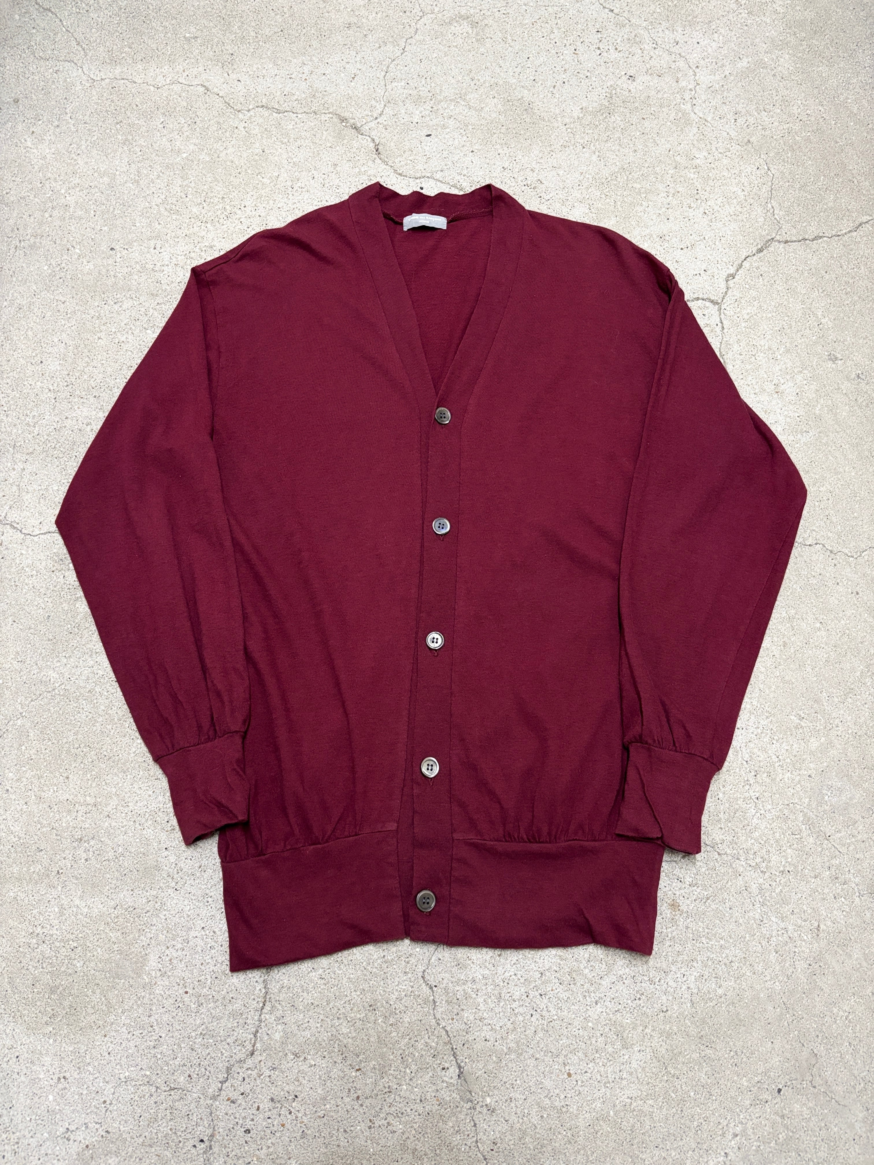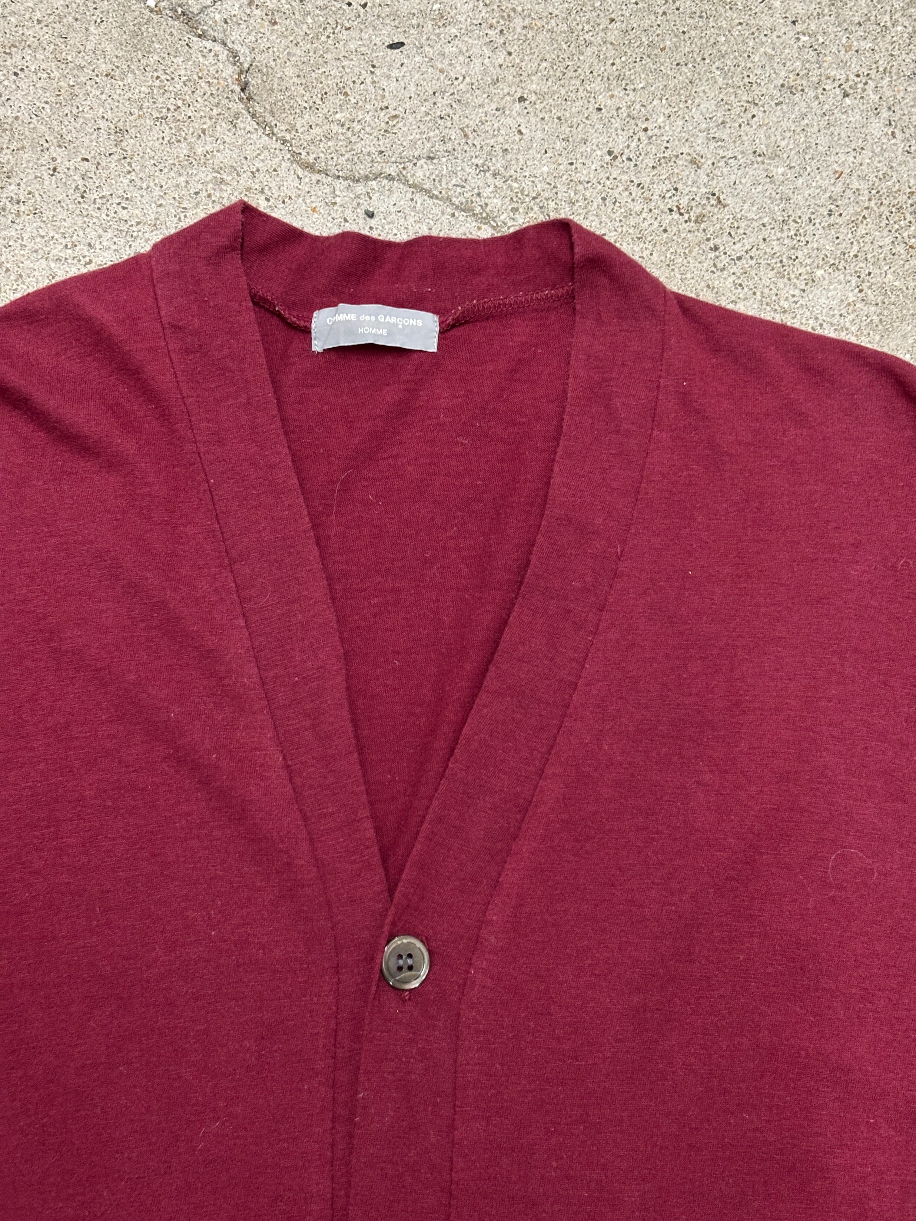 90s COMME des GARCONS HOMME/Cotton Cardigan/田中オム/S-M相当/コットンカ-ディガン/バ-ガンディ-/コムデギャルソンオム/日本製/古着/ア―カイブ