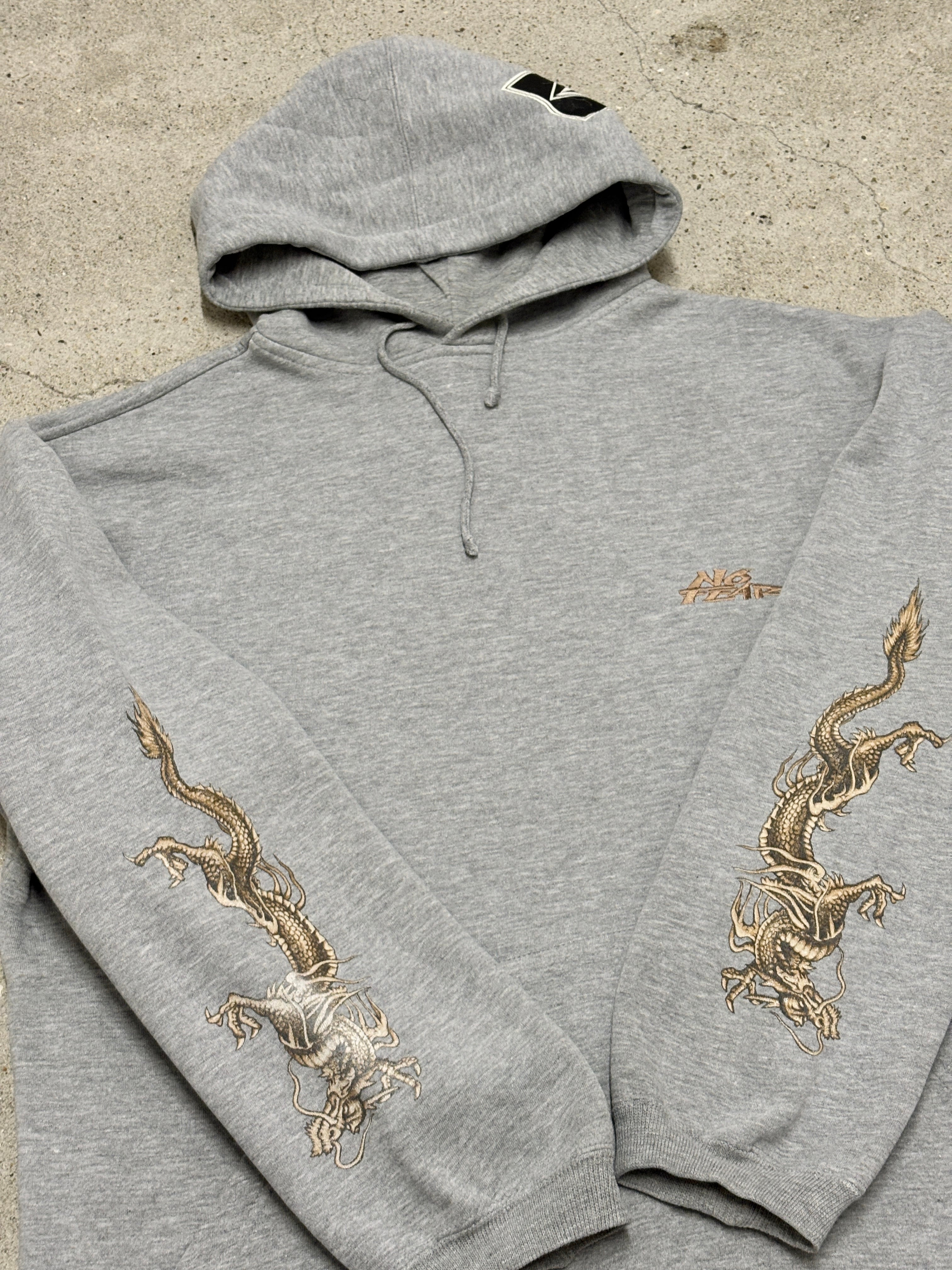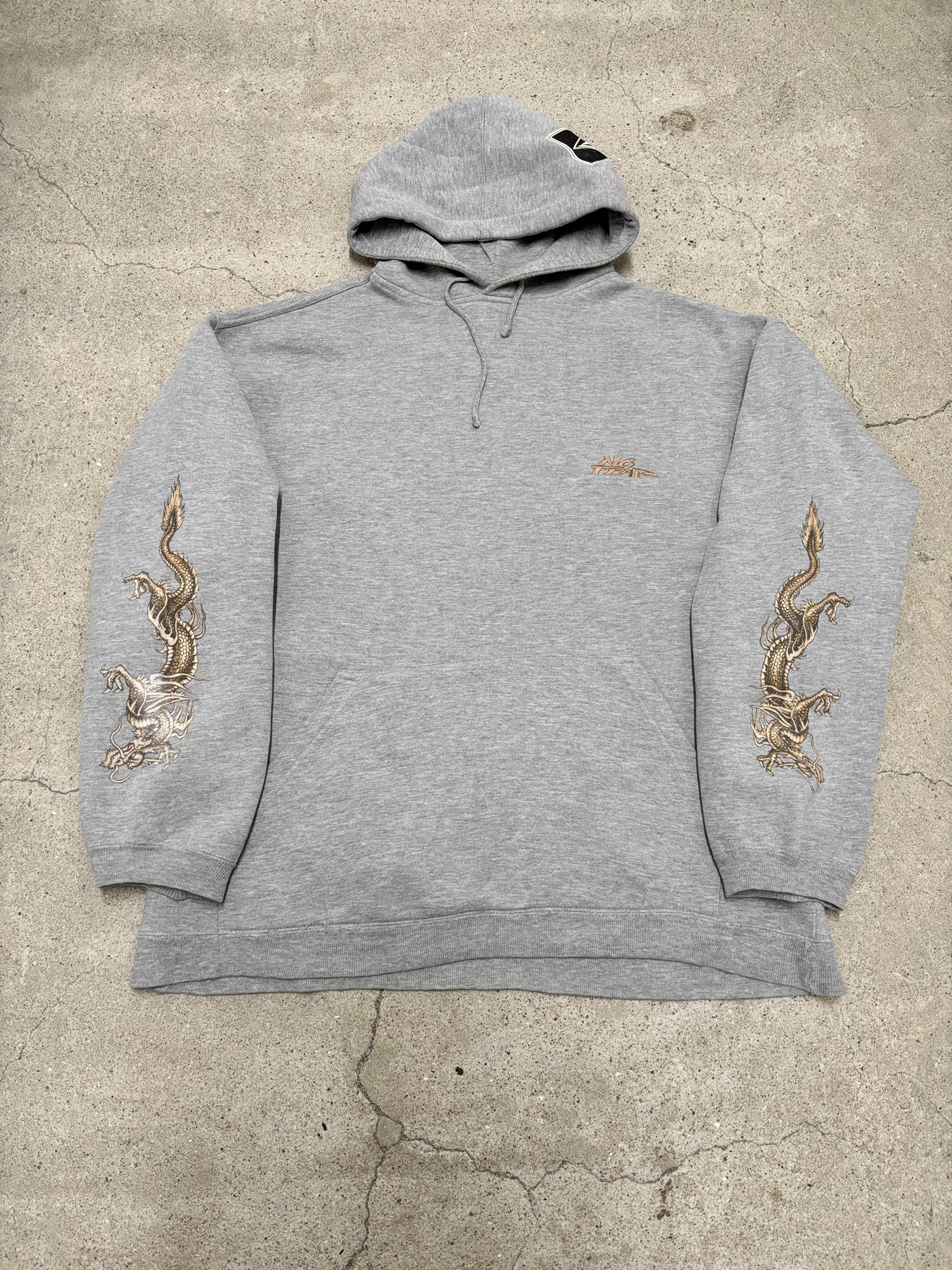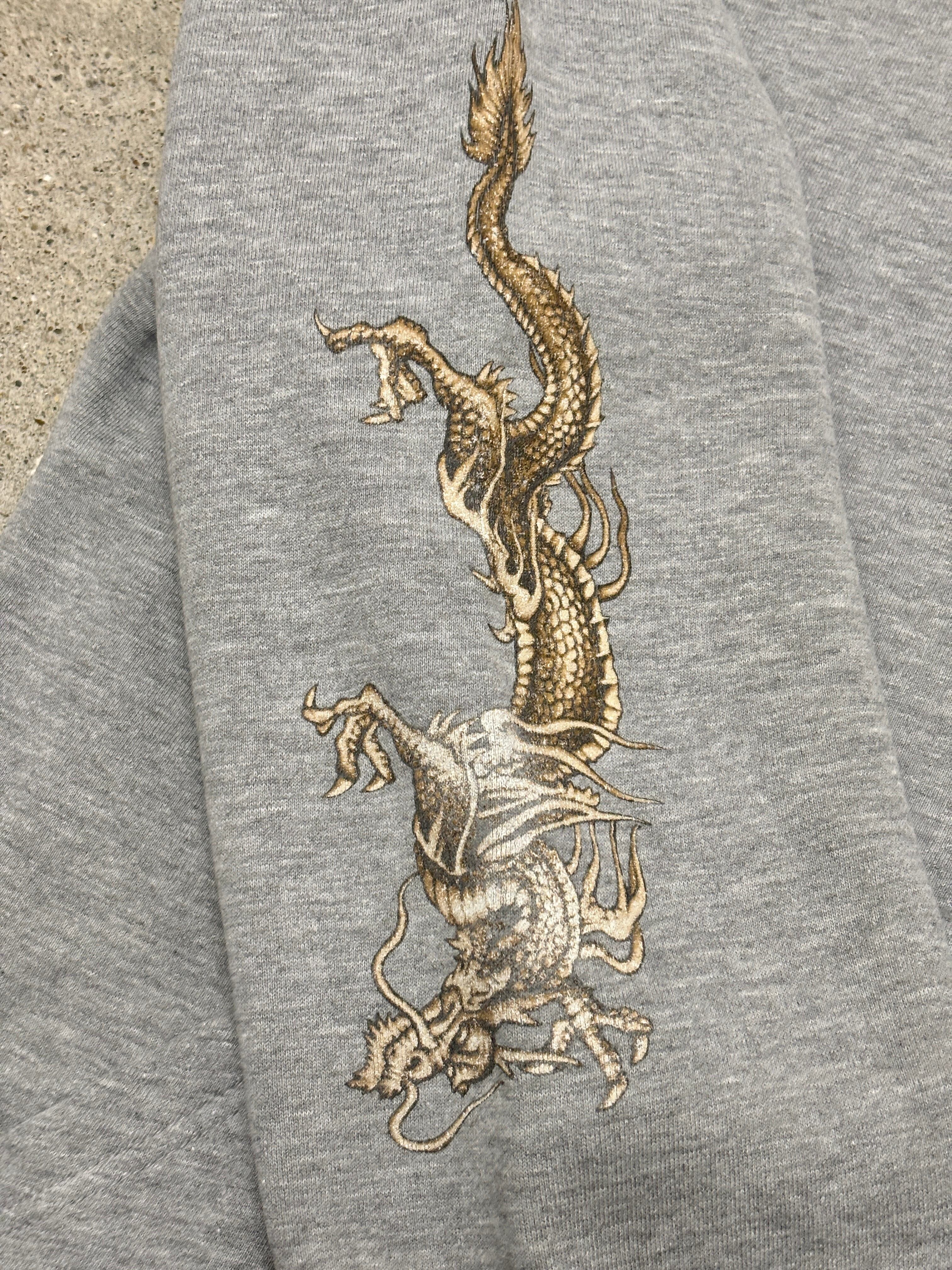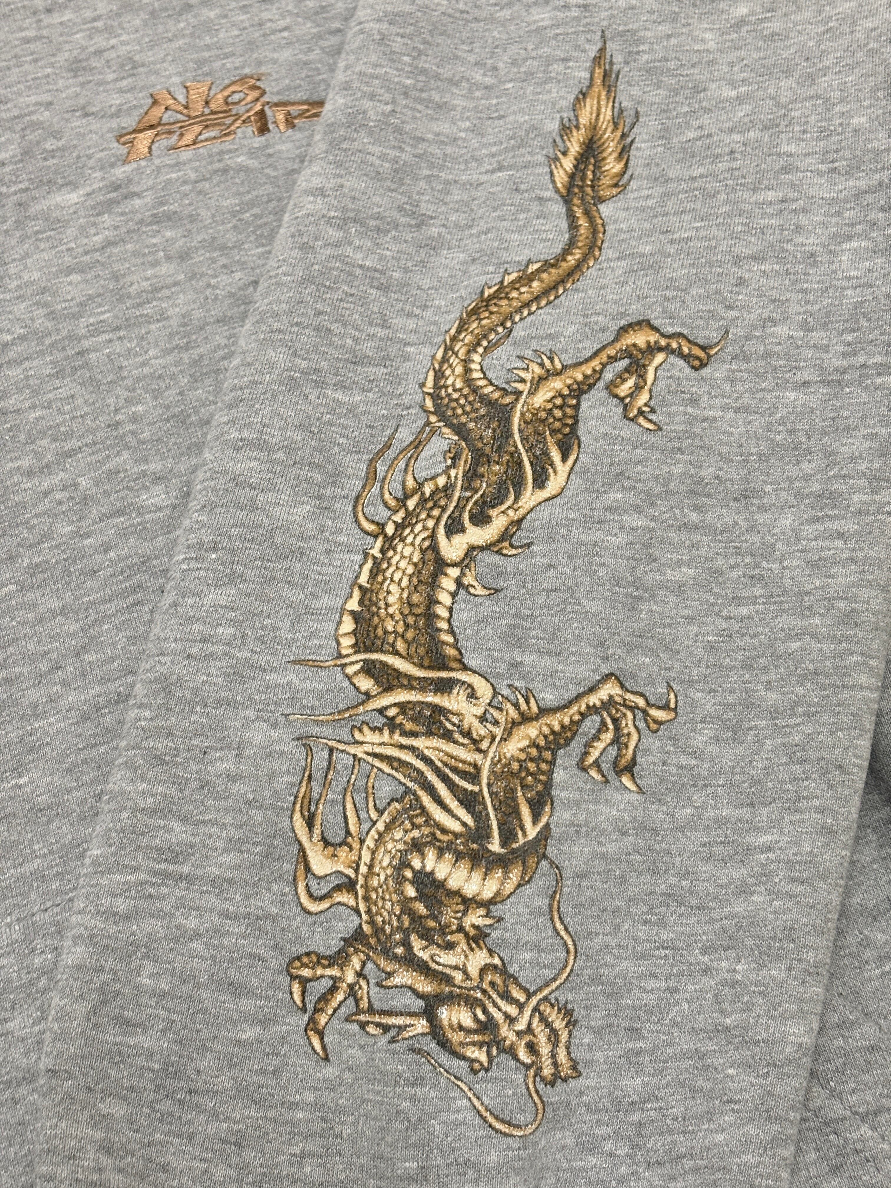 00s NO FEAR/Dragon print Hoodie/S (実寸XL相当)/ドラゴンプリントフ-ディ-/パ-カ-/龍/グレー/ノ-フィア-