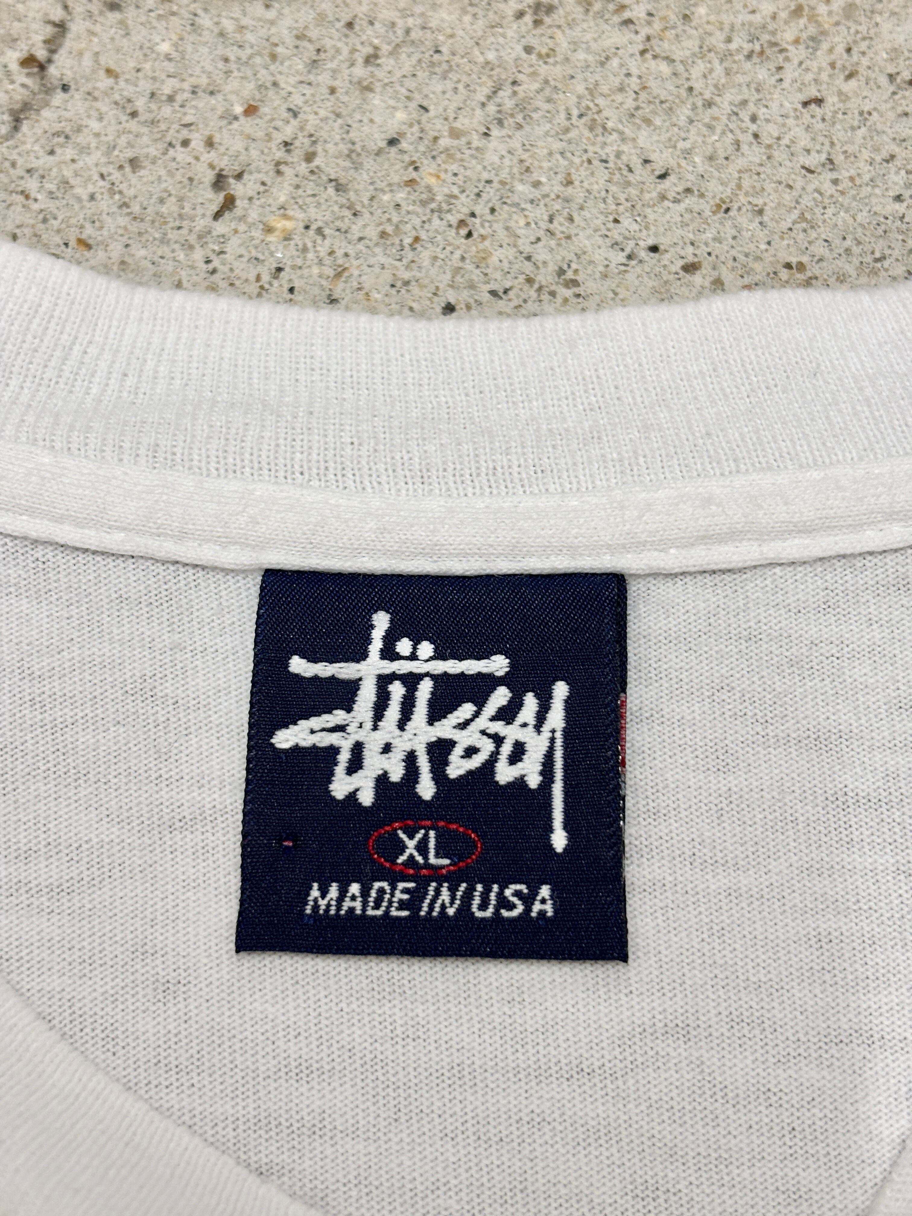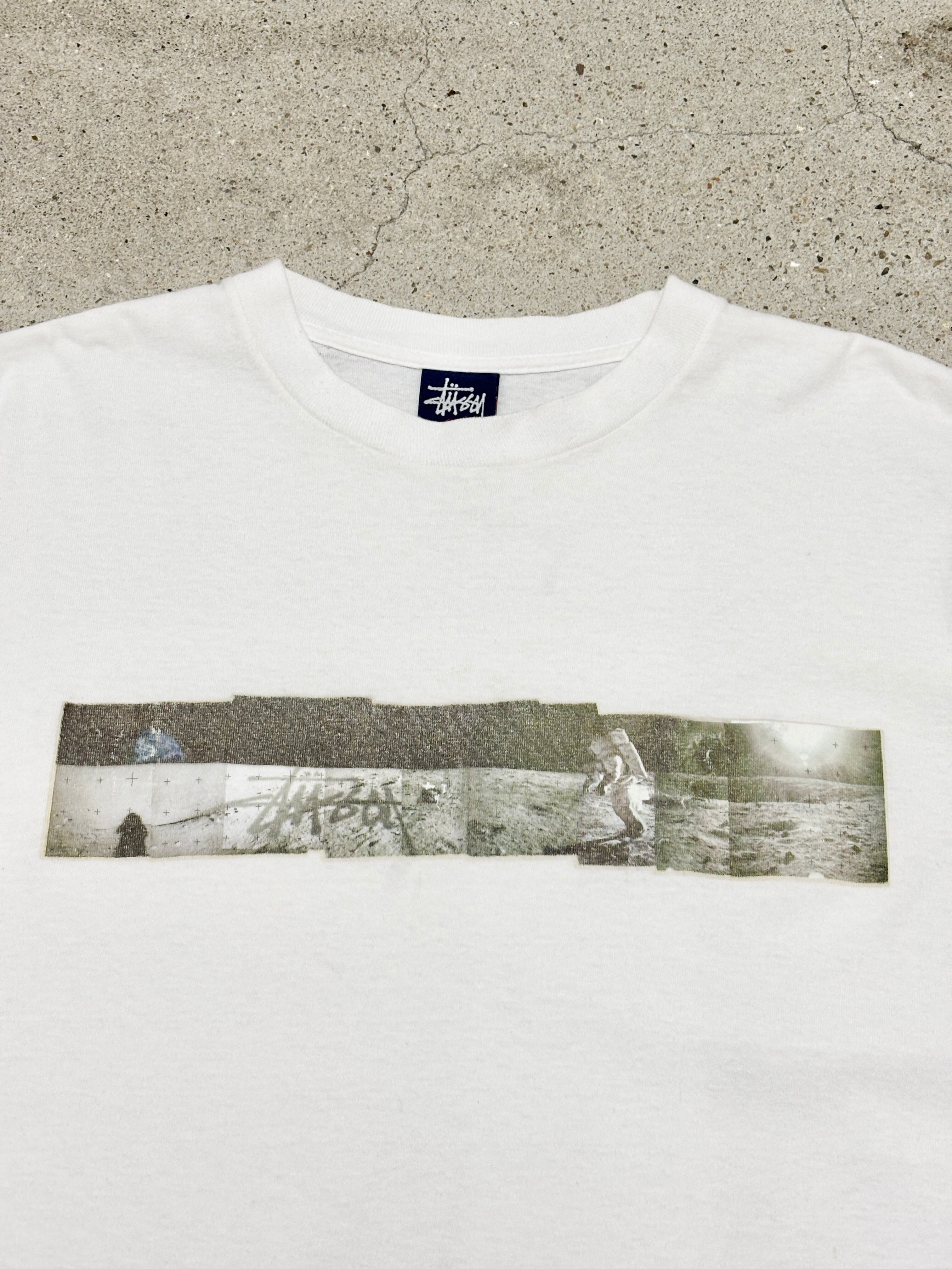 90~00s OLD STUSSY/Graphic Photo print Tee/USA製/紺タグ/XL/グラフィックフォトプリントTシャツ/月面着陸/ホワイト/ステューシー/オ-ルドステューシー/古着/ア―カイブ
