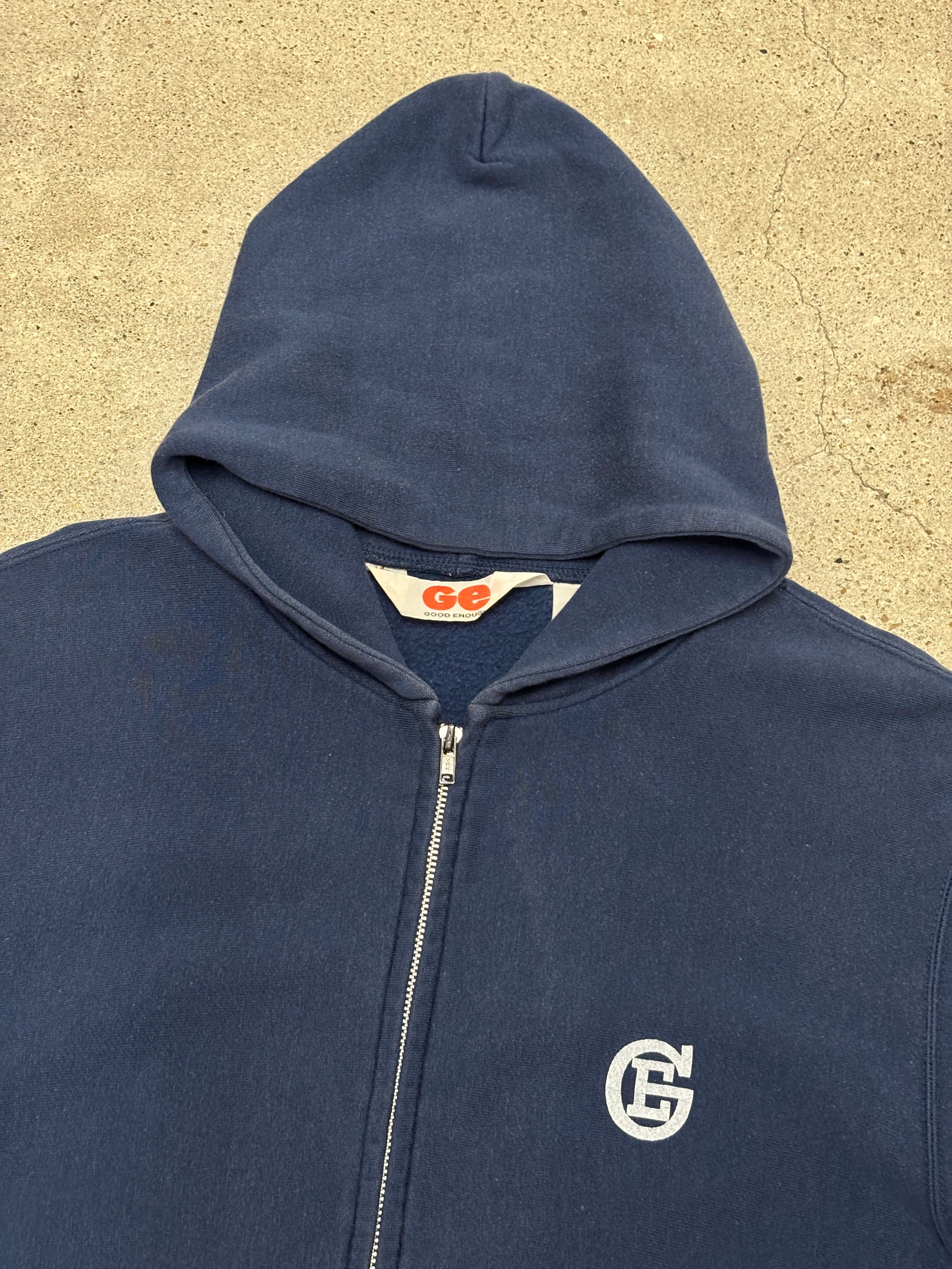 90~00s GOODENOUGH/Logo print zip Hoodie/L/ロゴプリント/シップフ-ディ-/ジップパ-カ-/ネイビ-/GDEH/グッドイナフ/裏原/古着/ア―カイブ