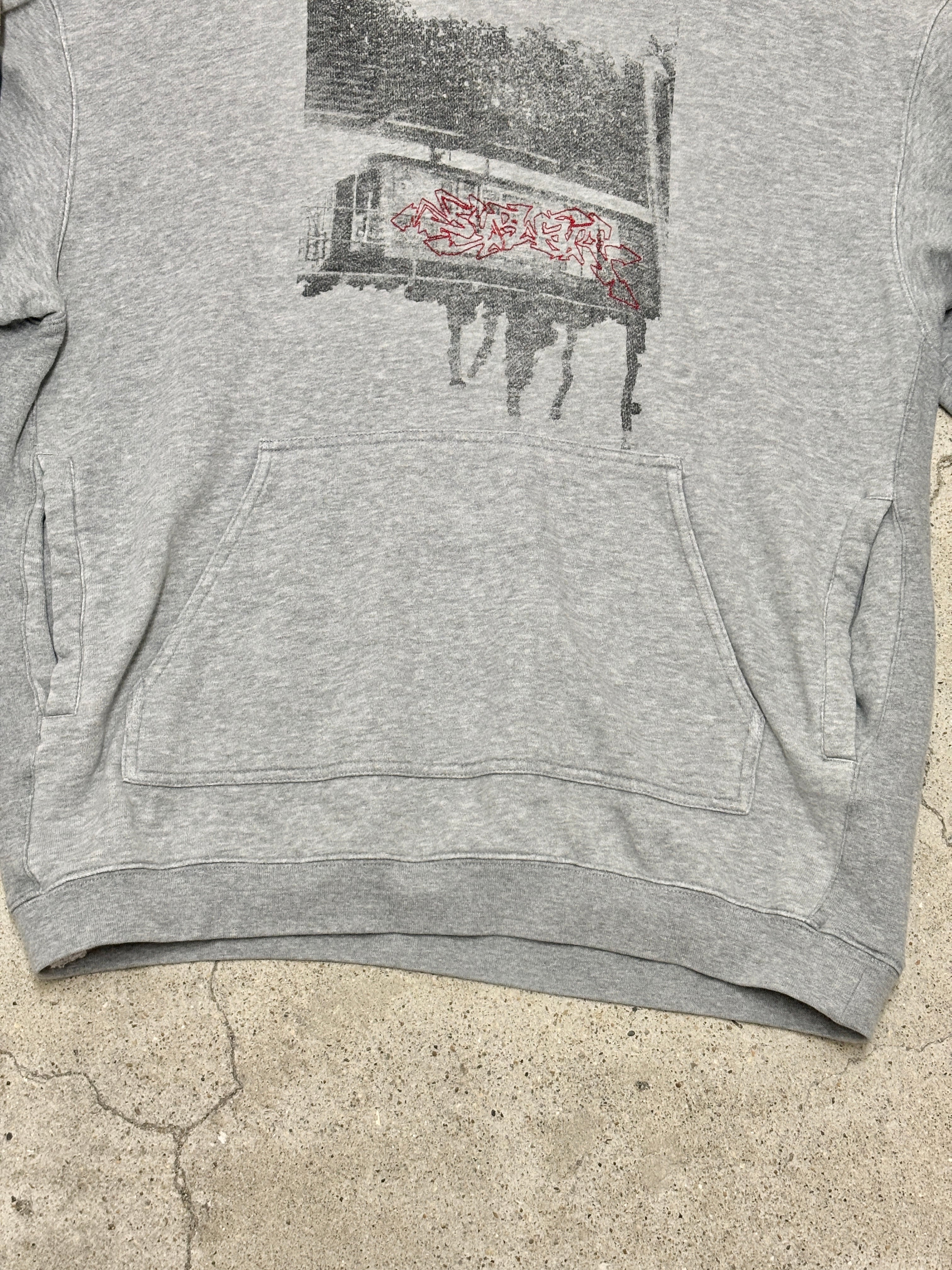 00s SUBWARE/Graphic print Hoodie/L/グラフィックプリントフ-ディ-/パ-カ-/刺繍ロゴ/グレ-/STASH/サブウェア/スタッシュ/裏原/古着/ア―カイブ