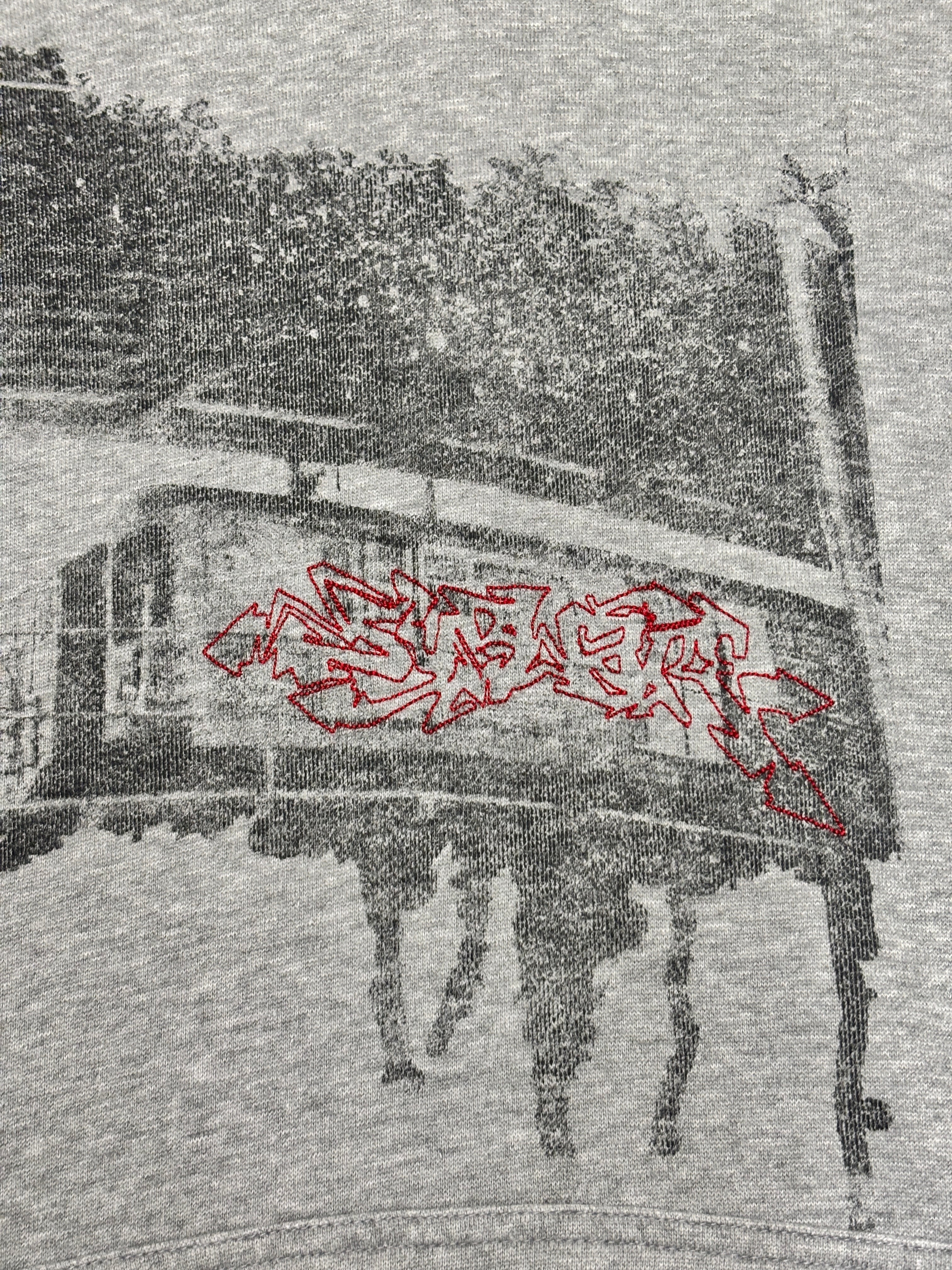 00s SUBWARE/Graphic print Hoodie/L/グラフィックプリントフ-ディ-/パ-カ-/刺繍ロゴ/グレ-/STASH/サブウェア