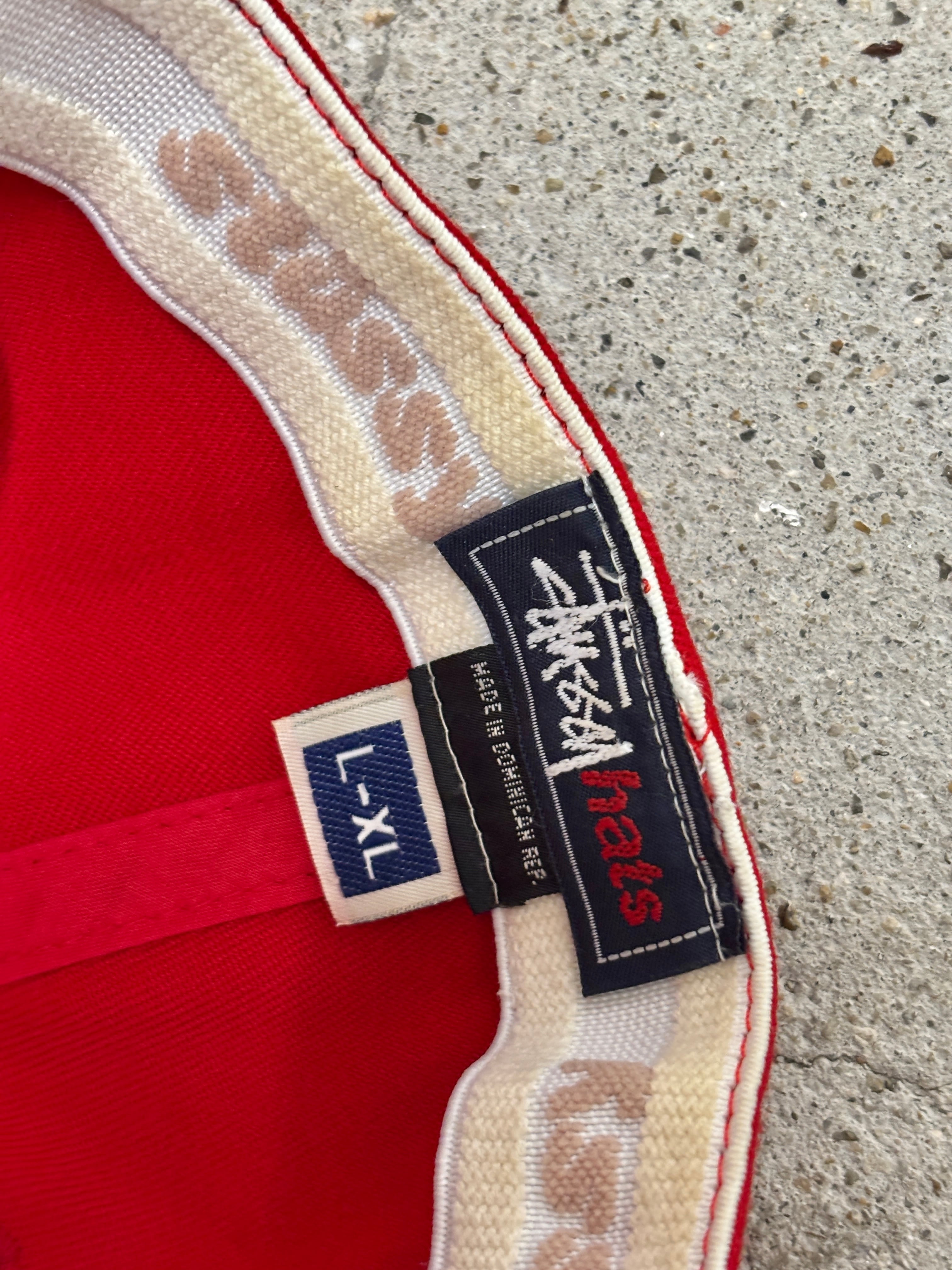 90~00s OLD STUSSY/SY Logo cap/紺タグ/L-XL/SYロゴキャップ/NYC/刺繍ロゴ/レッド/ステューシー/オ-ルドステューシ―