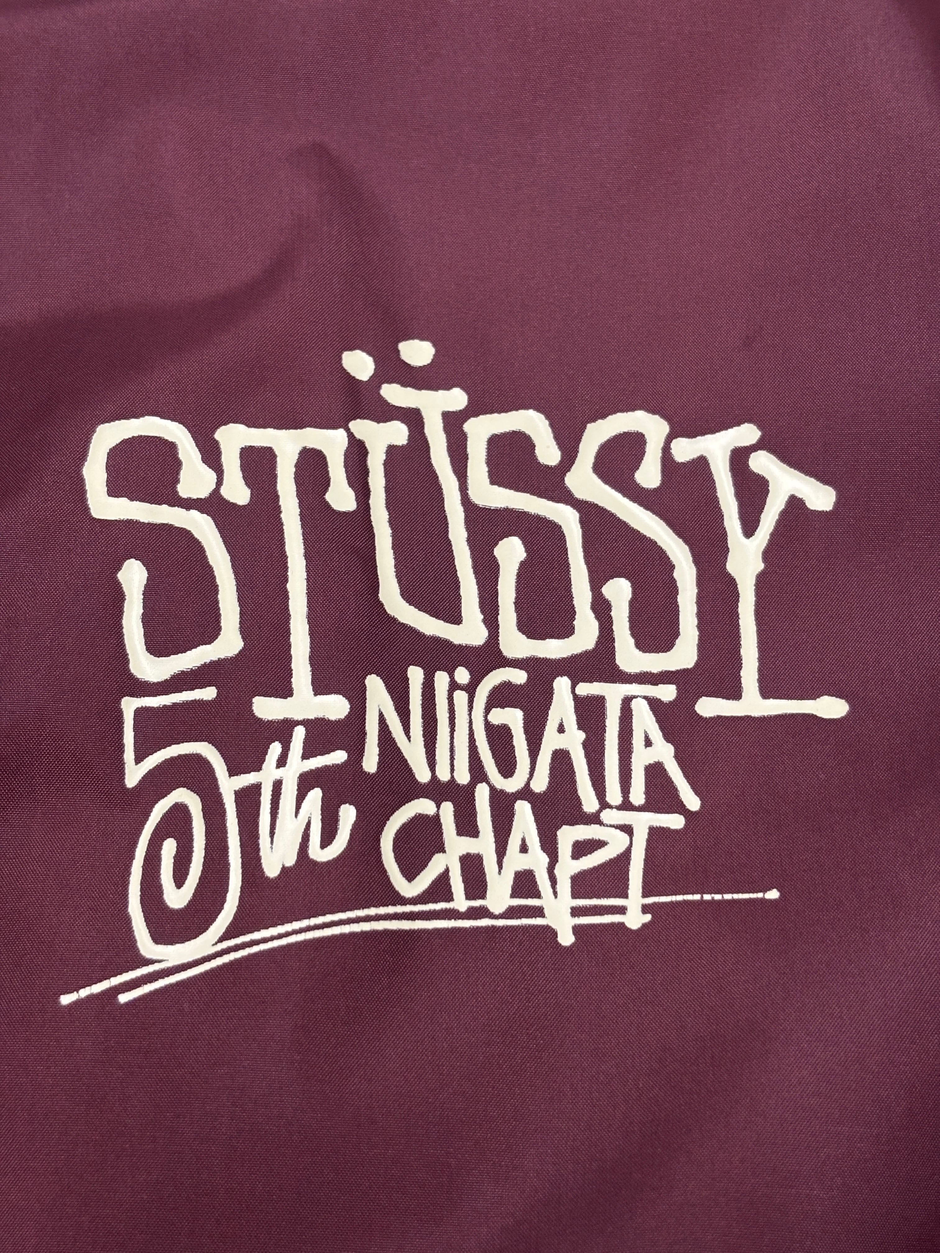 00s STUSSY/NIGATA Chapt 5th Anniversary Coach Jacket/L/新潟チャプト5周年記念/コ-チジャケット/ロゴプリント/バ-ガンディ-/ステューシー