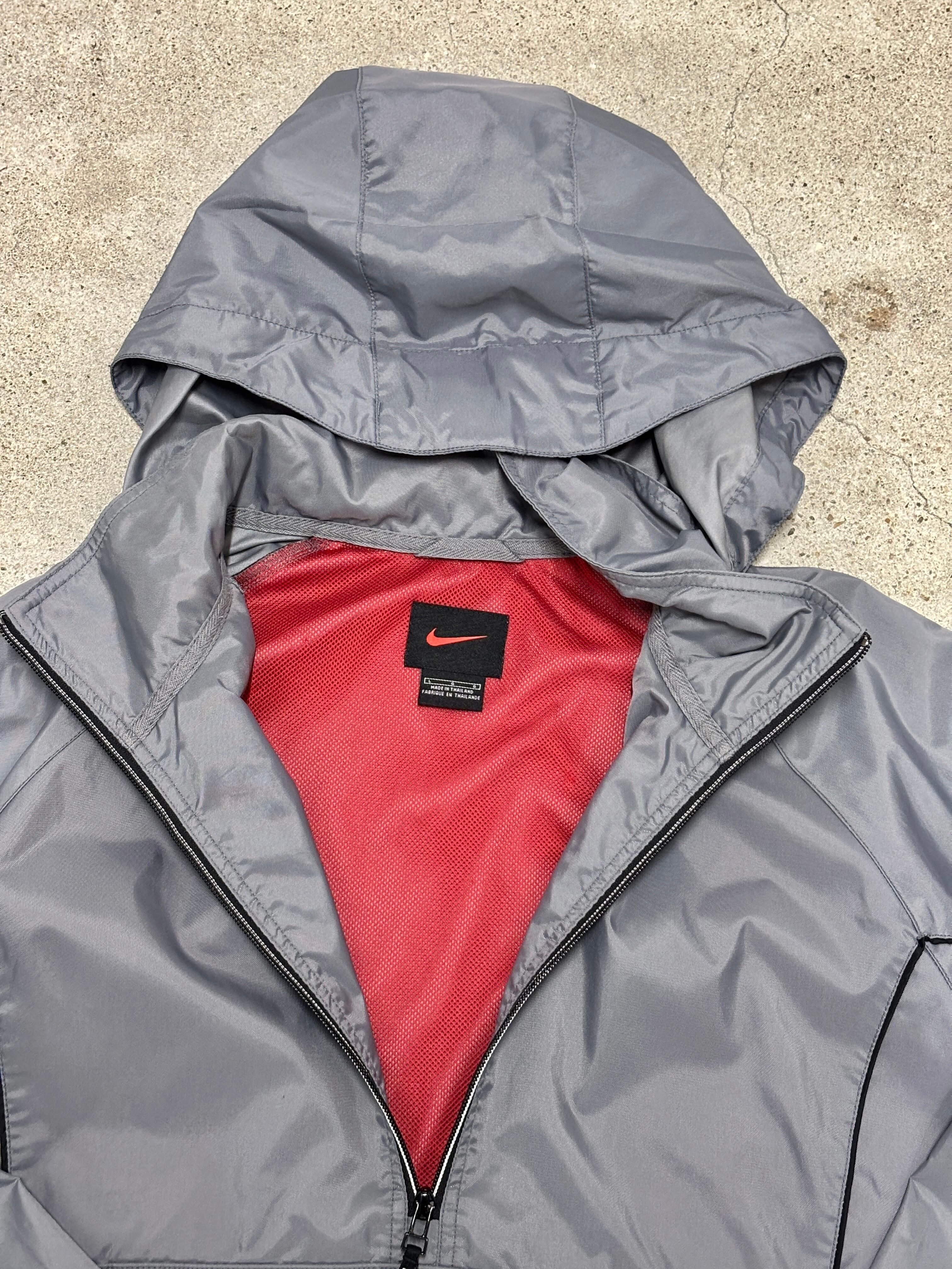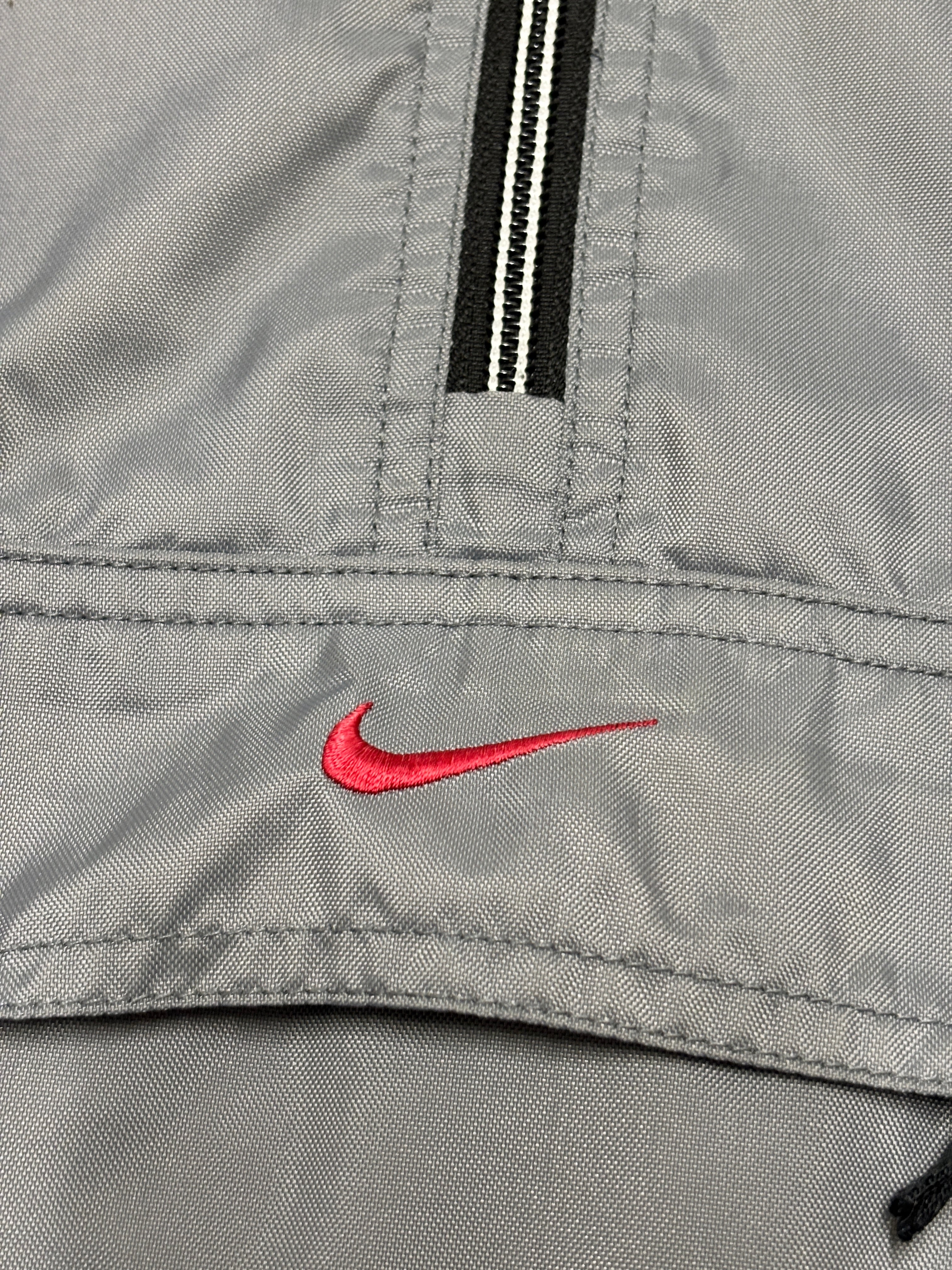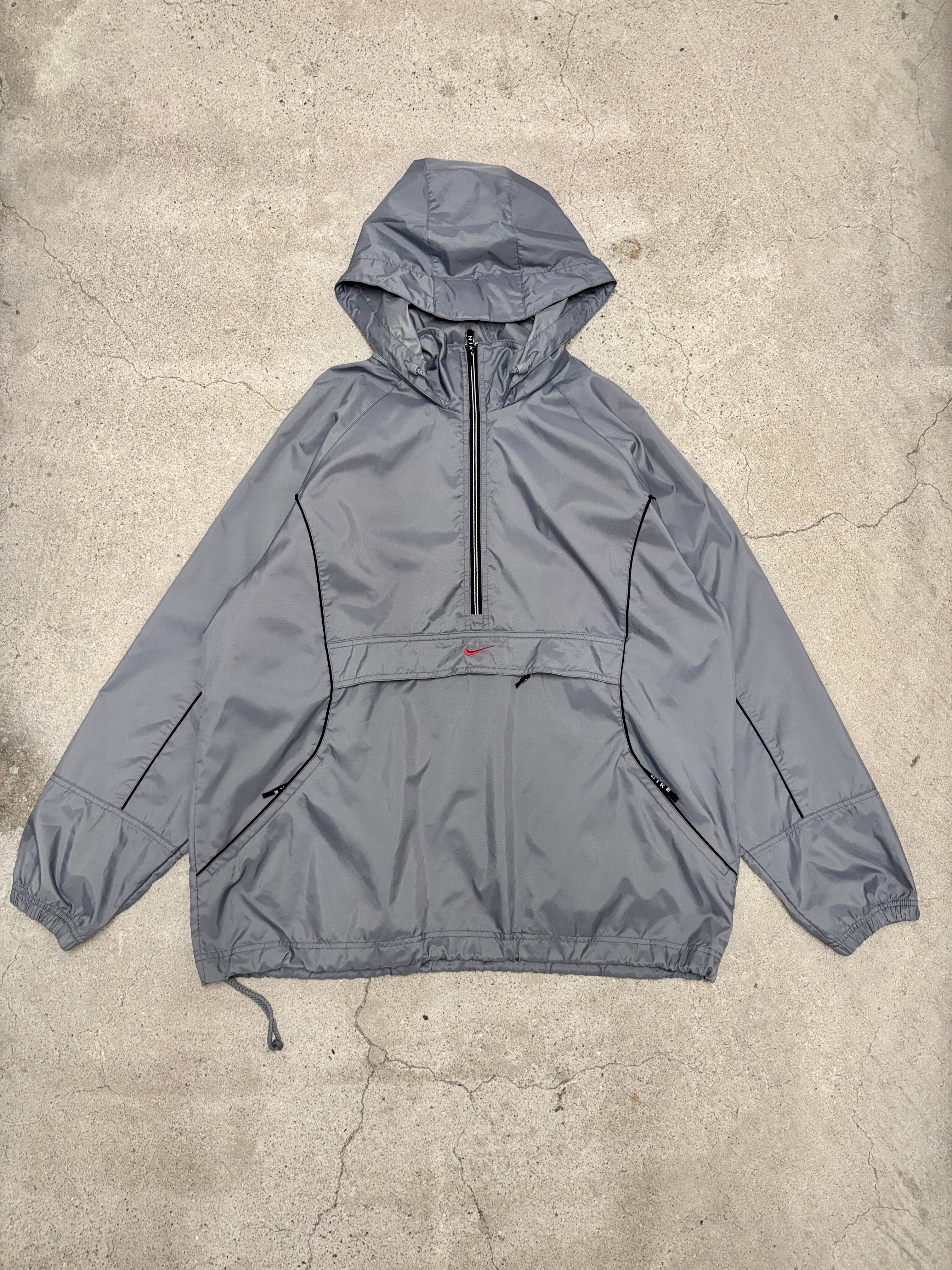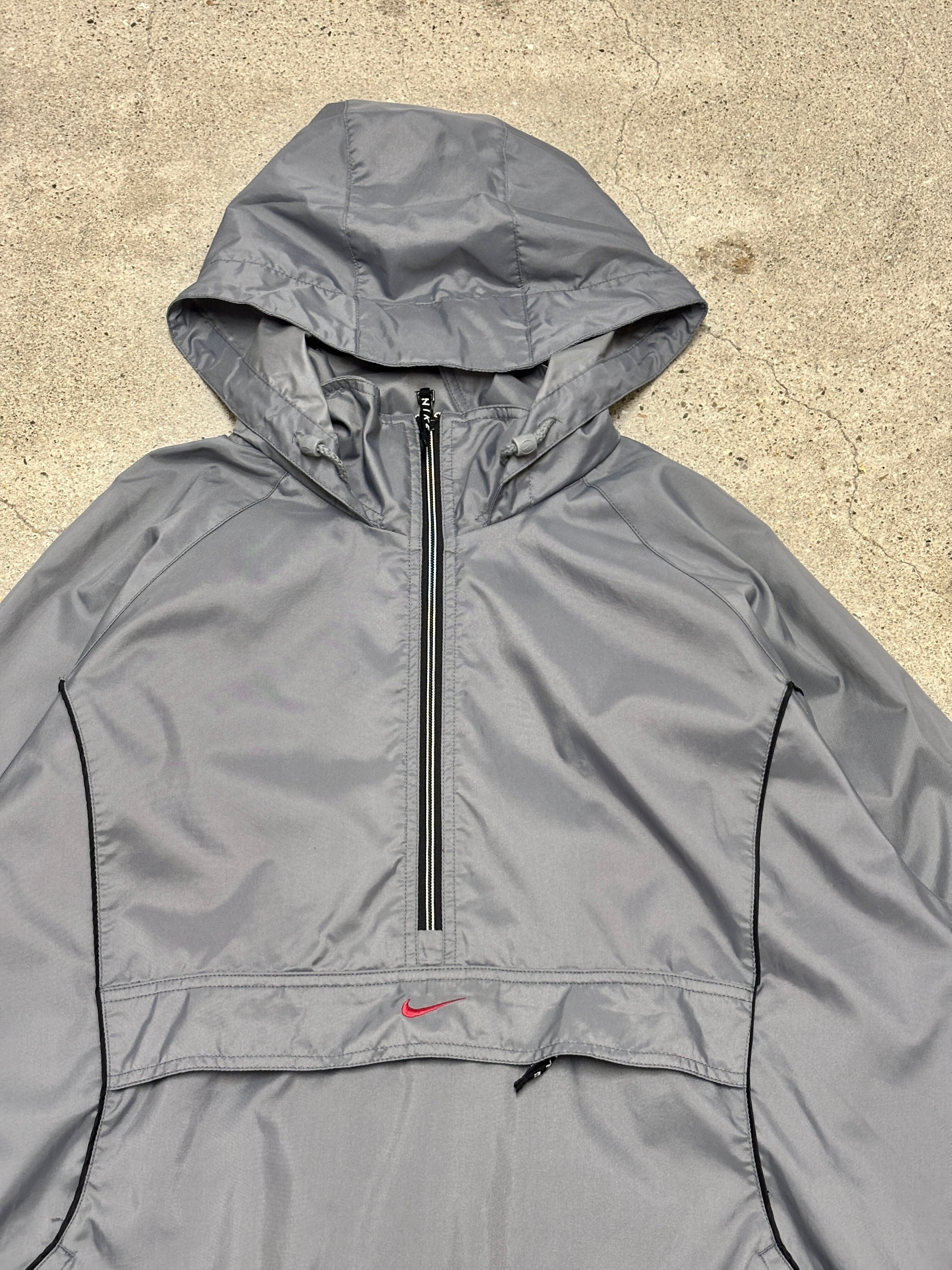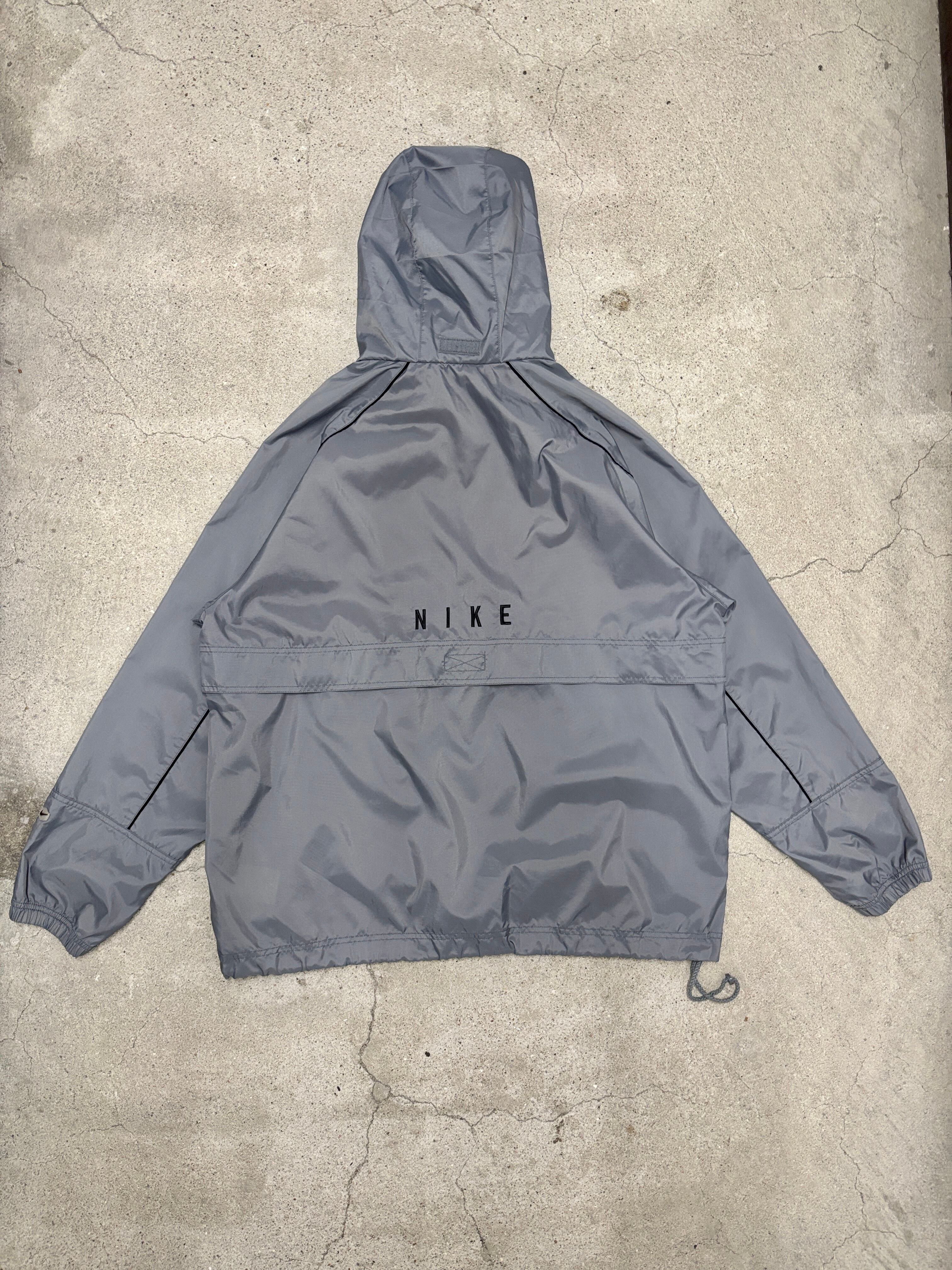 00s NIKE/Anorak Nylon Hoodie/L/アノラックナイロンパ-カ-/フ-ディ-/ナイロンジャケット/刺繍ロゴ/スウォッシュロゴ/グレ-/ナイキ/古着/ア―カイブ