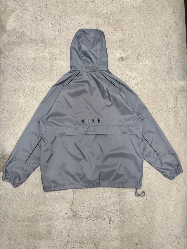 00s NIKE/Anorak Nylon Hoodie/L/アノラックナイロンパ-カ-/フ-ディ-/ナイロンジャケット/刺繍ロゴ/スウォッシュロゴ/グレ-/ナイキ