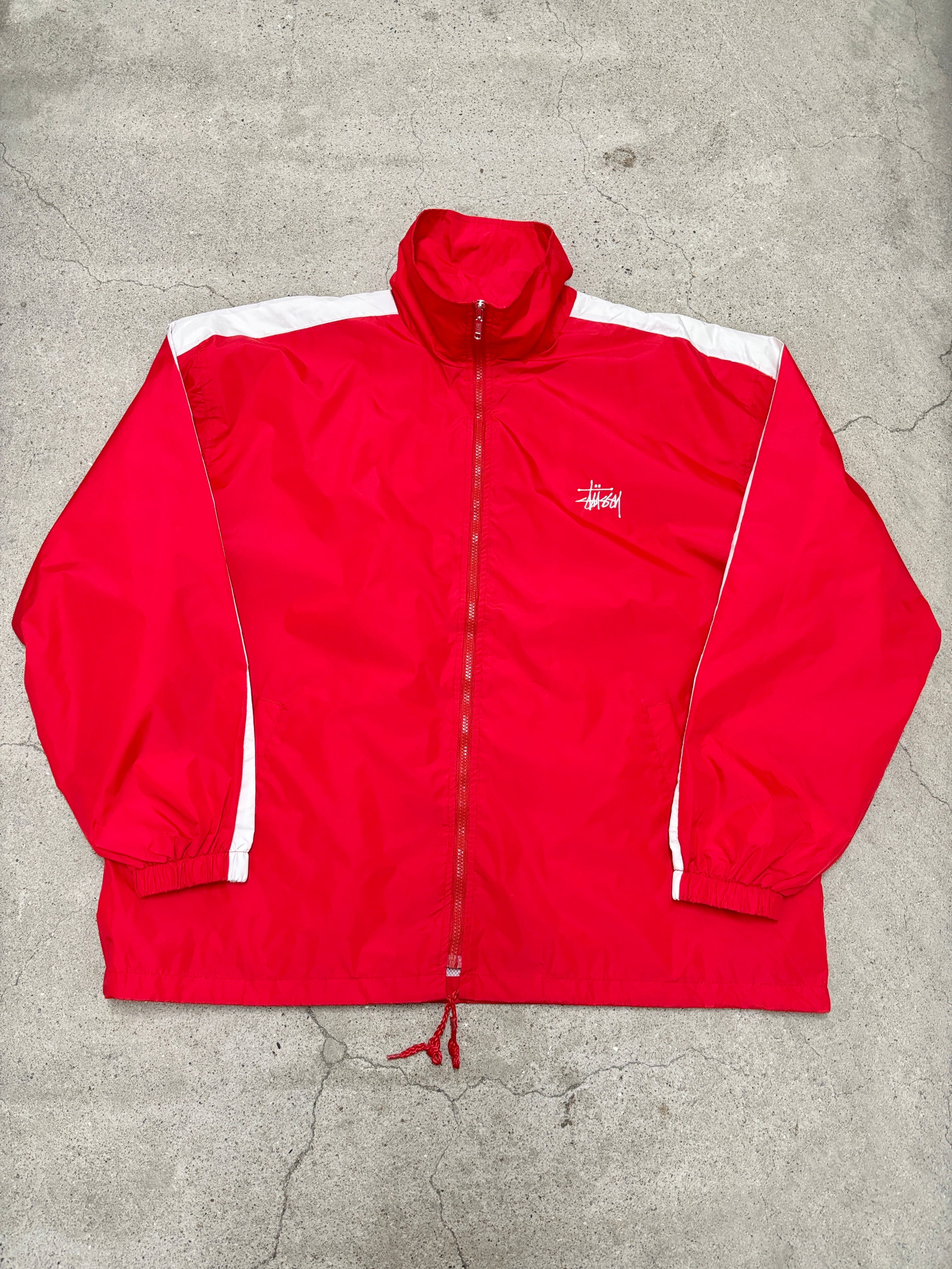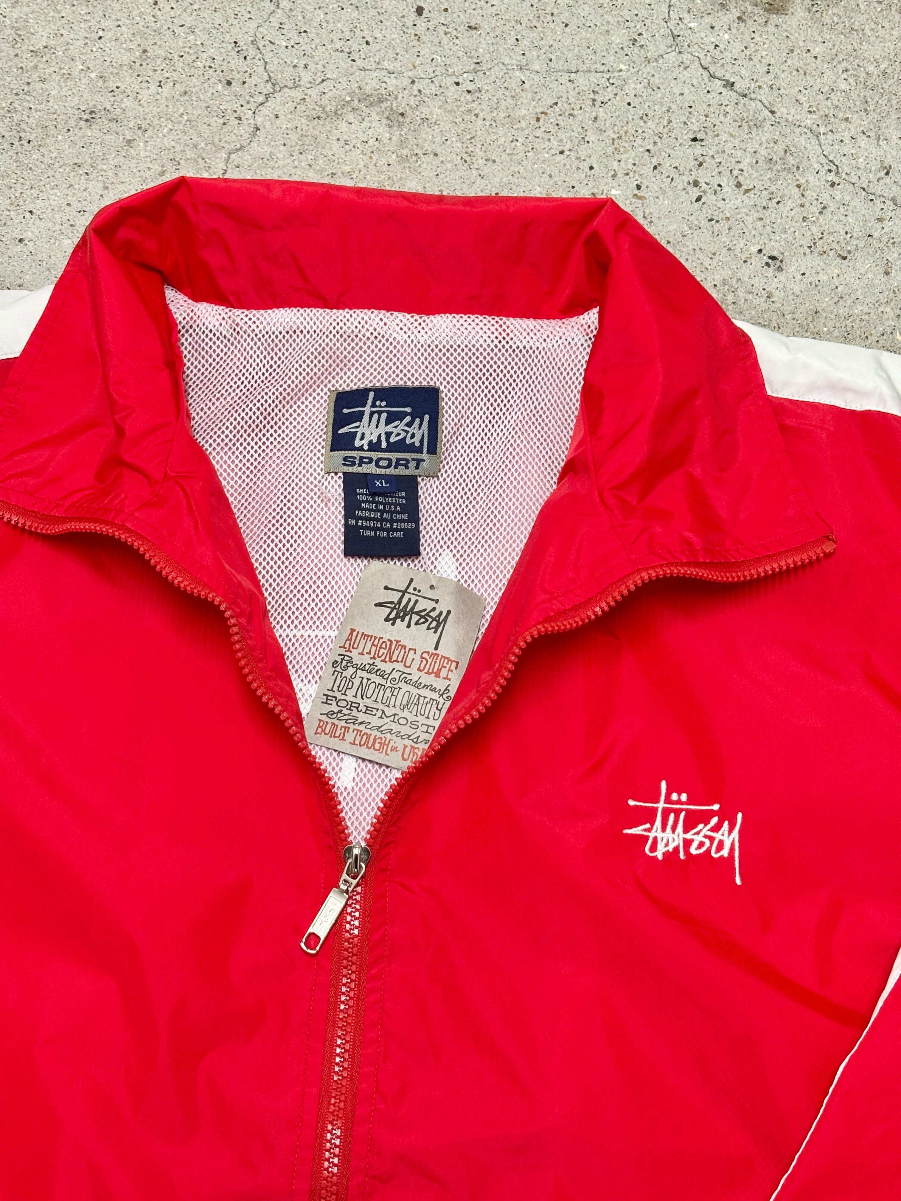 90~00s OLD STUSSY/Logo embroidery Nylon Jacket/STUSSY SPORT/USA製/DEADSTOCK/XL/ナイロンジャケット/ストックロゴ/刺繍ロゴ/レッド/ステューシー/オ-ルドステューシ-/古着/ア―カイブ