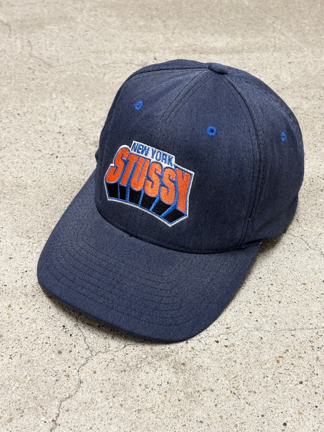 90~00s OLD STUSSY/Logo embroidery Cap/紺タグ/S-M/刺繍ロゴキャップ/New York Knicks/ネイビ-/ステューシー/オ-ルドステューシ-