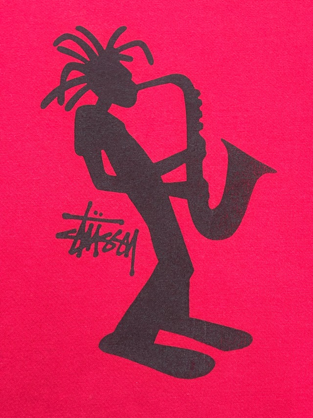 90~00s OLD STUSSY/Jazz Shadowman print Sweat/紺タグ/M/ジャズシャド-マンプリントスウェット/レッド/ステューシー/オ-ルドステューシー/古着/ア―カイブ