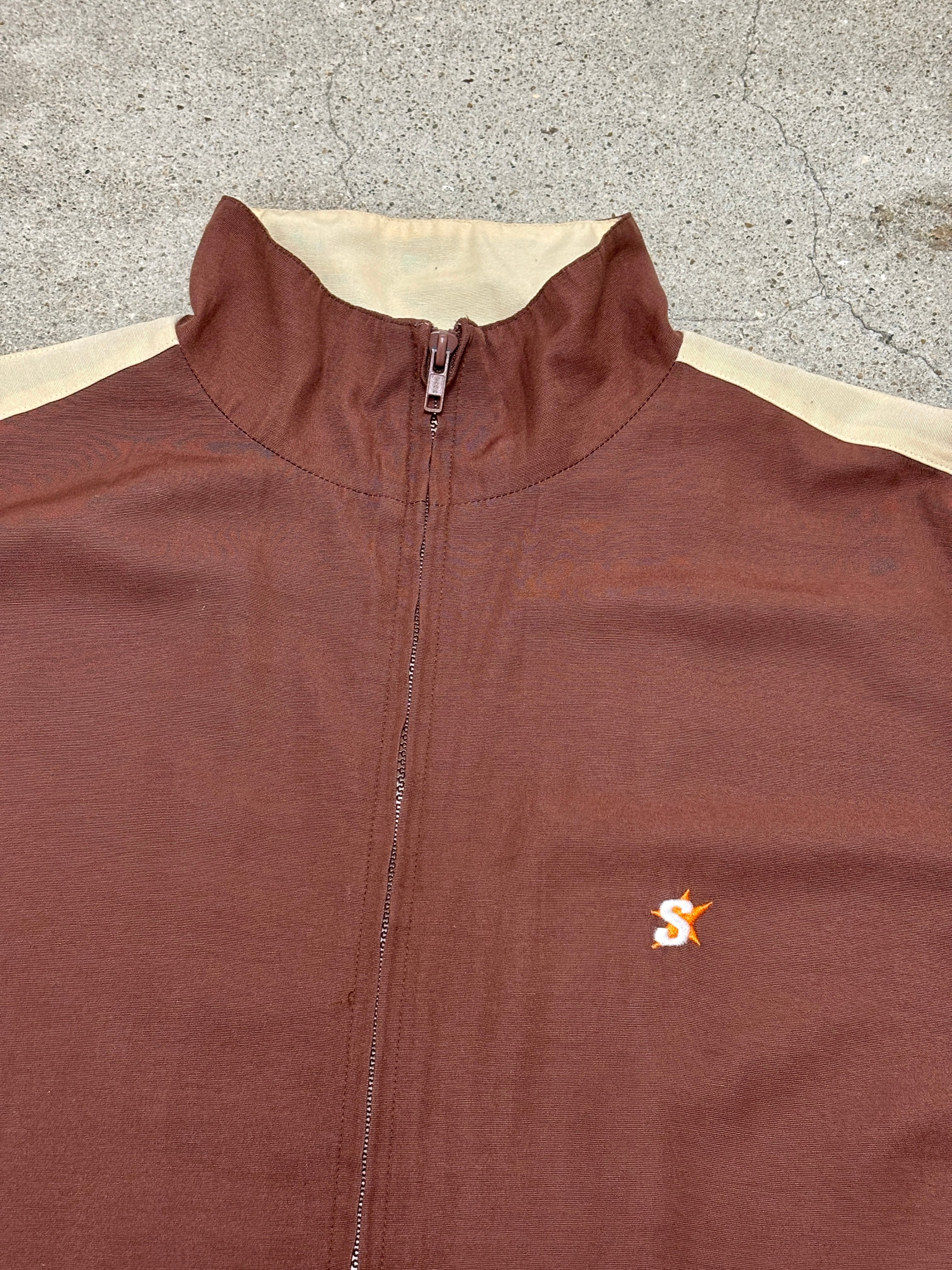 90~00s OLD STUSSY/Logo embroidery Nylon Jacket/紺タグ/M/Sロゴ刺繍ナイロンジャケット/トラックジャケット/ブラウン/ステューシー/オ-ルドステューシー