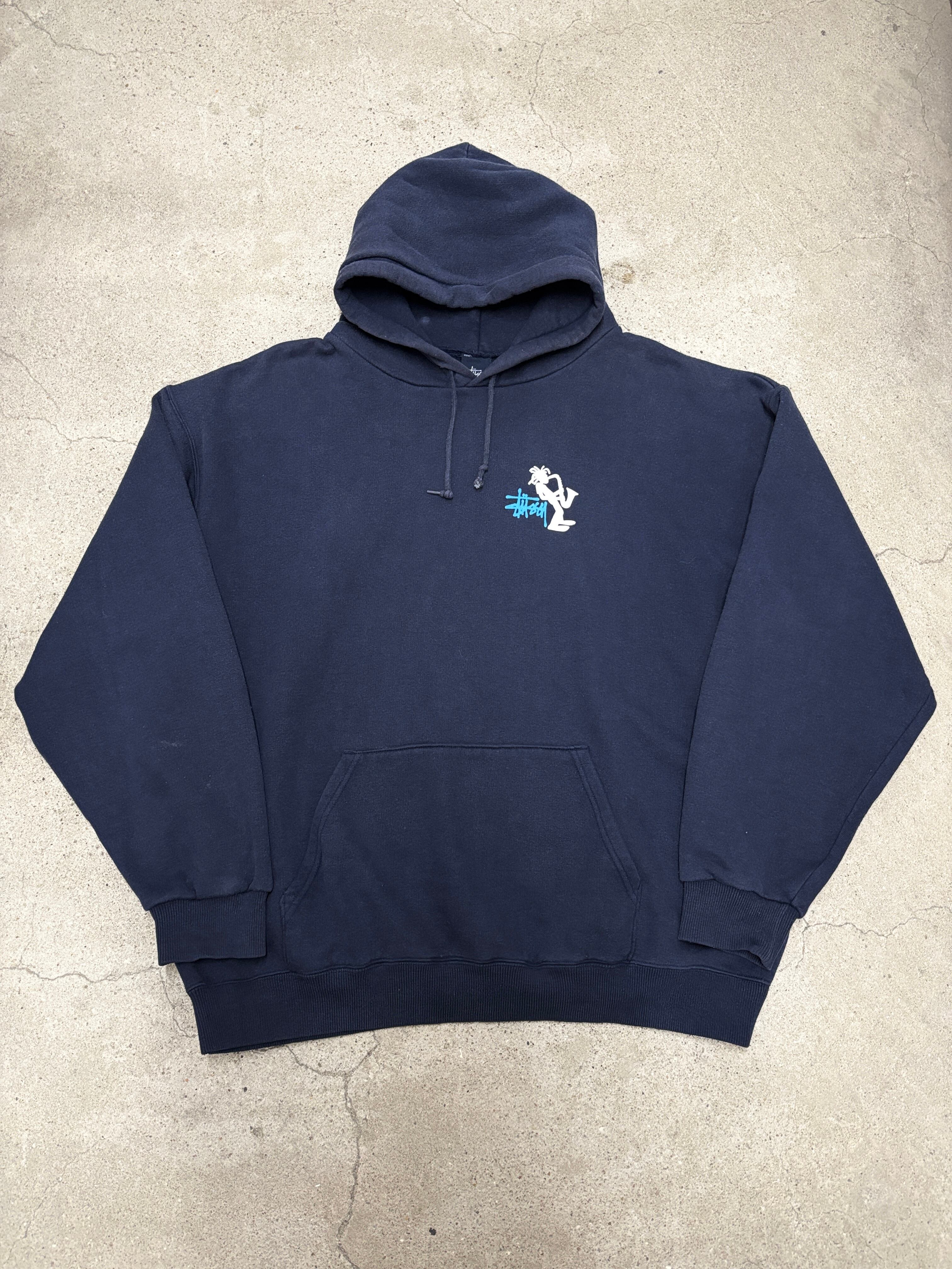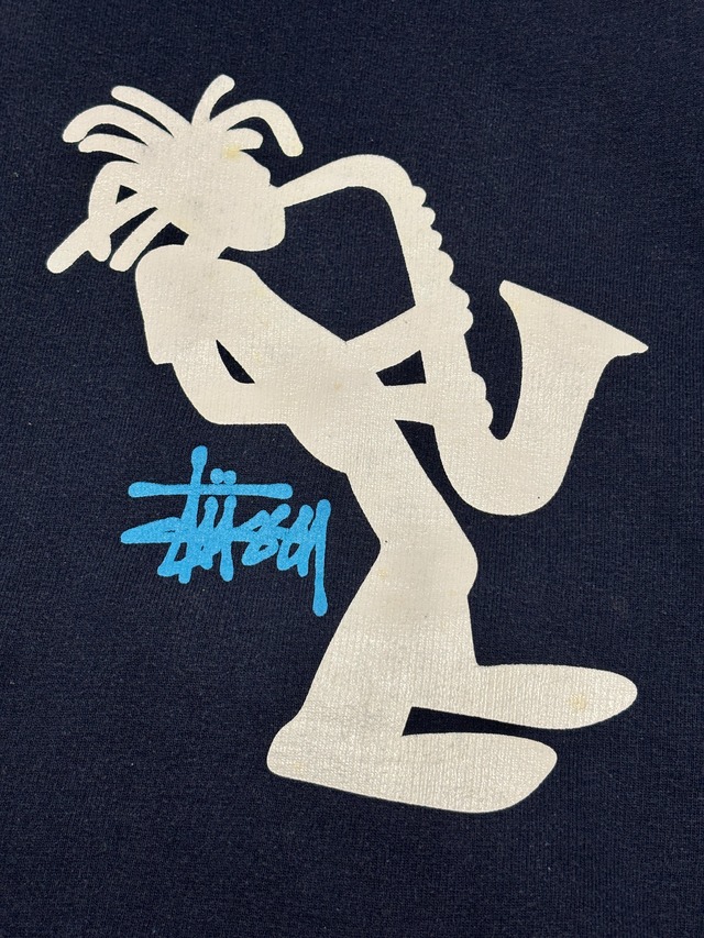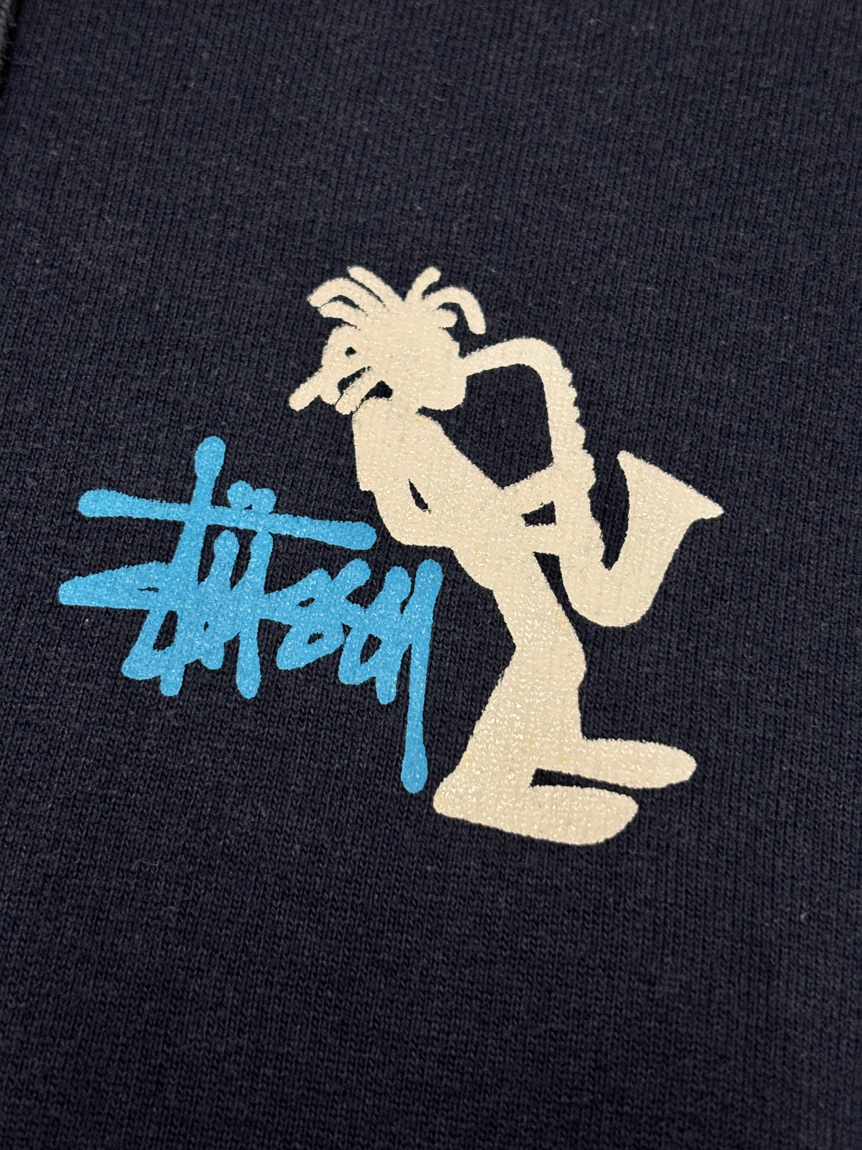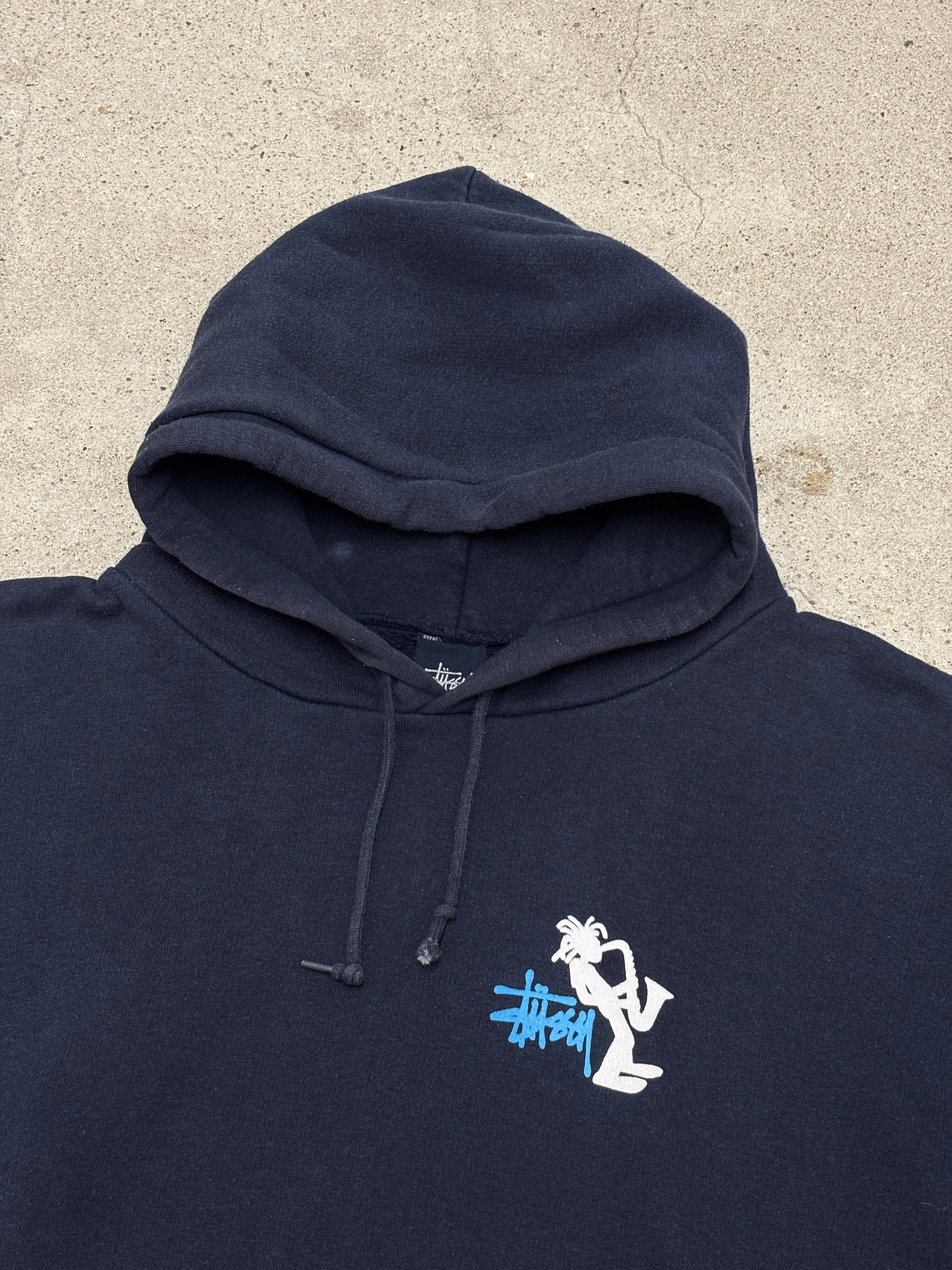 00s OLD STUSSY/Jazz Shadowman print Hoodie/紺タグ/XL/ジャズシャド-マンプリントフーディ-/パ-カ-/ネイビ-/ステューシー/オ-ルドステューシー