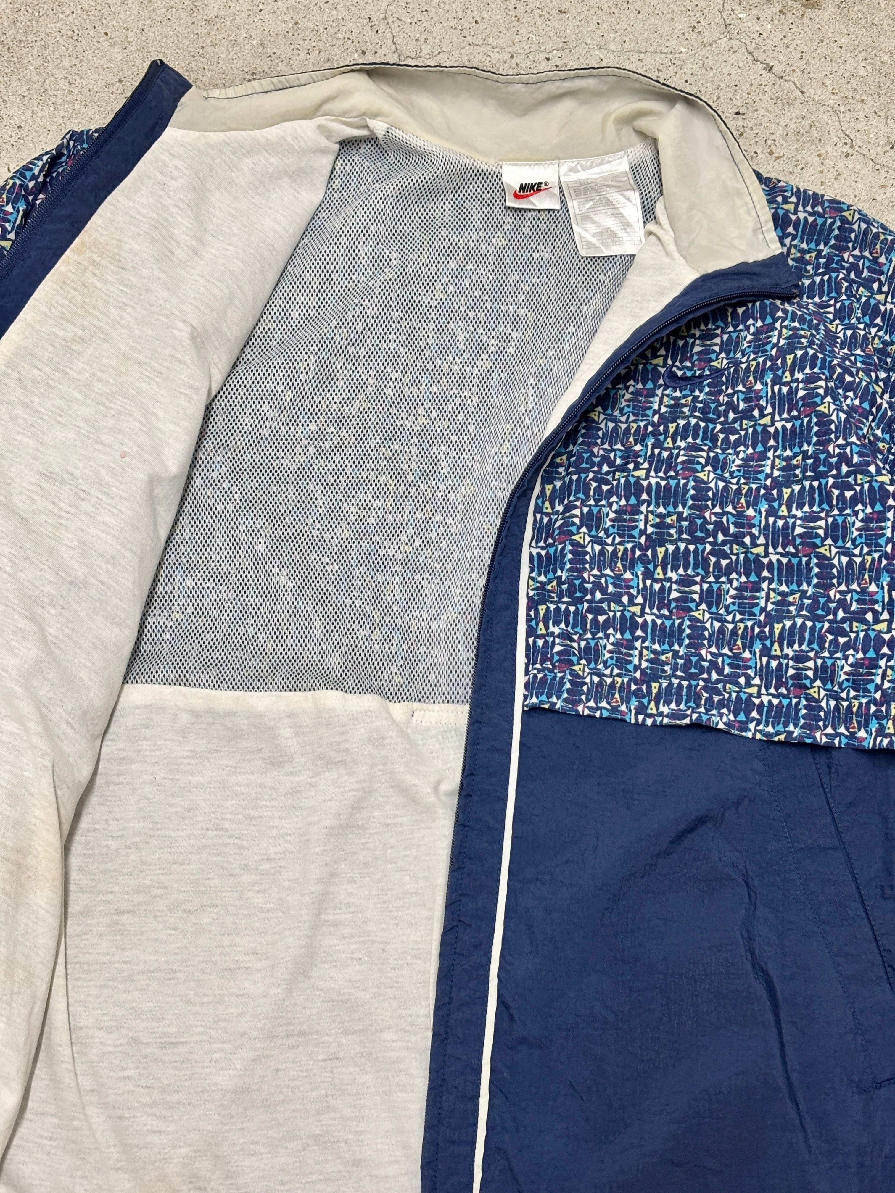 00s NIKE/Nylon Jacket/M/ナイロンジャケット/総柄/スウォッシュロゴ/ネイビ-/ナイキ