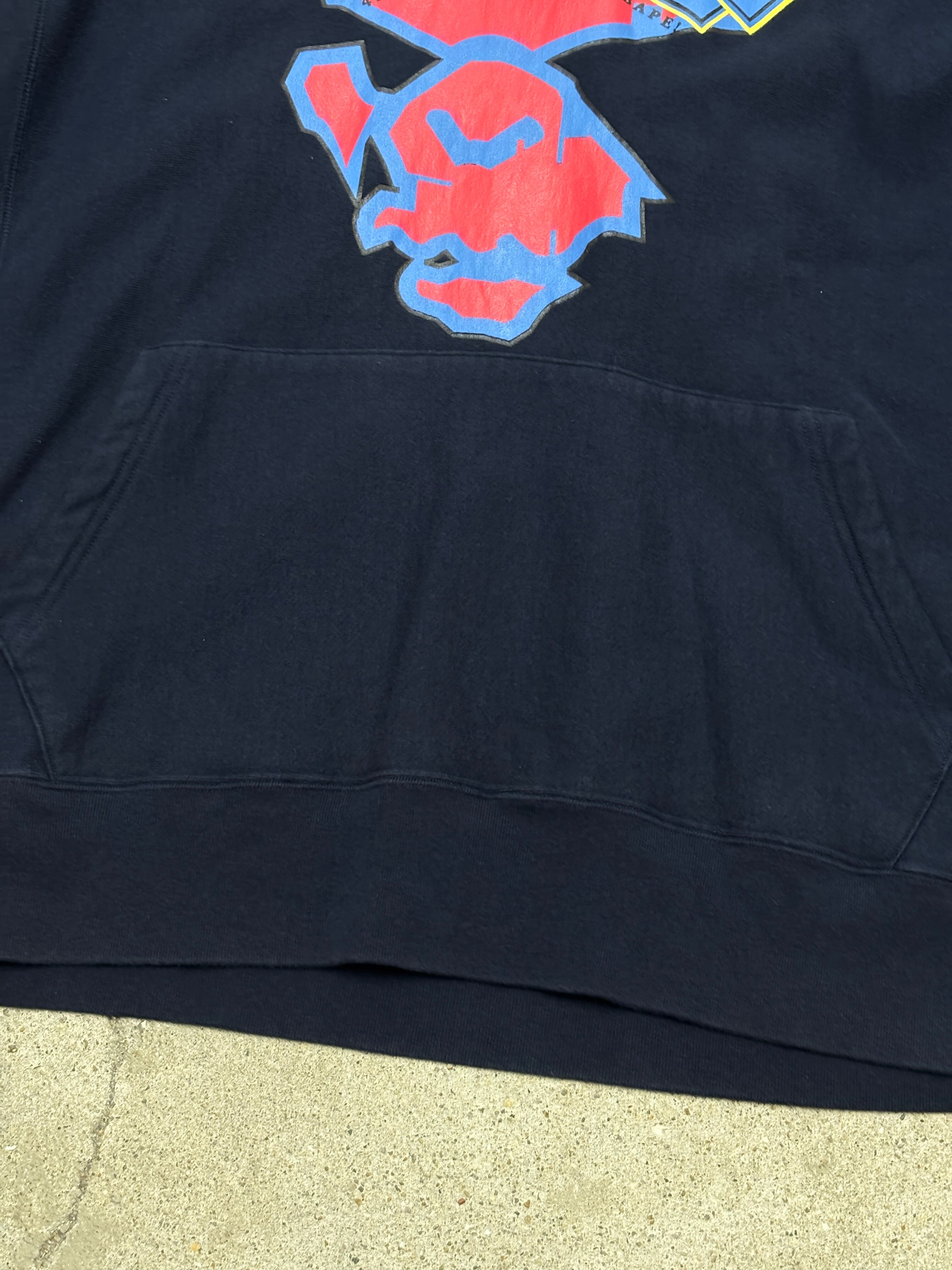 00s A BATHING APE/Big Face print Hoodie/L/ビッグフェイスプリントフ-ディ-/パ-カ-/スウェット/ロゴプリント/ネイビ-/BAPE/アベイシングエイプ/裏原/古着/ア―カイブ