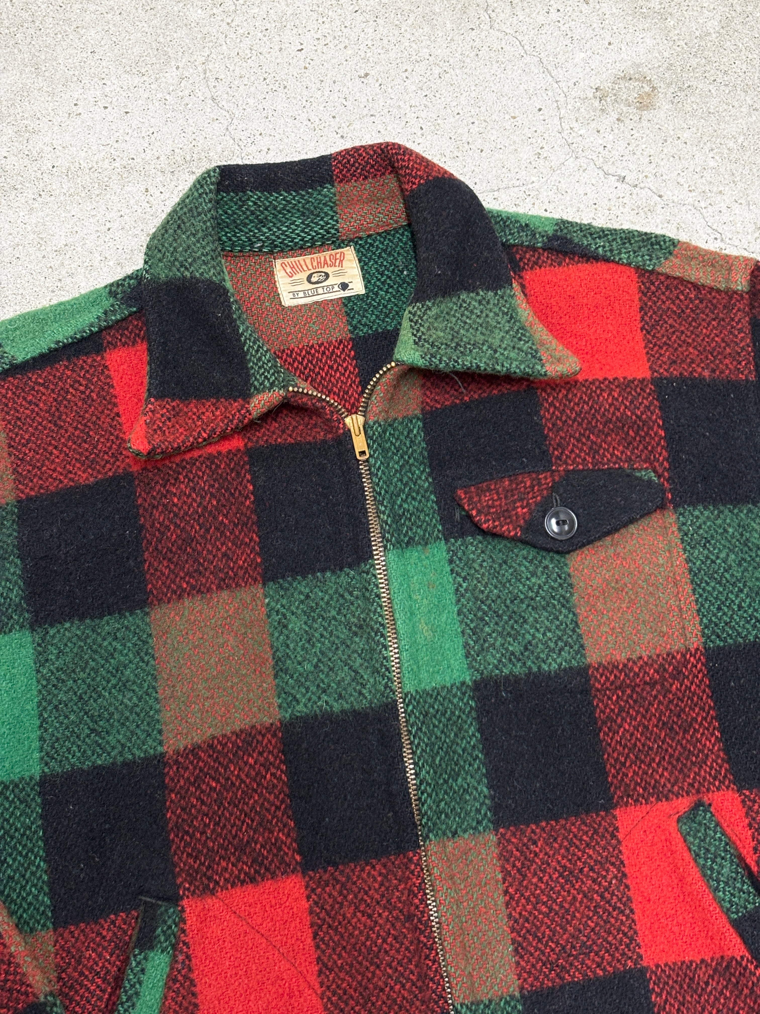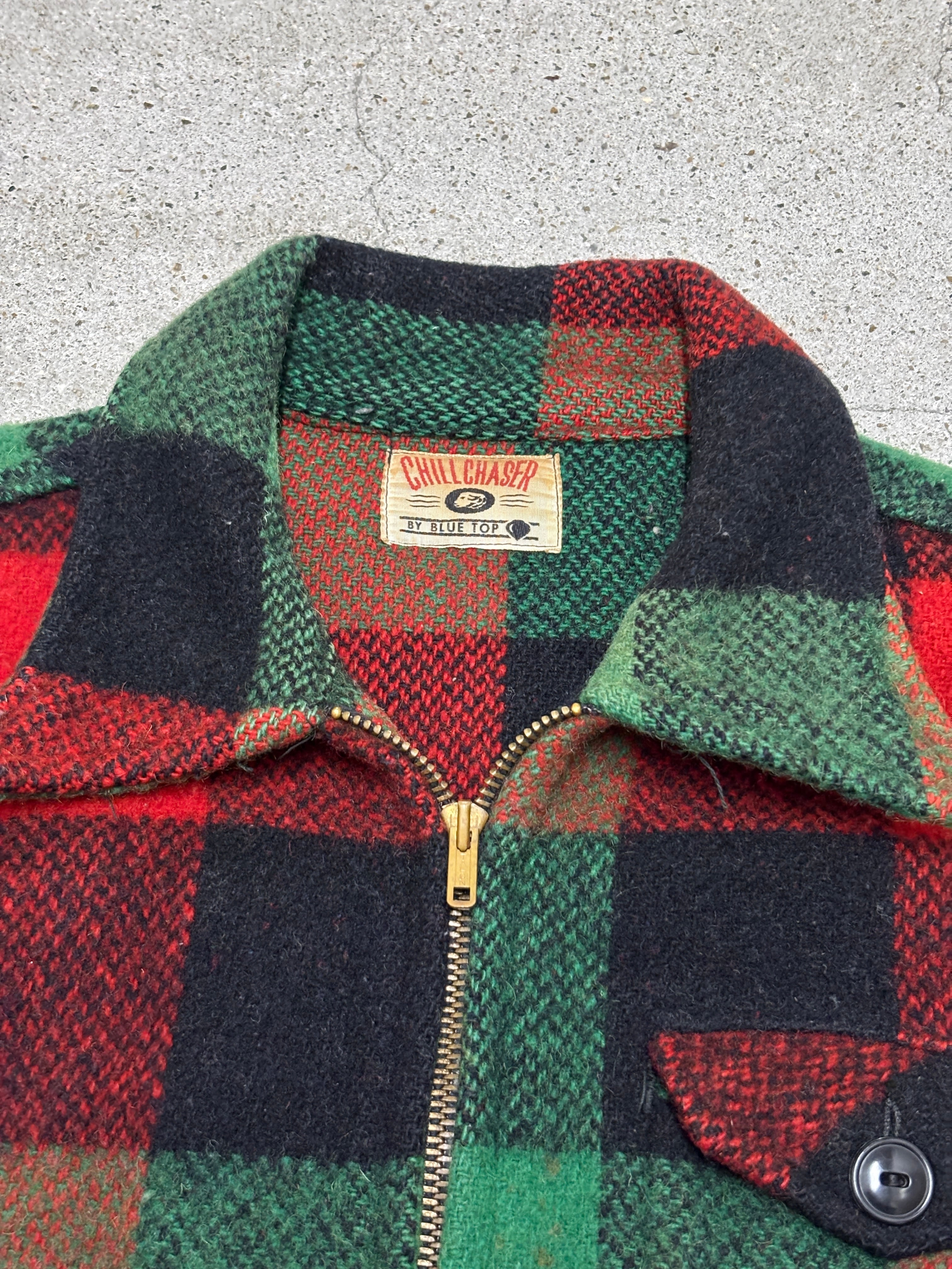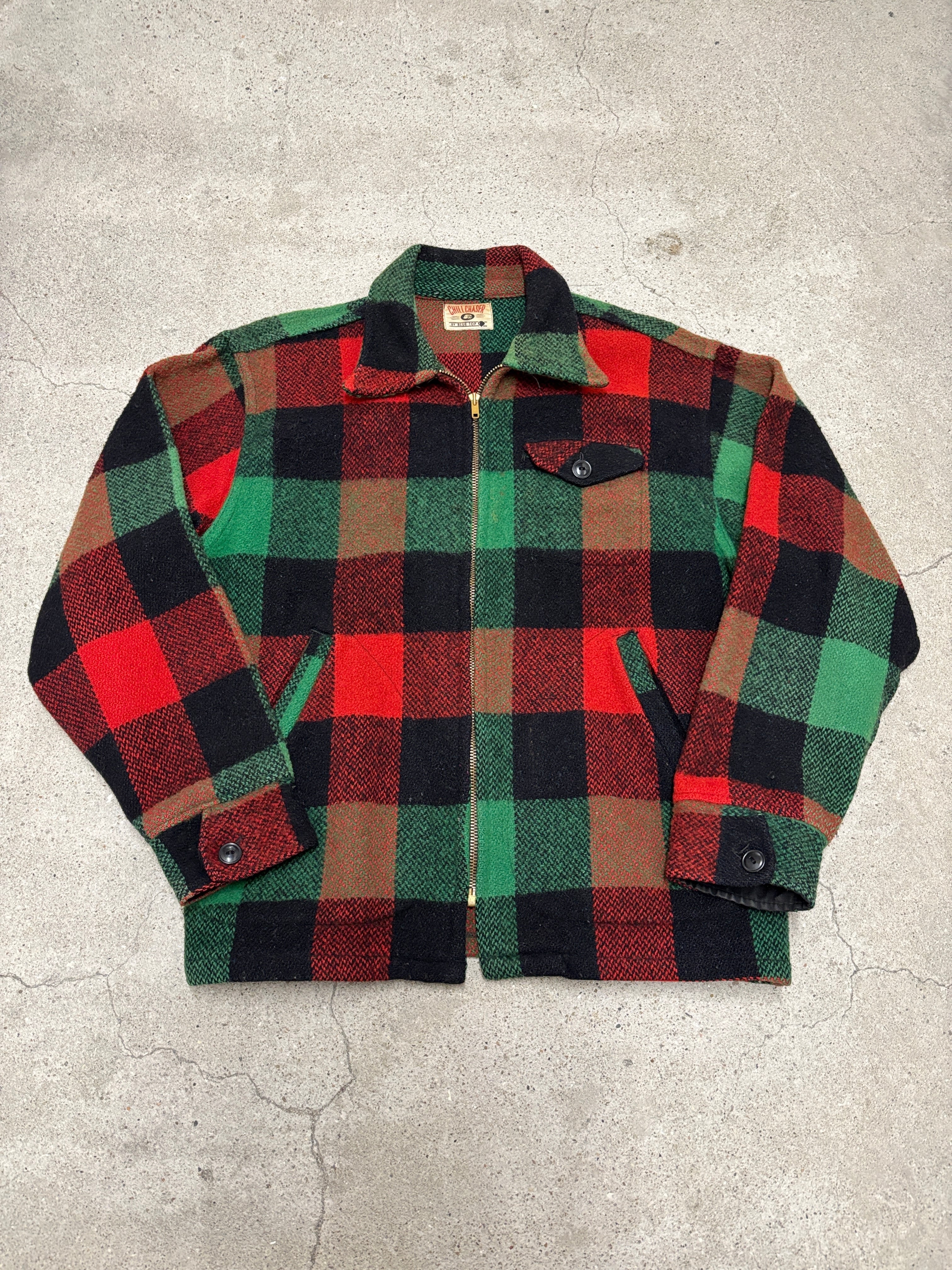 60~70s CHILL CHASER/Mackinaw Jacket/M-L相当/マッキ-ノジャケット/ウ-ルジャケット/バッファロ-チェック/グリ-ン/レッド/チルチェイサ-/アメカジ/古着/ヴィンテ-ジ