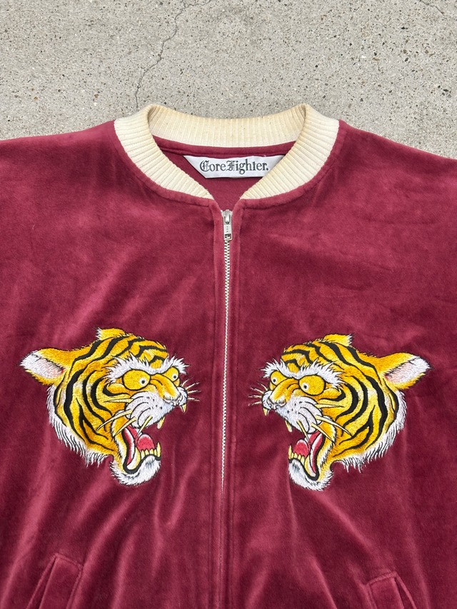 00s COREFIGHTER/paco excel devil Tiger Velor Jacket/M/パクセル/虎刺繍/ベロアジャケット/バーガンディ-/コアファイター/古着/ア―カイブ