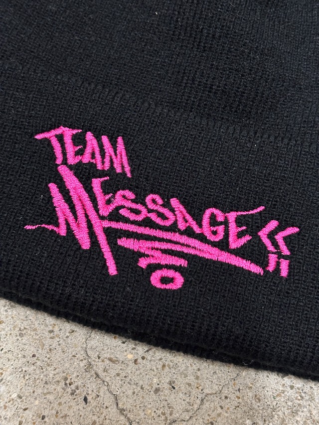TEAM MESSAGEの刺繍ロゴビーニー。