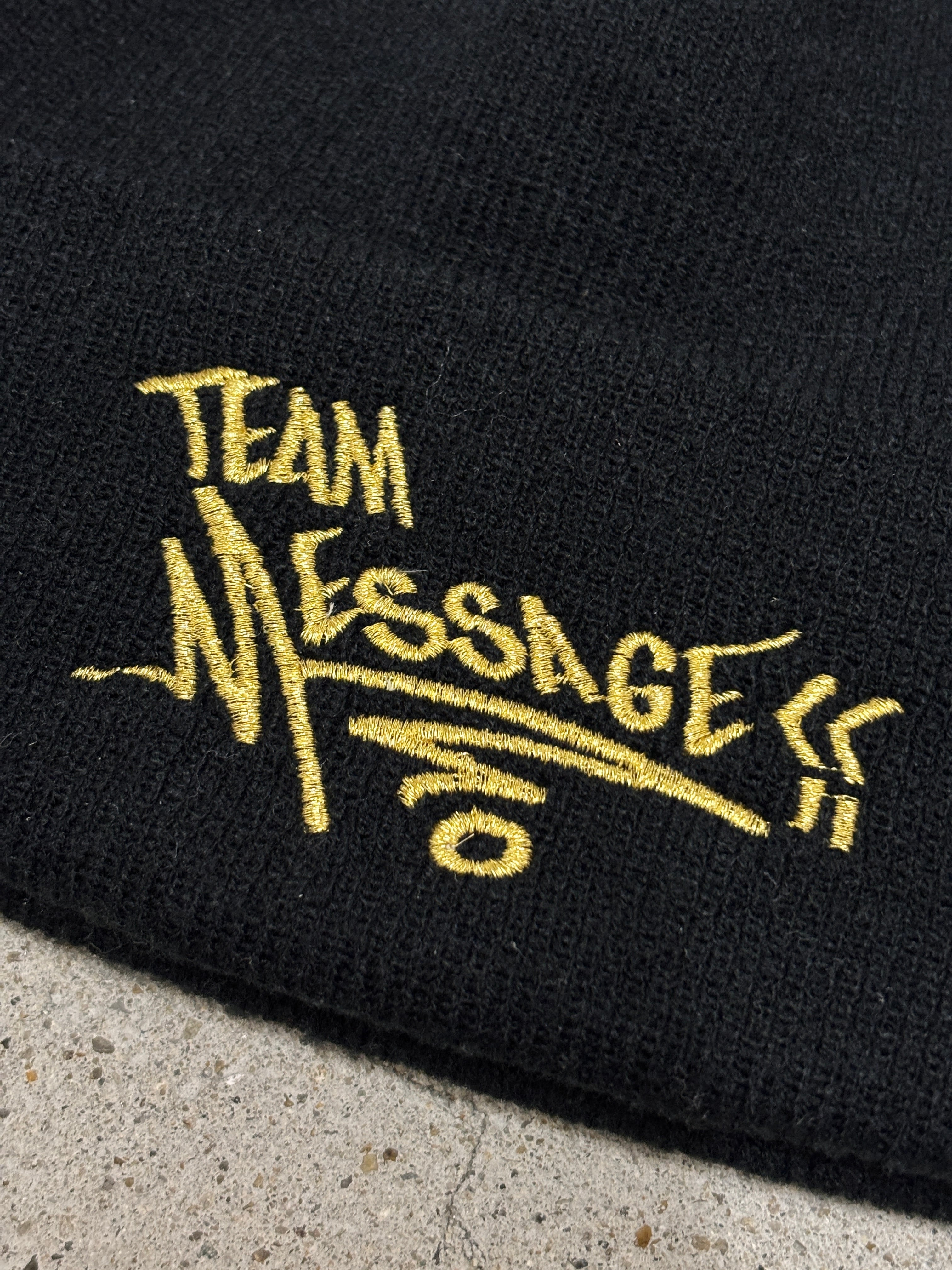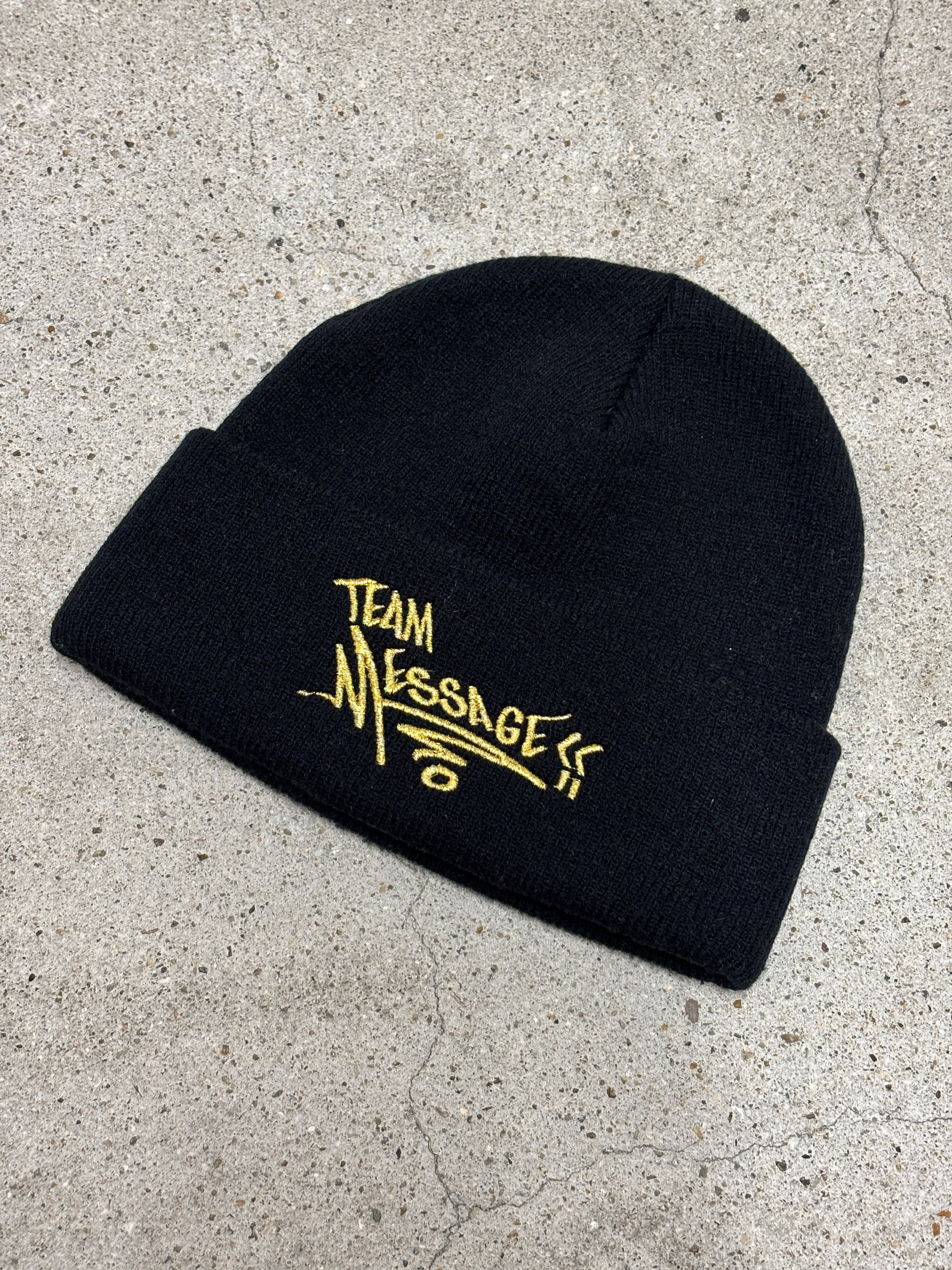 00s TEAM MESSAGE/Logo embroidery Beanie/Free/刺繍ロゴビ-ニ-/ニット帽/ニットキャップ/ブラック/ゴールド/チ-ムメッセ-ジ/帽子/ア―カイブ