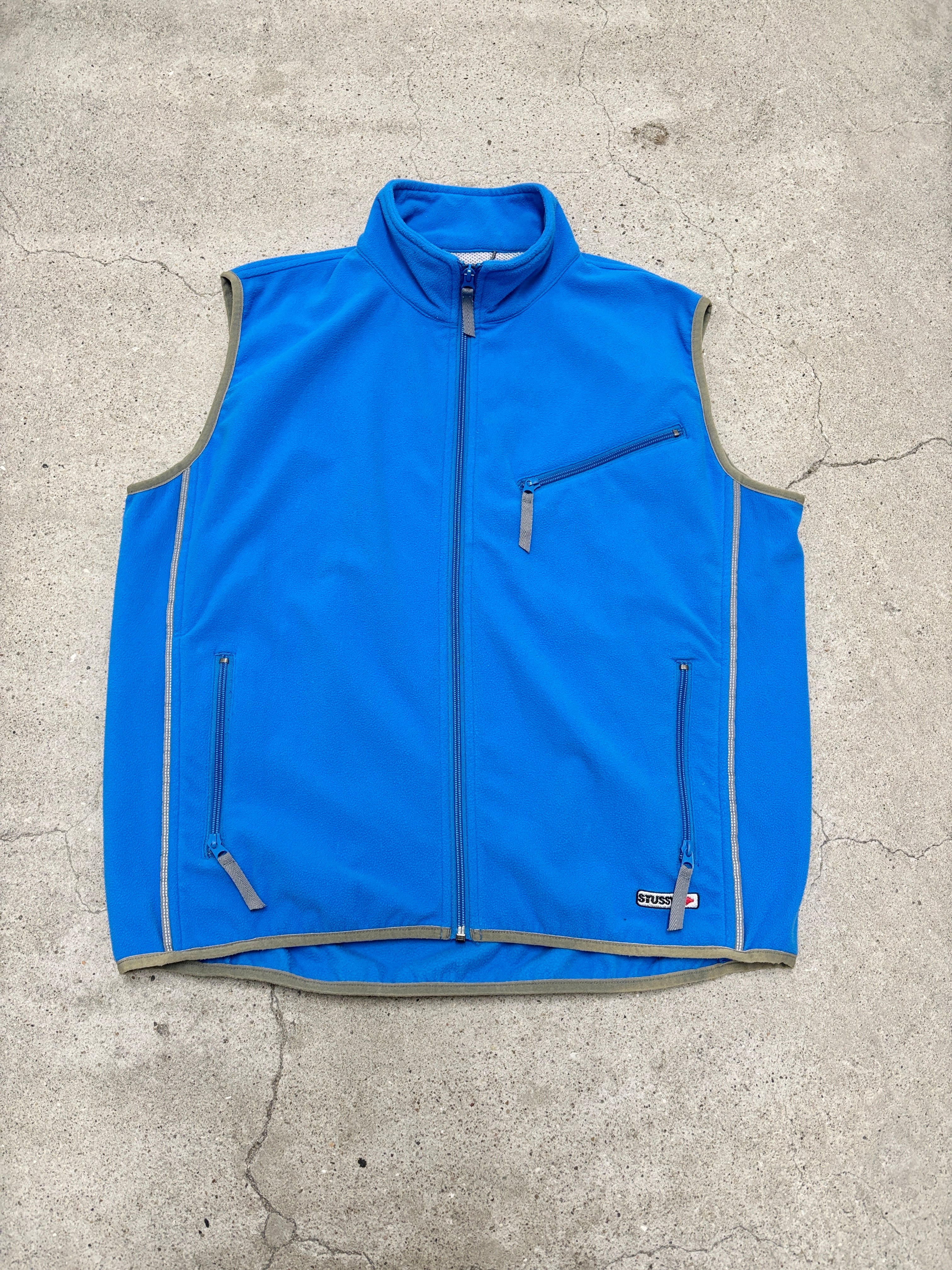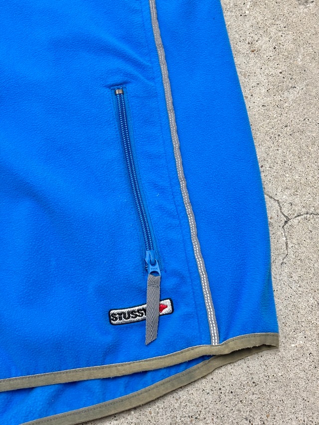 00s OLD STUSSY/FITNESS/Fleece Vest/L/フリ-スベスト/刺繍ロゴ/ブル-/フィットネスライン/ステューシー/オ-ルドステューシー