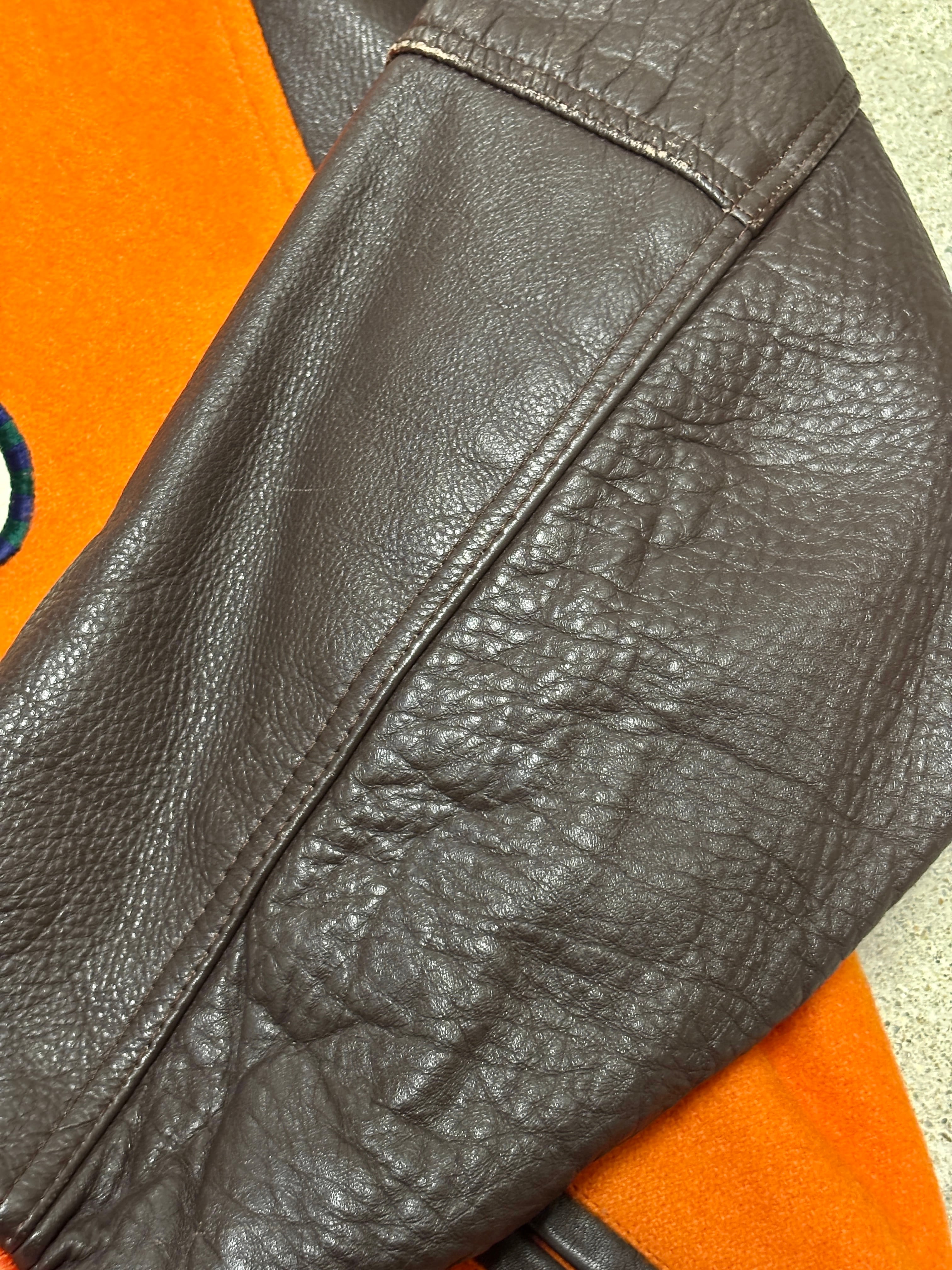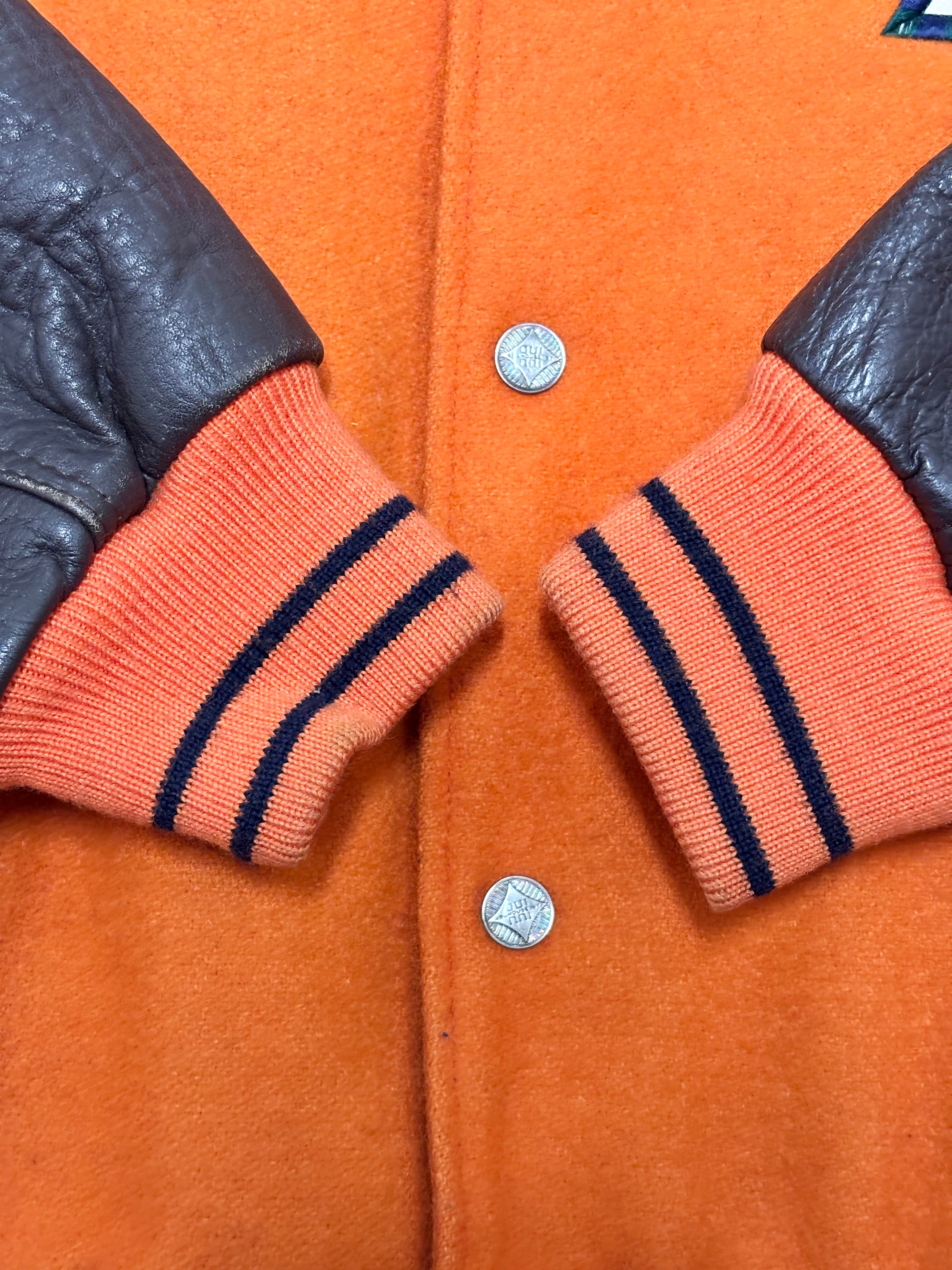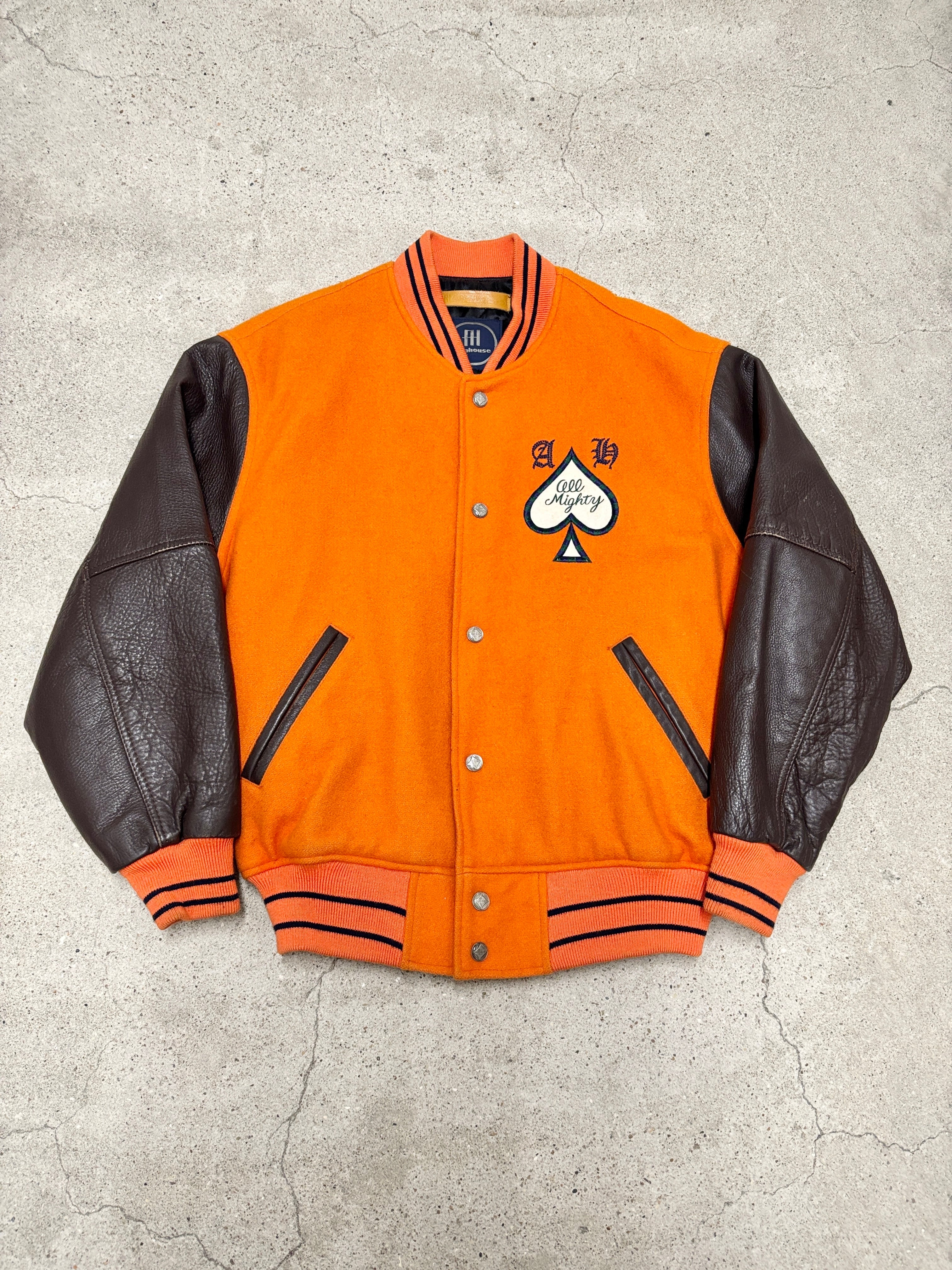 90~00s ABAHOUSE/Varsity Jacket/日本製/Free (L相当)/スタジャン/刺繍ロゴ/スペ-ド/オレンジ/アバハウス/古着/ア―カイブ