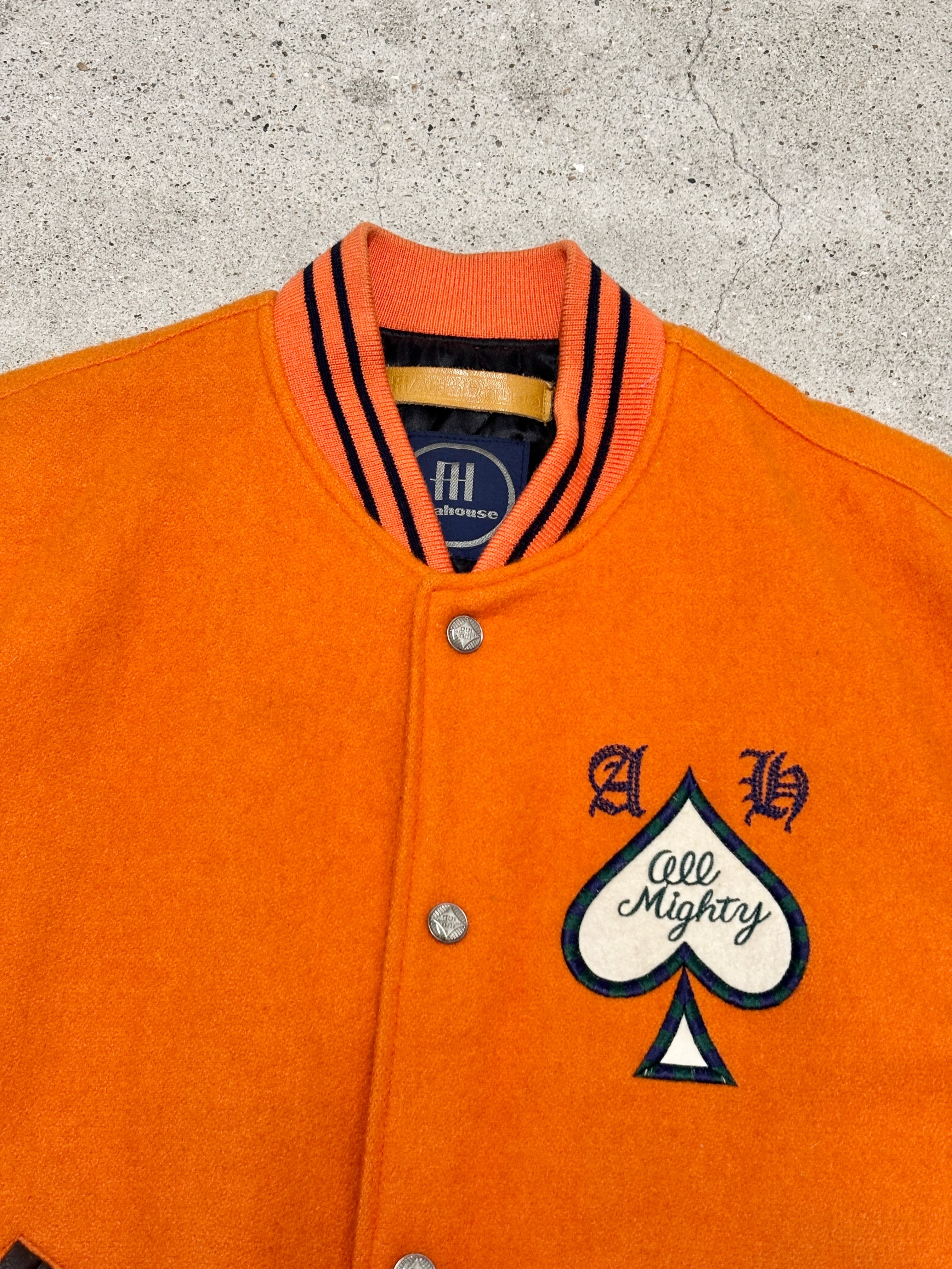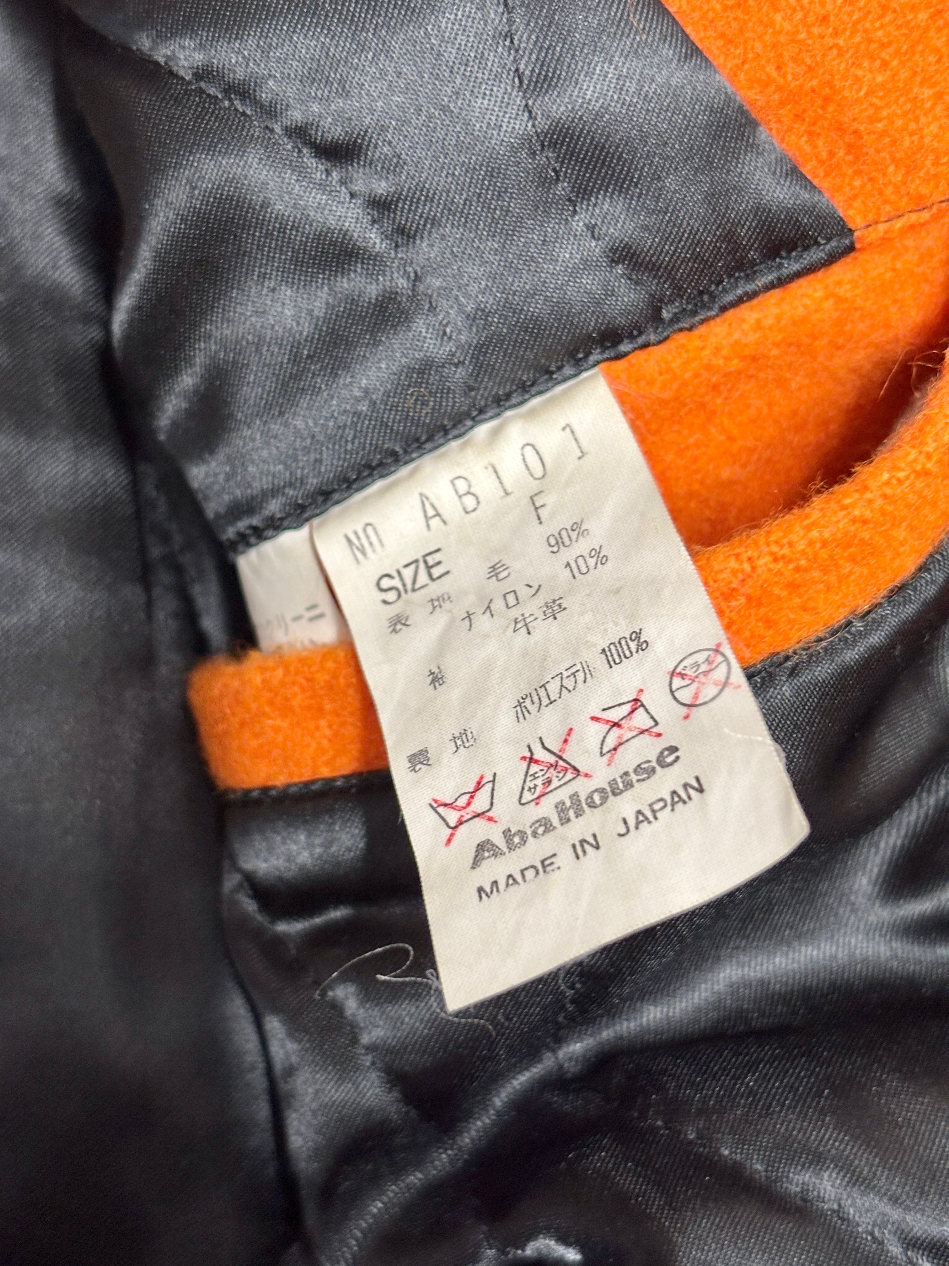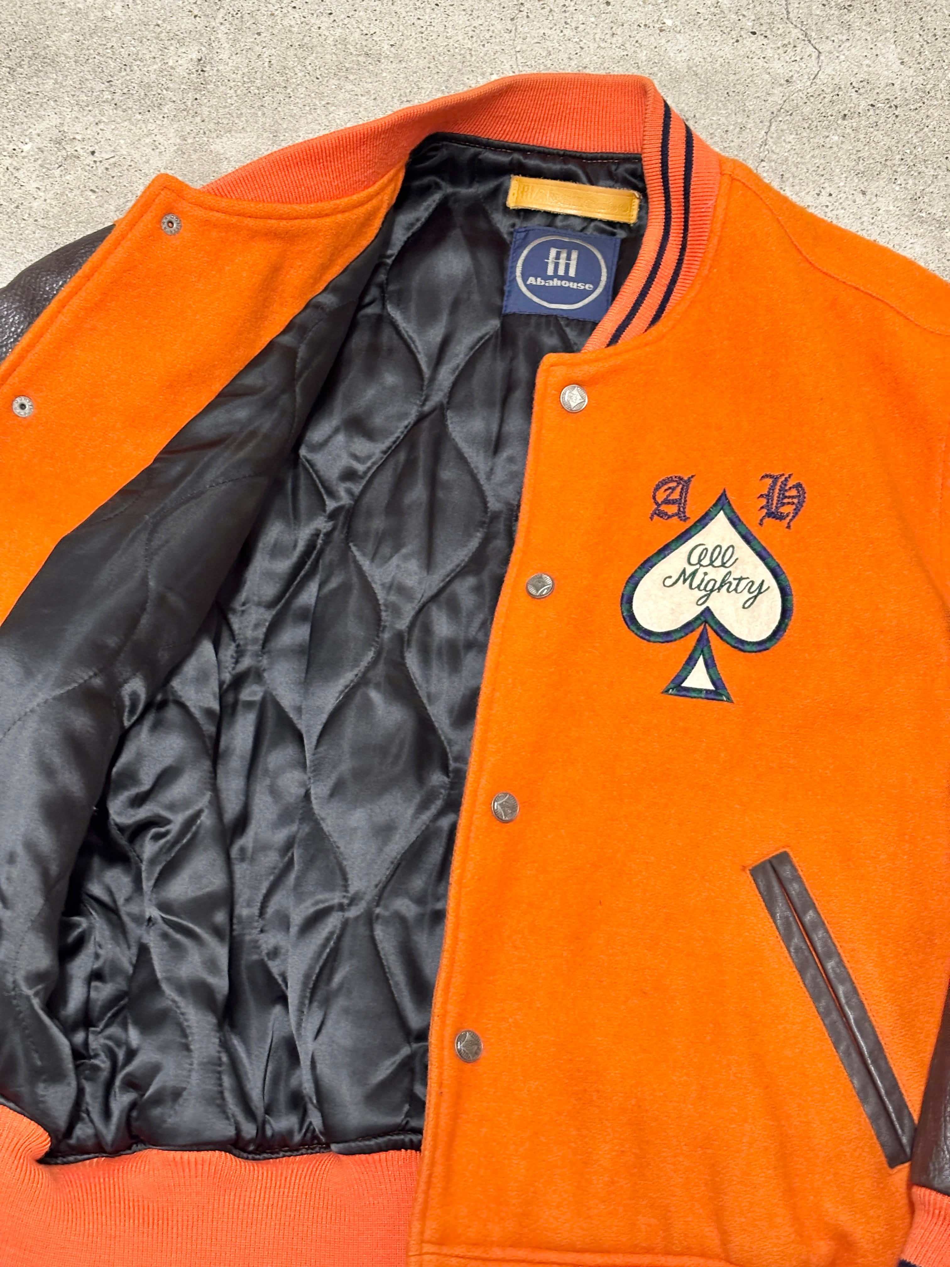 90~00s ABAHOUSE/Varsity Jacket/日本製/Free (L相当)/スタジャン/刺繍ロゴ/スペ-ド/オレンジ/アバハウス