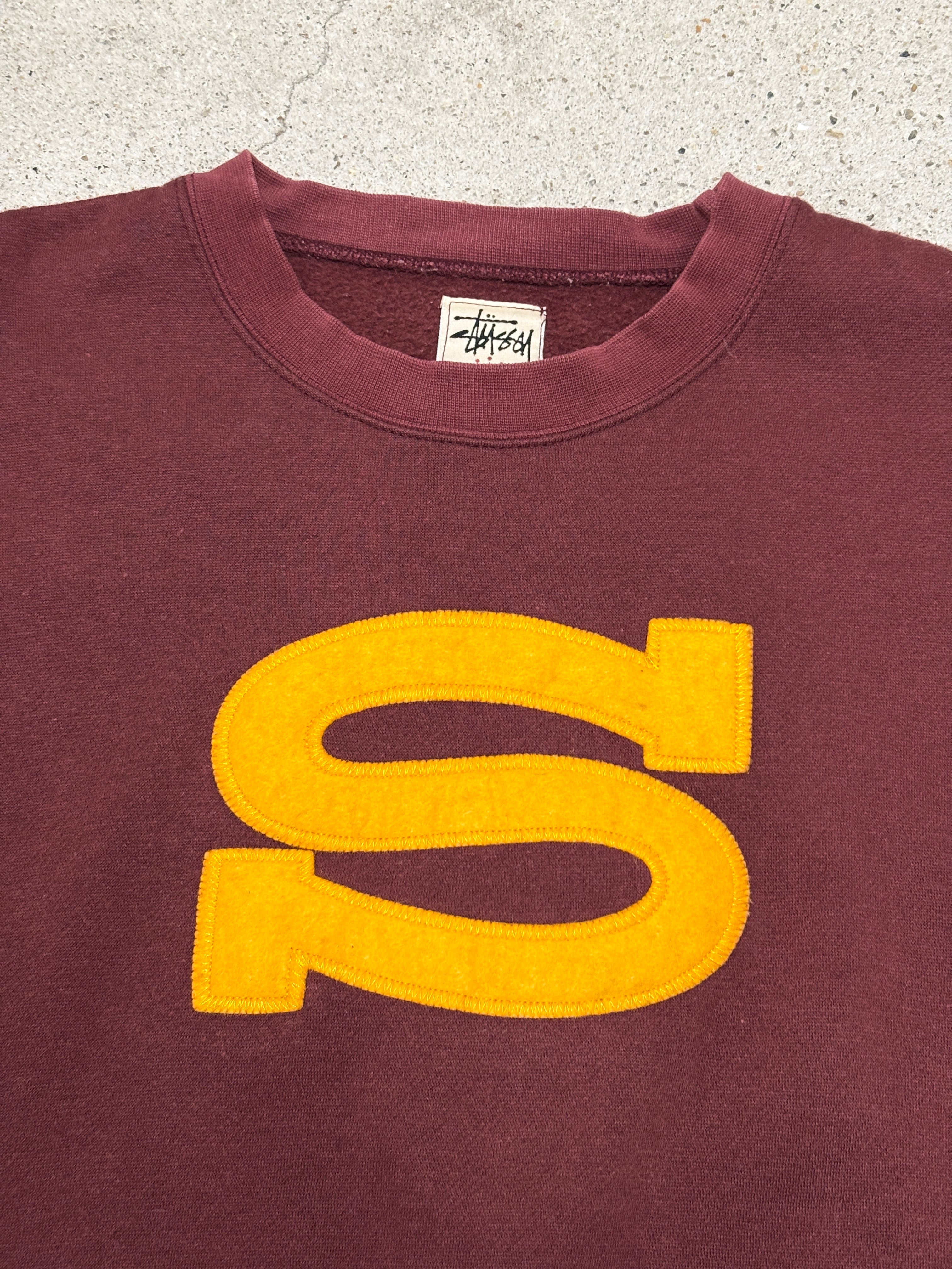 90s OLD STUSSY/S Logo patch Sweat/OZ製/白タグ/M/Sロゴパッチスウェット/ボルドー/バーガンディ/ステューシー/オールドステューシー/古着/ア―カイブ