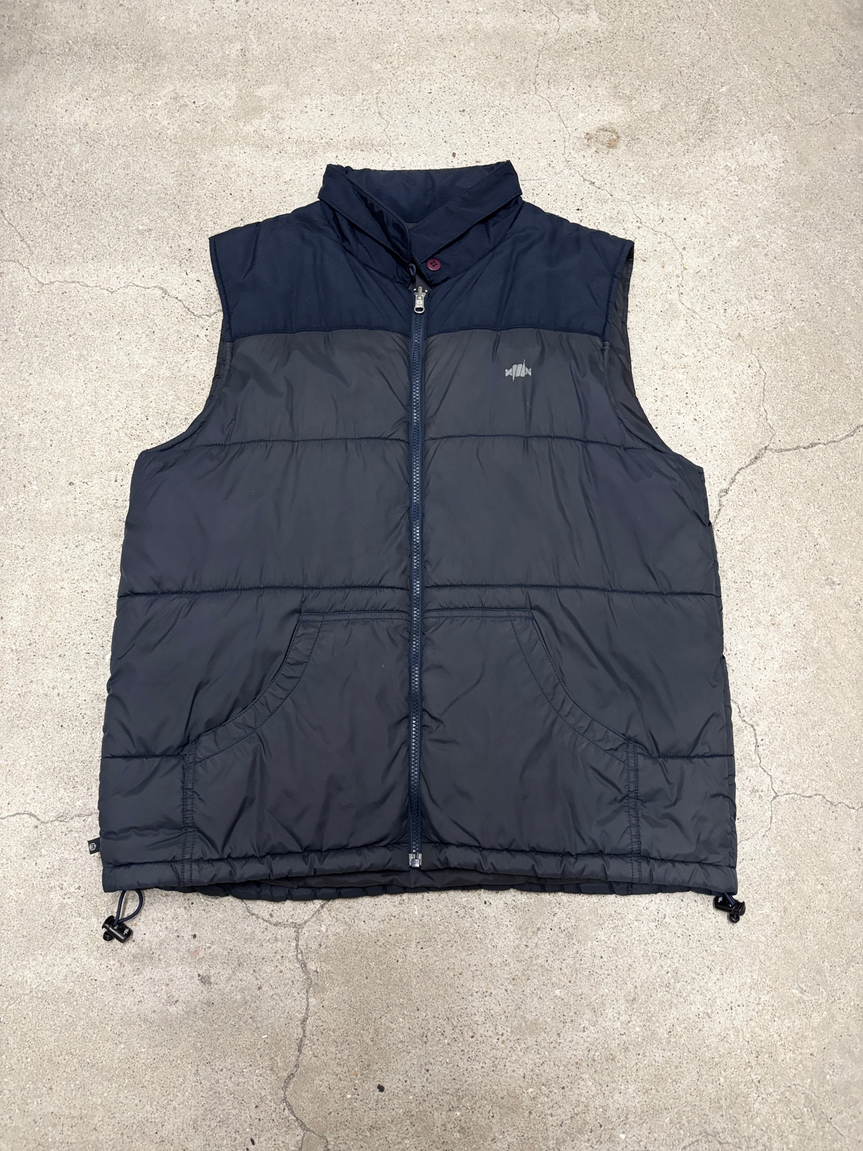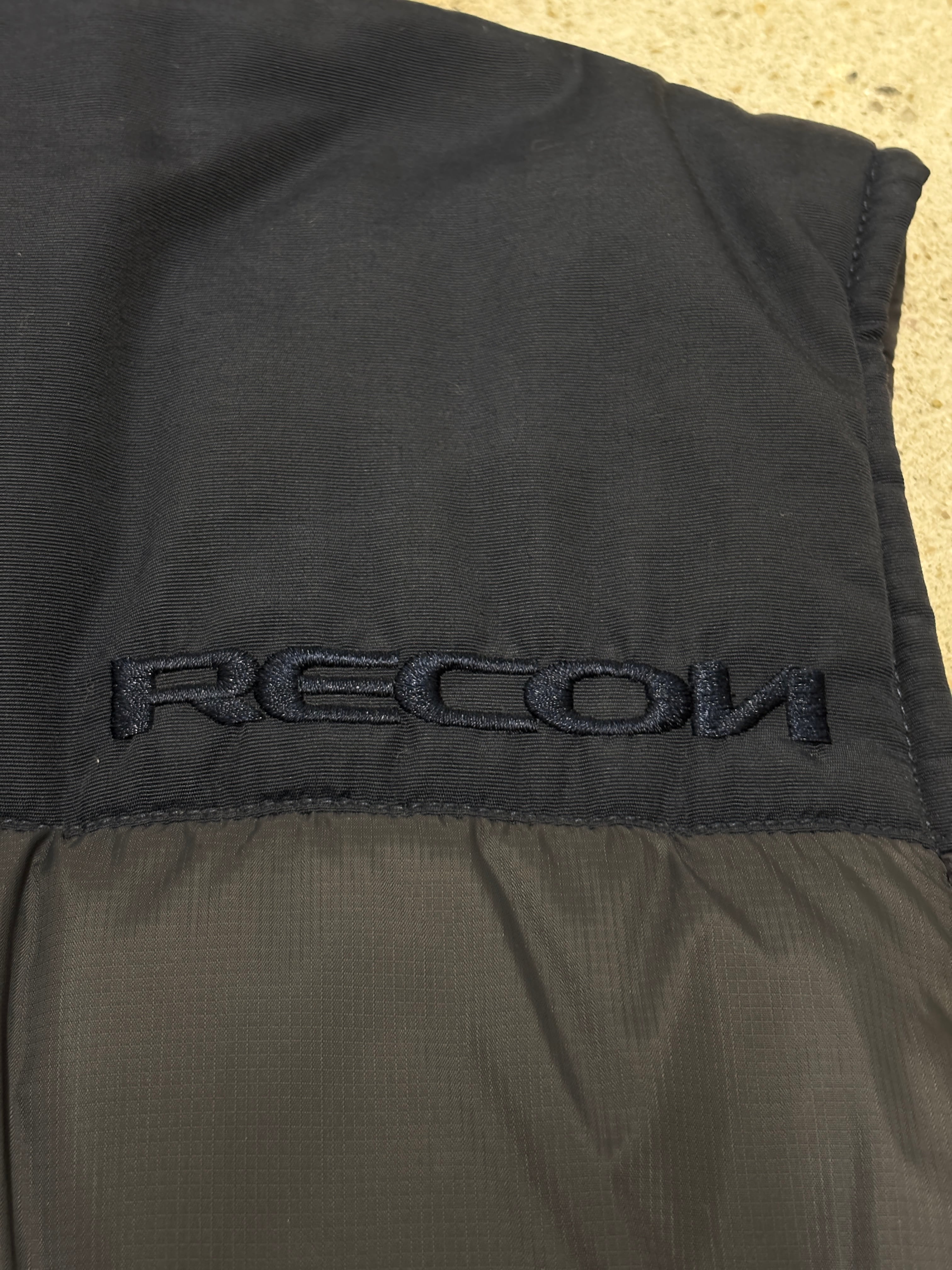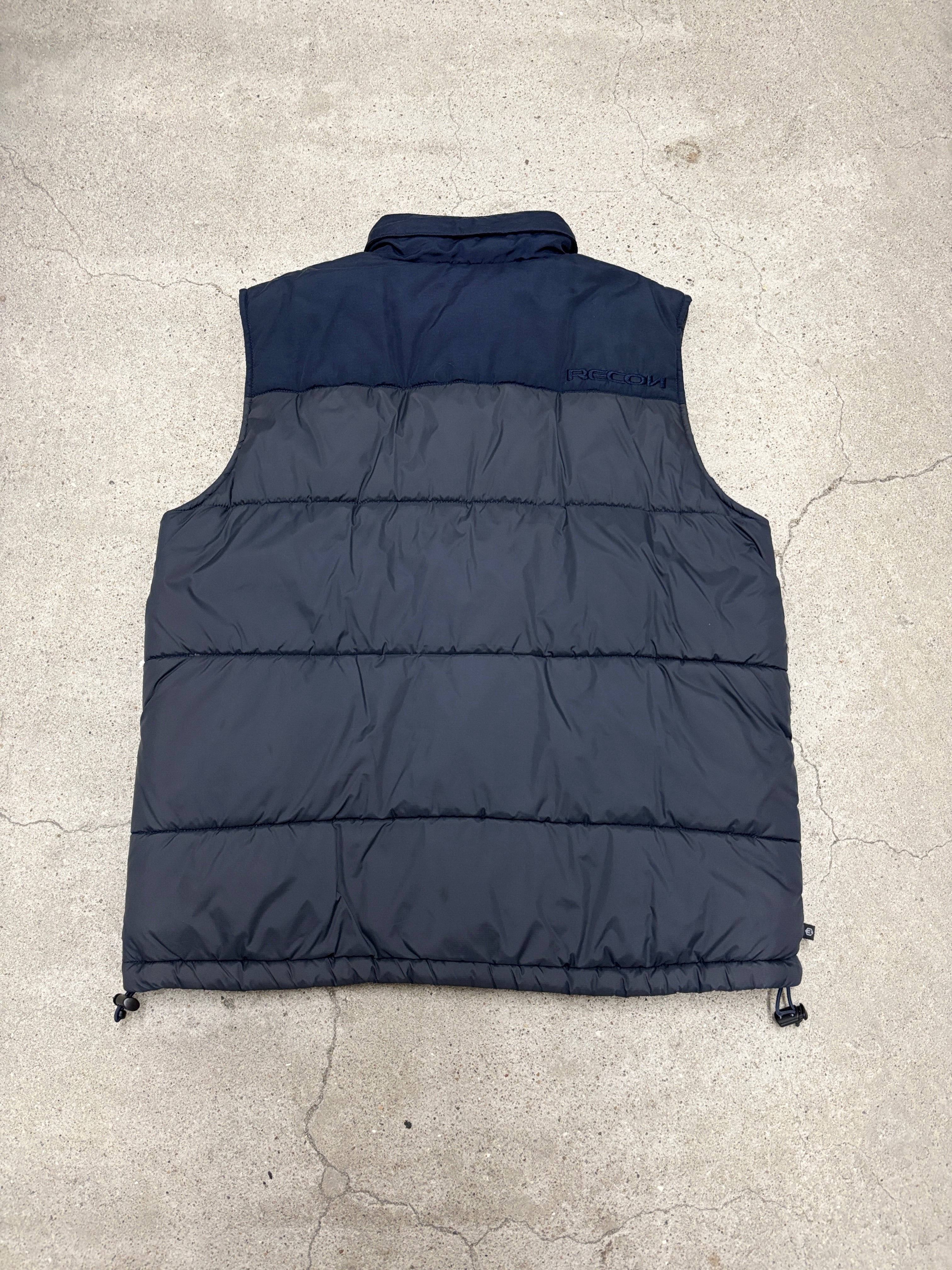 00s RECON/Puff Vest/M/パフベスト/有刺鉄線/刺繍ロゴ/ナイロンベスト/マルチポケット/ネイビ-/FUTURA/STASH/リ-コン/裏原/古着/ア―カイブ