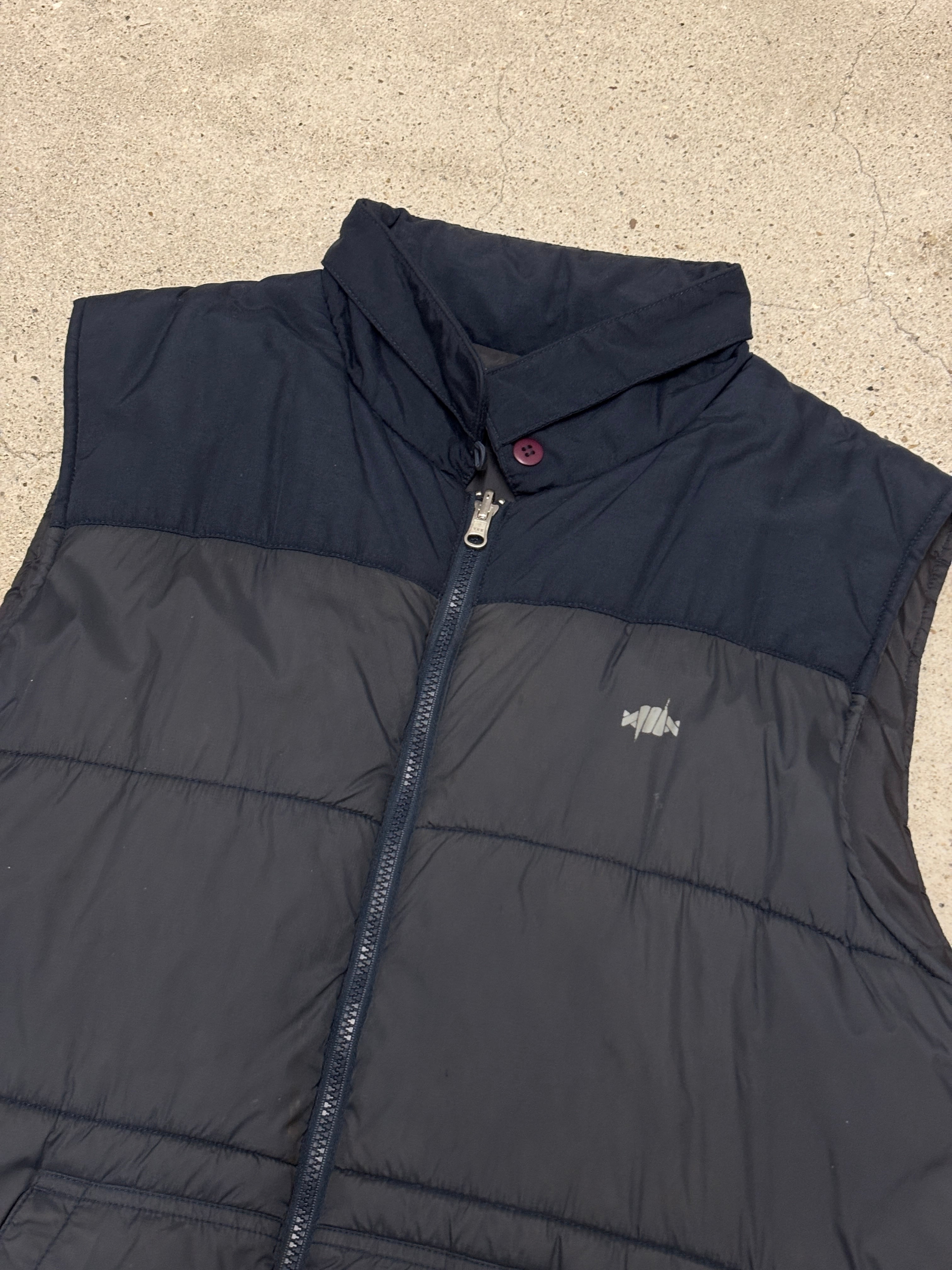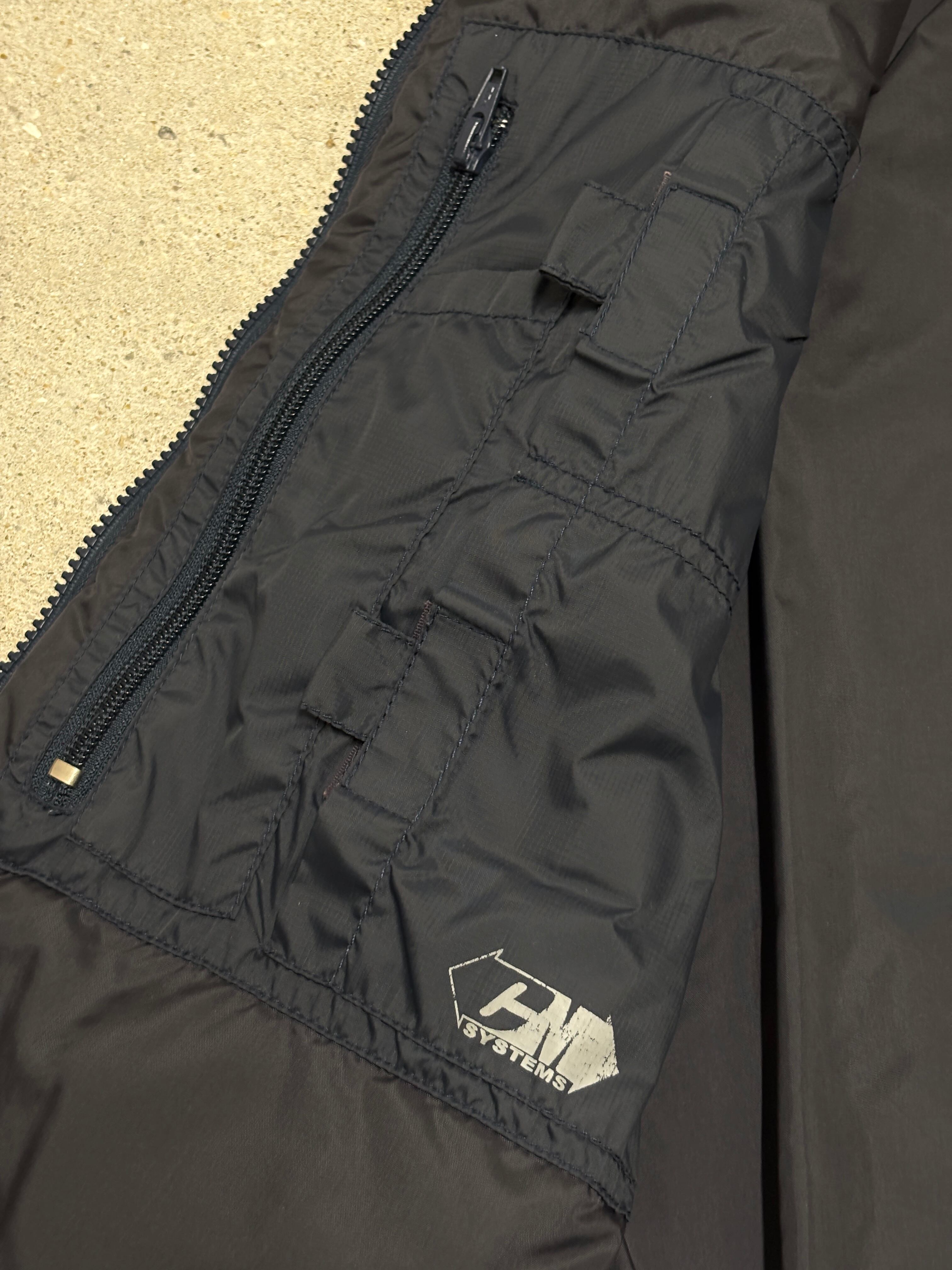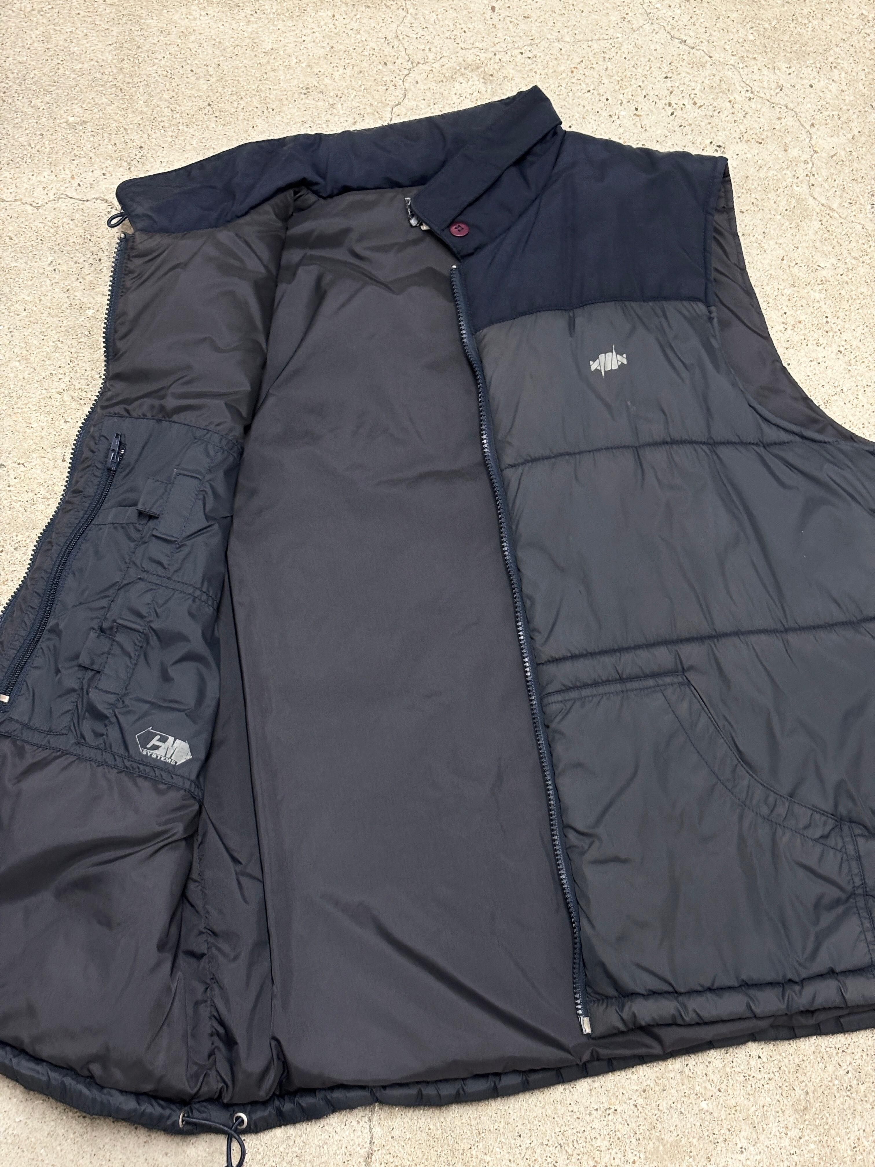 00s RECON/Puff Vest/M/パフベスト/有刺鉄線/刺繍ロゴ/ナイロンベスト/マルチポケット/ネイビ-/FUTURA/STASH/リ-コン/裏原/古着/ア―カイブ