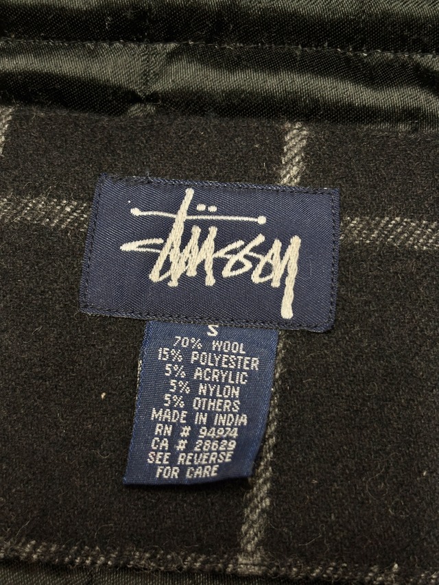 90~00s OLD STUSSY/Check Wool Jacket/紺タグ/S/チェックウ-ルジャケット/ブラック/ステューシー/オ-ルドステューシー/古着/ア―カイブ