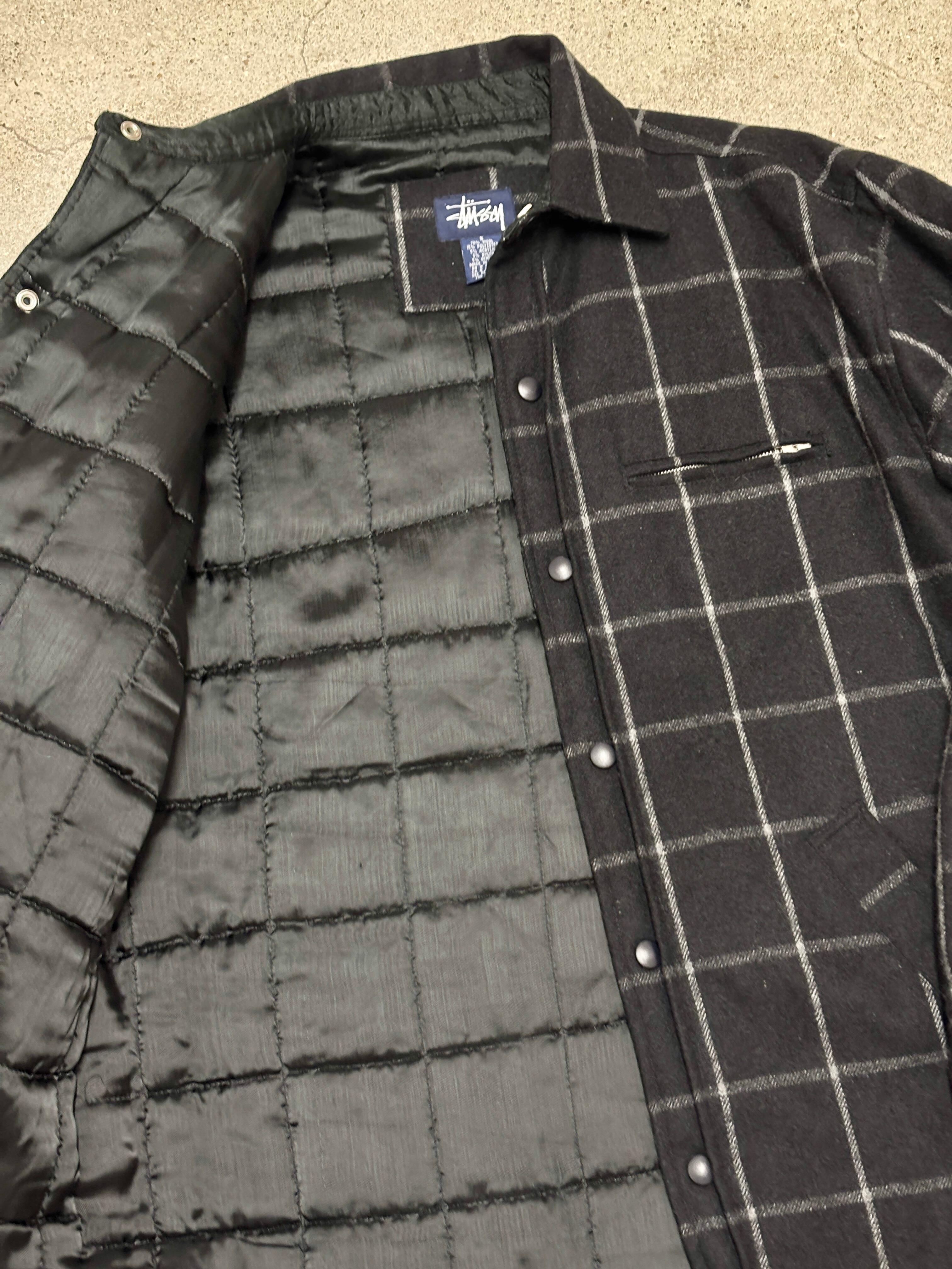 90~00s OLD STUSSY/Check Wool Jacket/紺タグ/S/チェックウ-ルジャケット/ブラック/ステューシー/オ-ルドステューシー