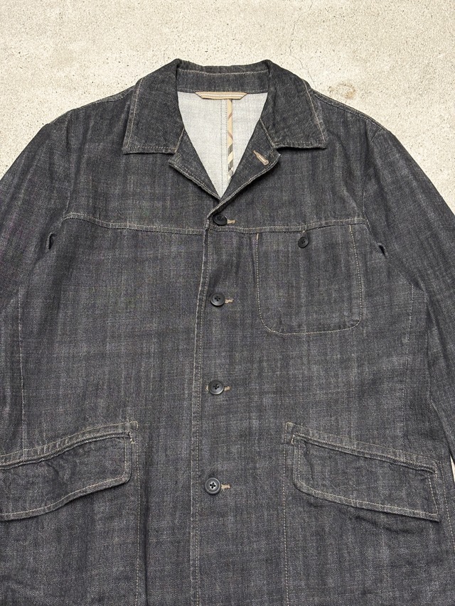 BURBERRY LONDON/Denim Coverall Jacket/日本製/L/デニムカバ-オ-ルジャケット/ブラック/バ-バリ-チェック/バ-バリ-ロンドン
