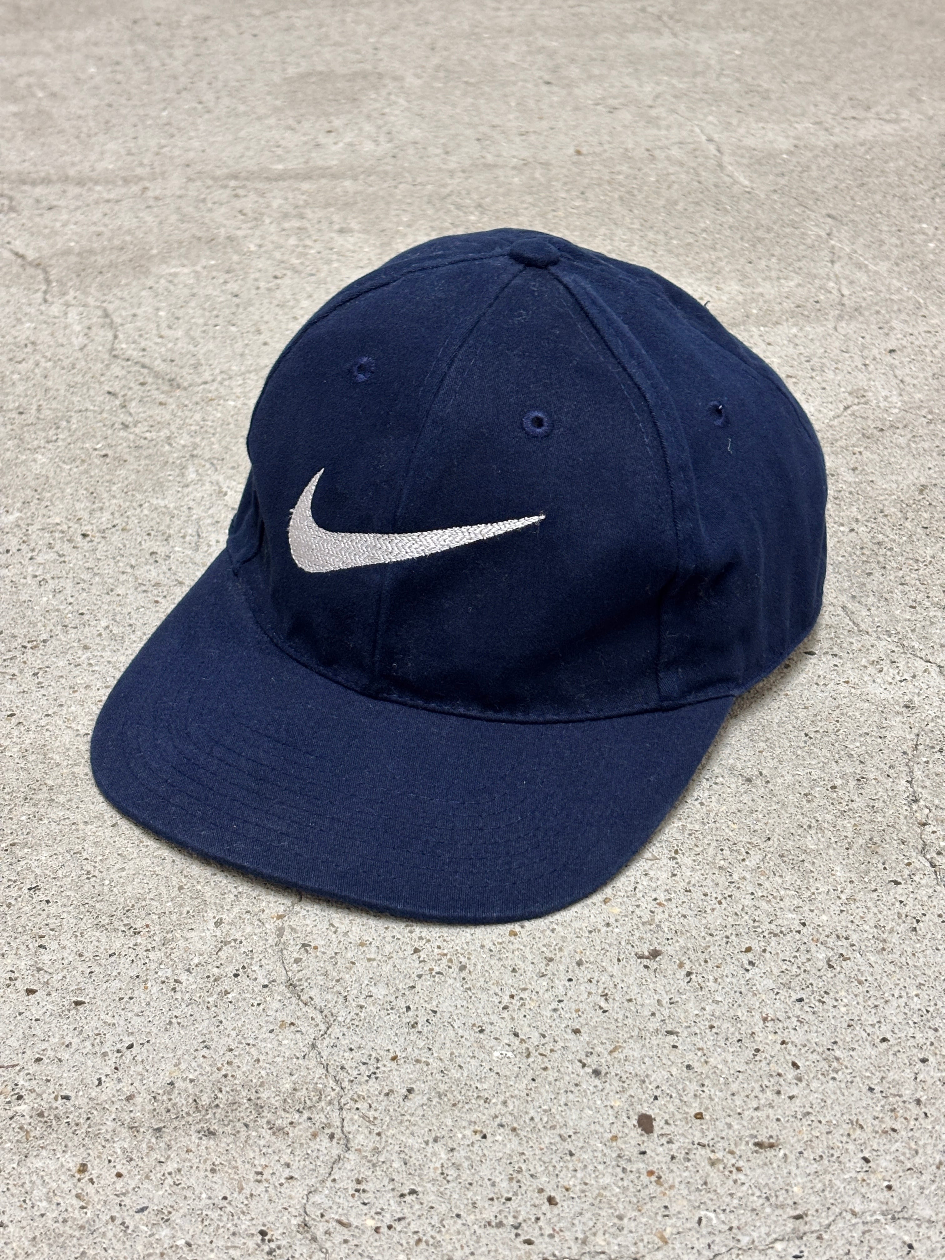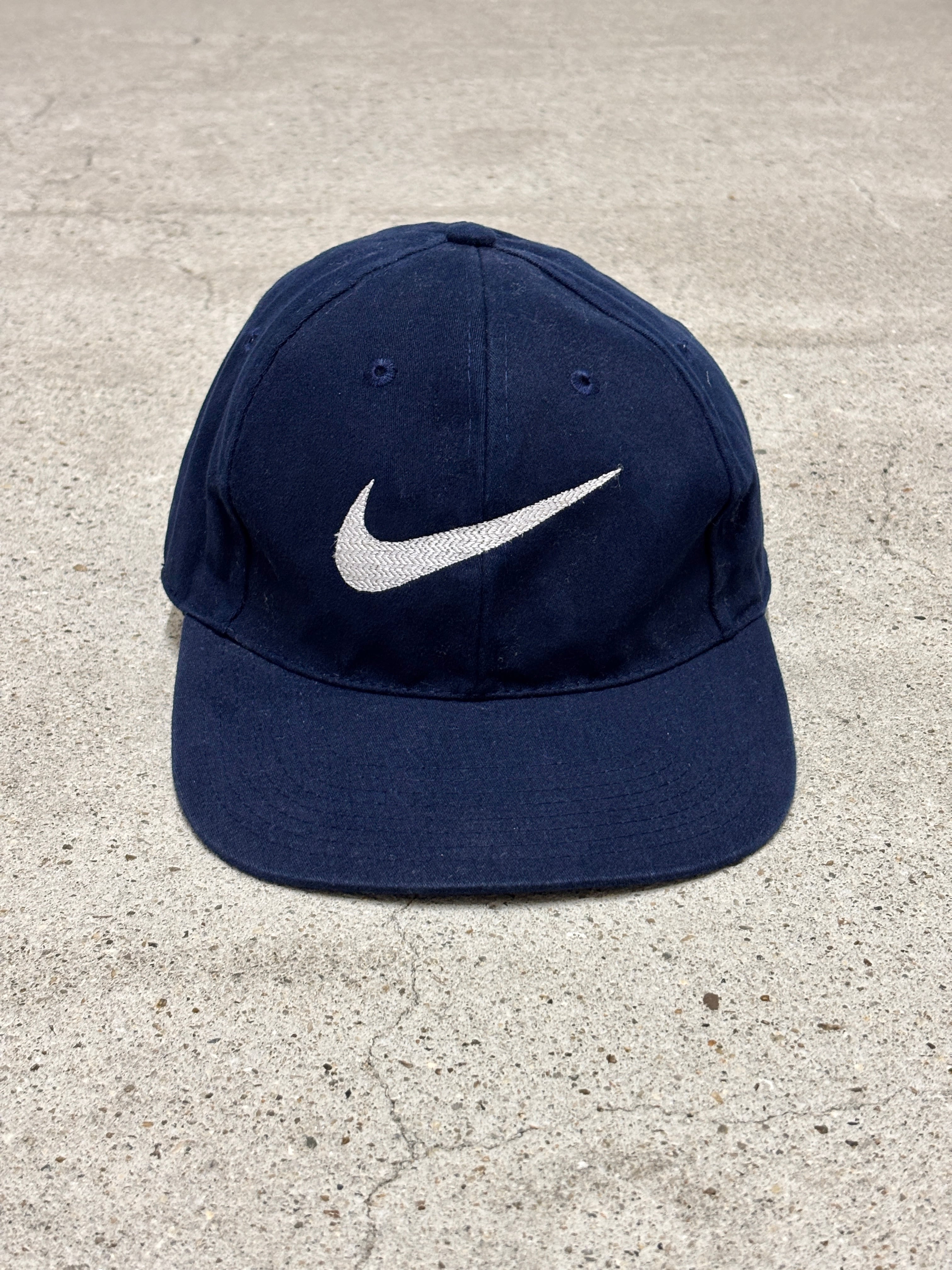 90~00s NIKE/Swoosh Logo Snapback Cap/Free/スウォッシュロゴキャップ/スナップバックキャップ/刺繍ロゴ/ネイビ-/ナイキ