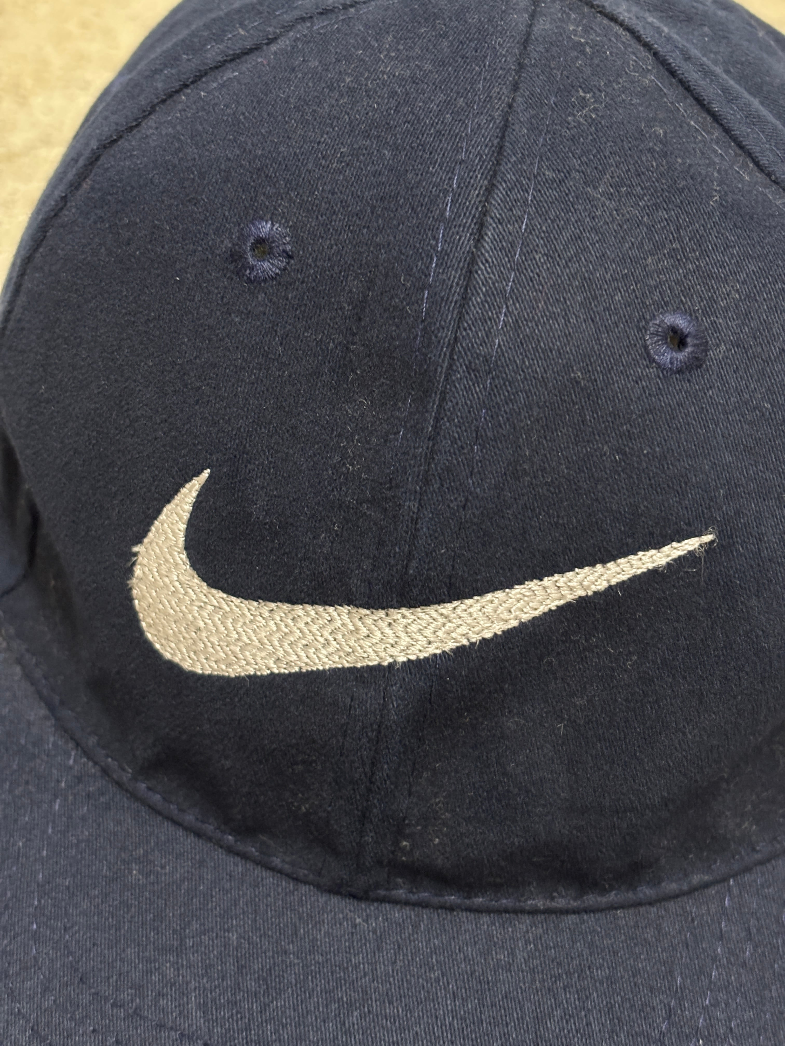 90~00s NIKE/Swoosh Logo Snapback Cap/Free/スウォッシュロゴキャップ/刺繍ロゴ/ネイビ-/ナイキ/帽子/ア―カイブ