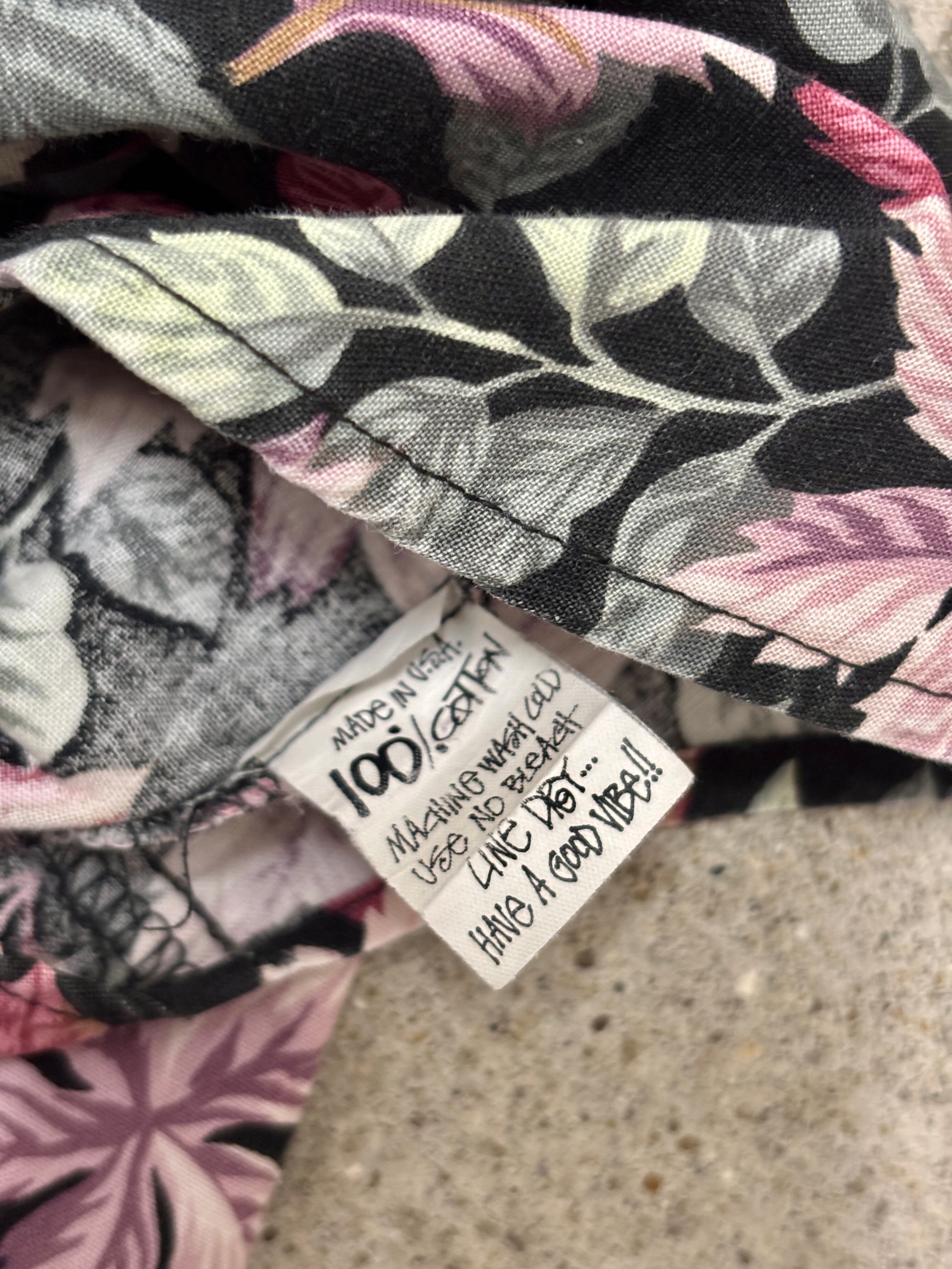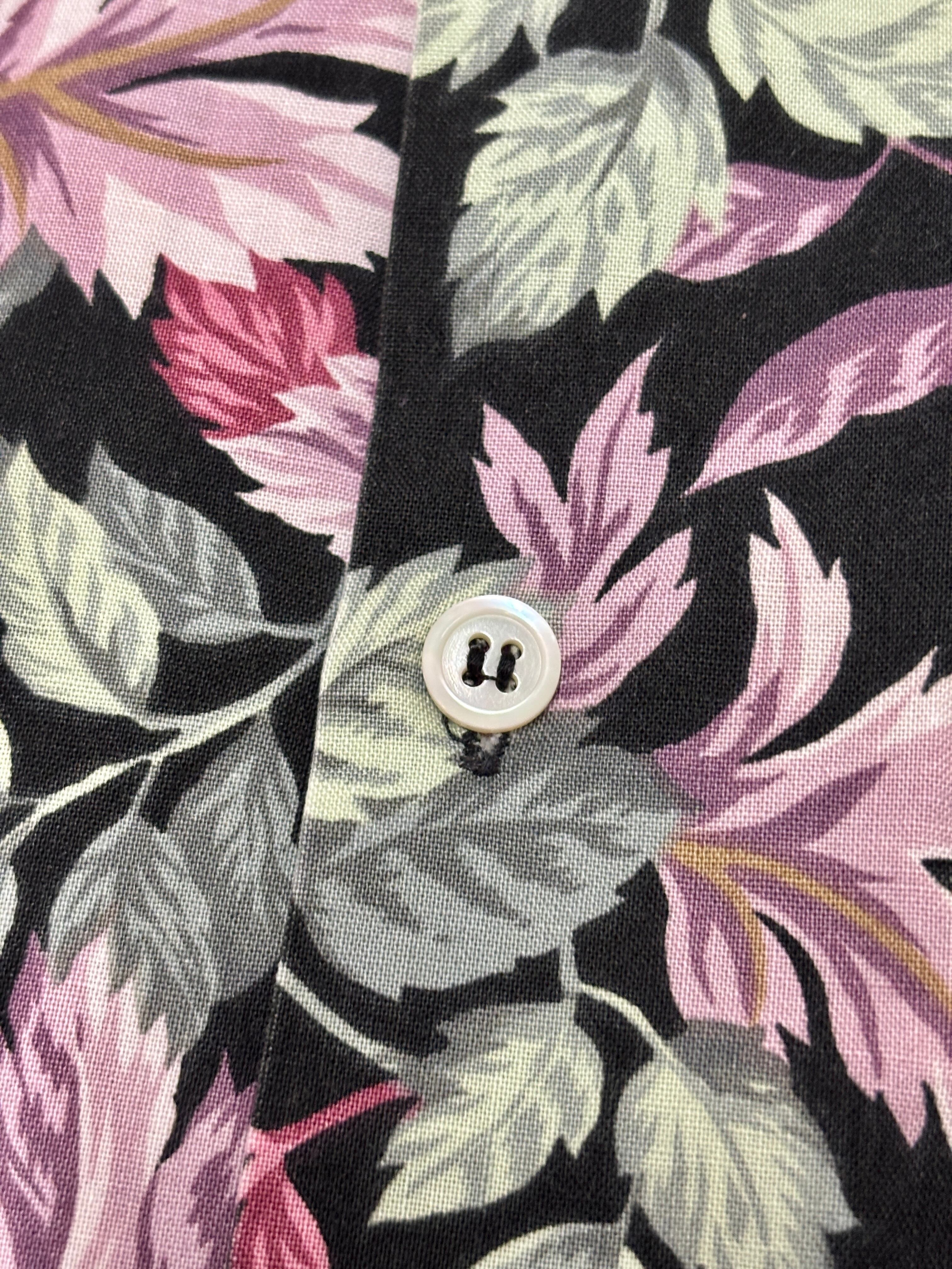 80s OLD STUSSY/Leaf print L/S Shirt/USA製/黒タグ/S (実寸M相当)/葉プリントシャツ/総柄/ブラック/長袖シャツ/ステューシー/オ-ルドステューシー/古着/ア―カイブ