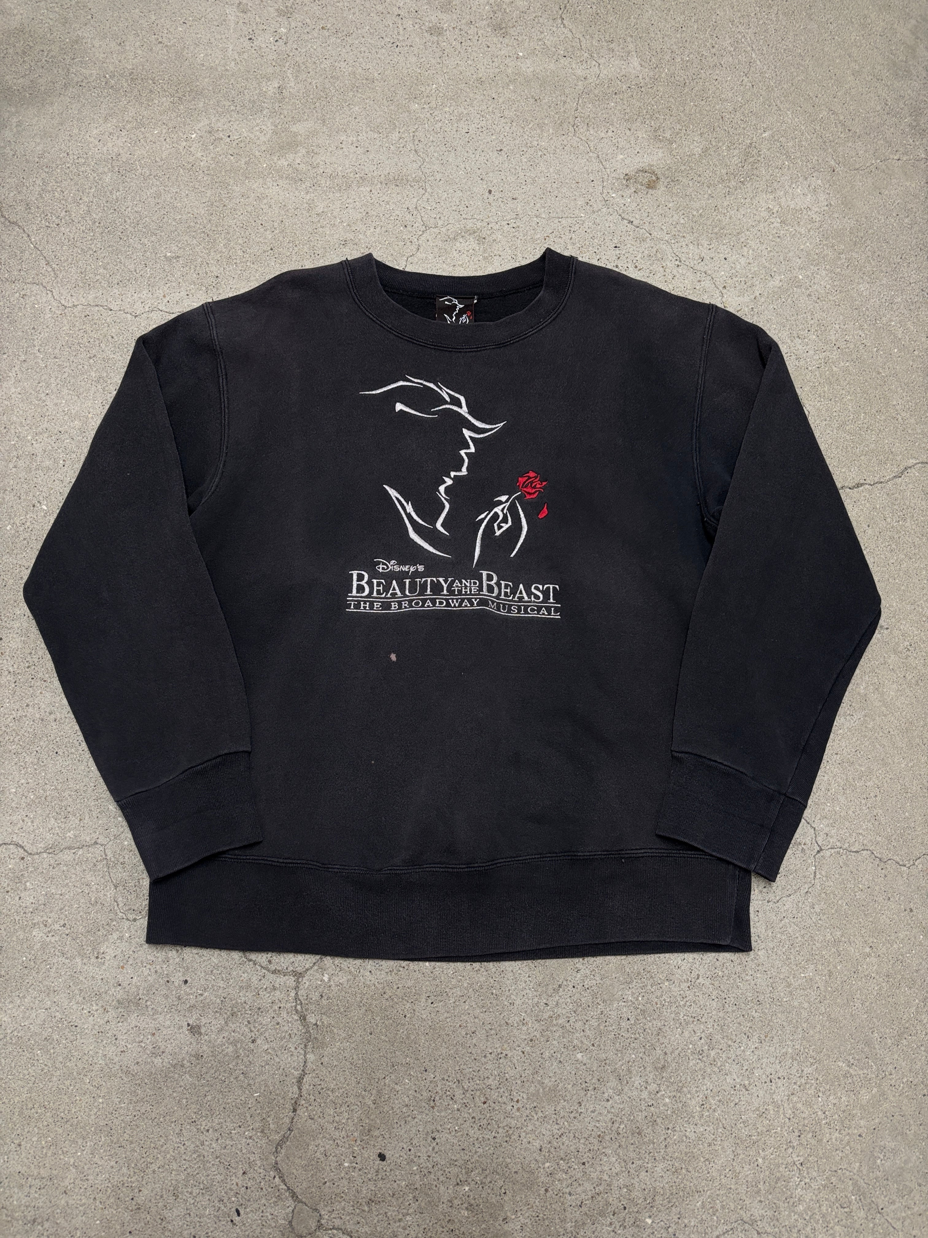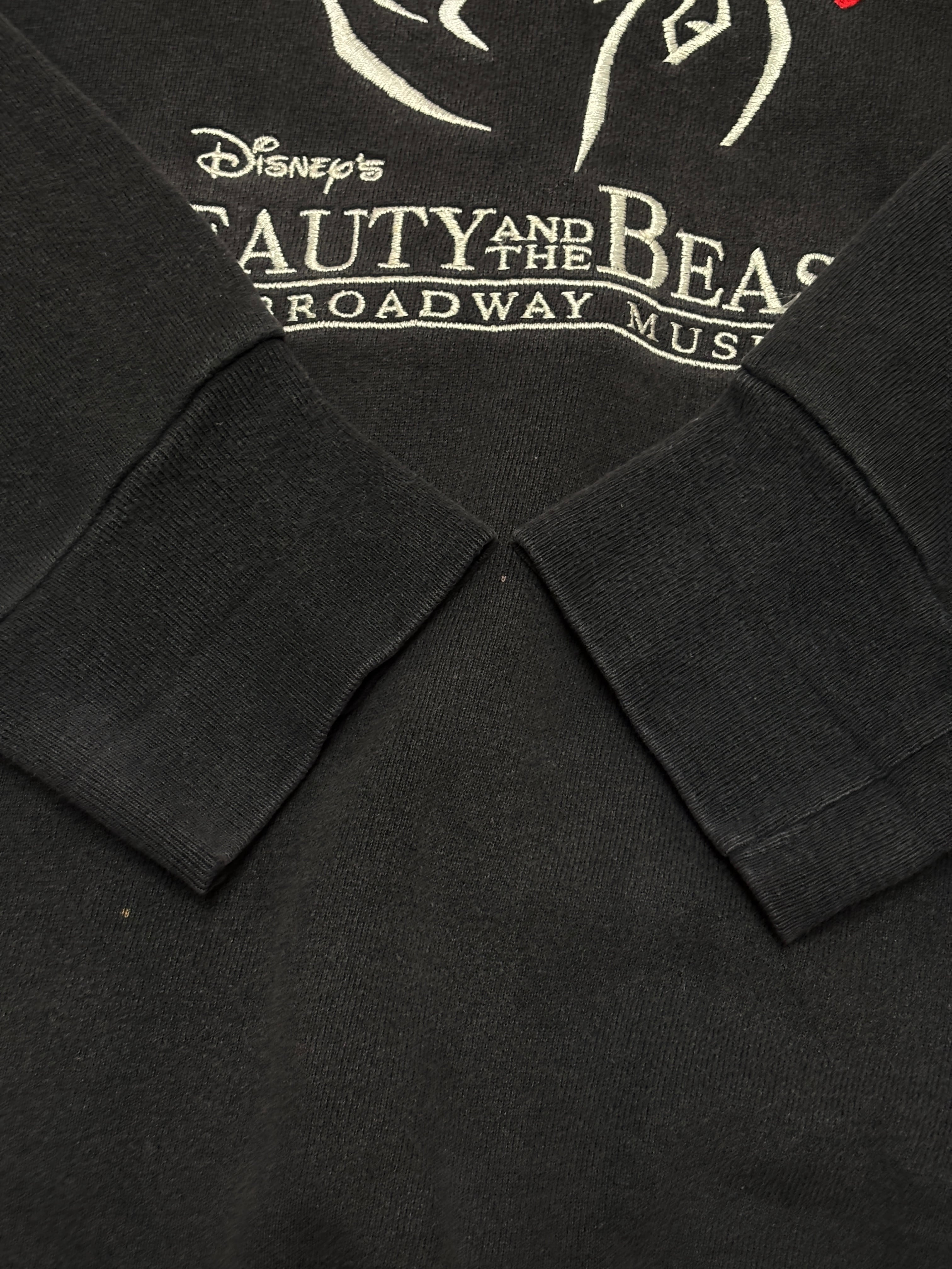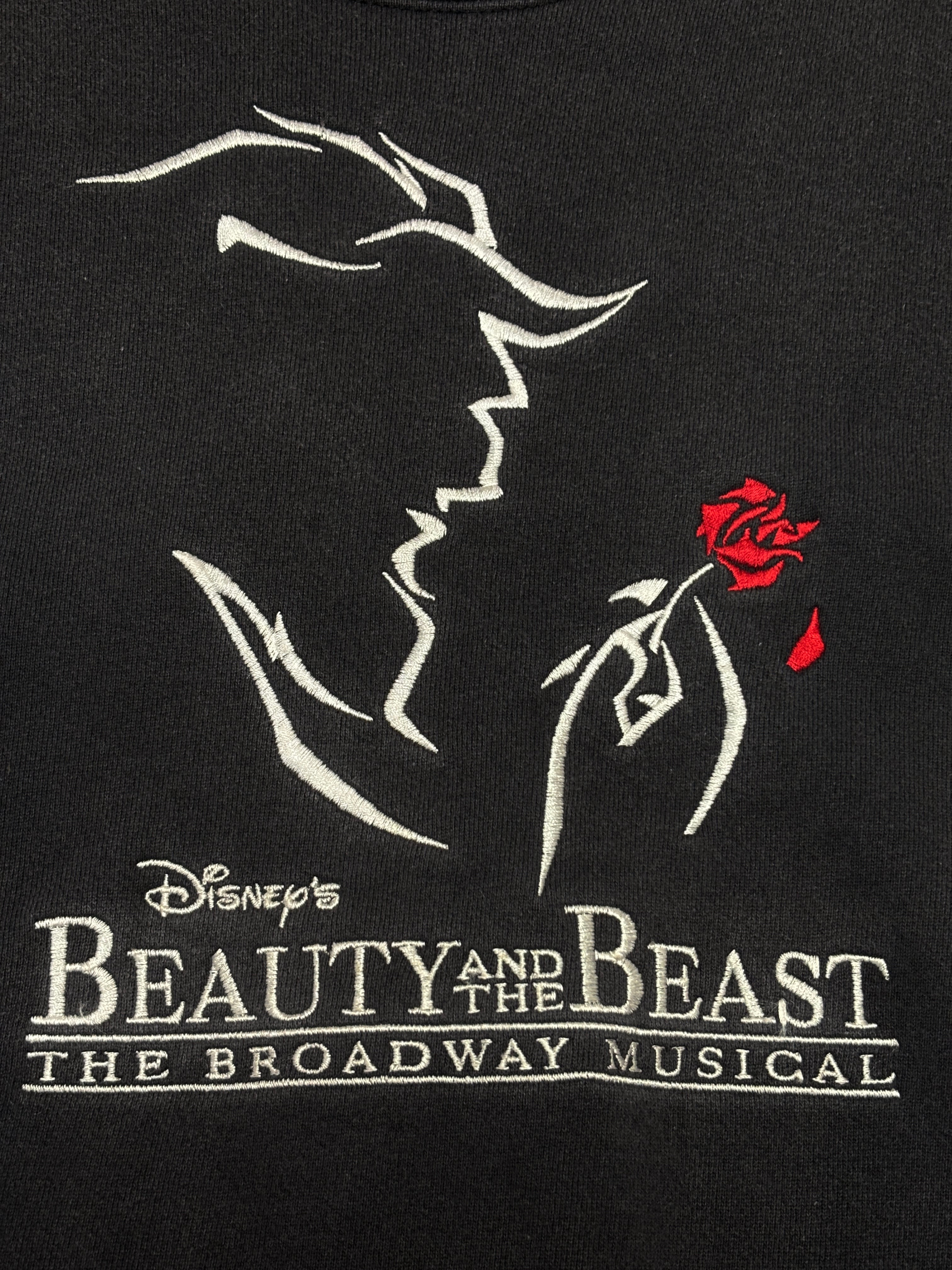 90s Disney/BEAUTY AND THE BEAST Sweat/USA製/M/美女と野獣スウェット/刺繍/ブラック/ディズニ-
