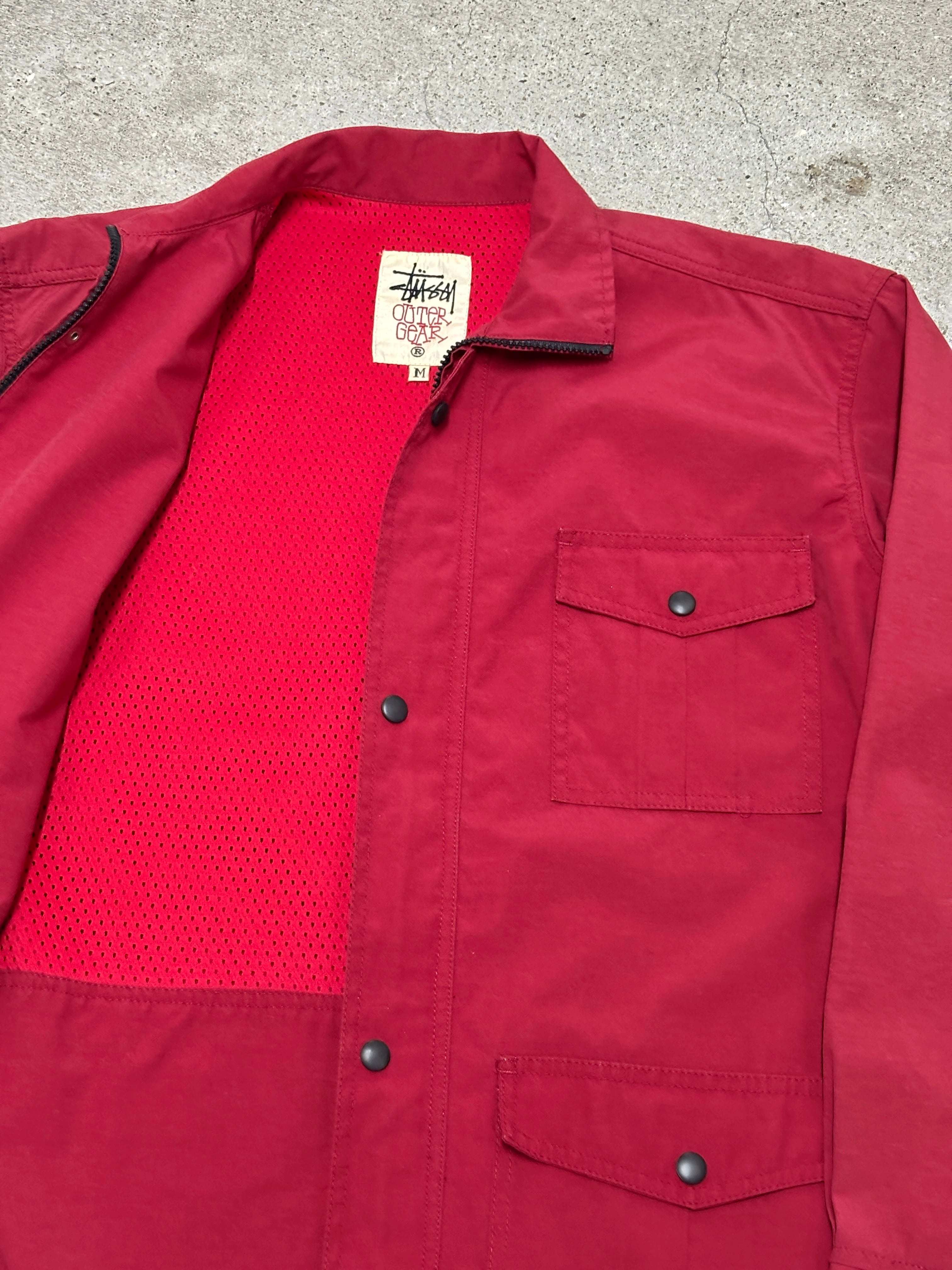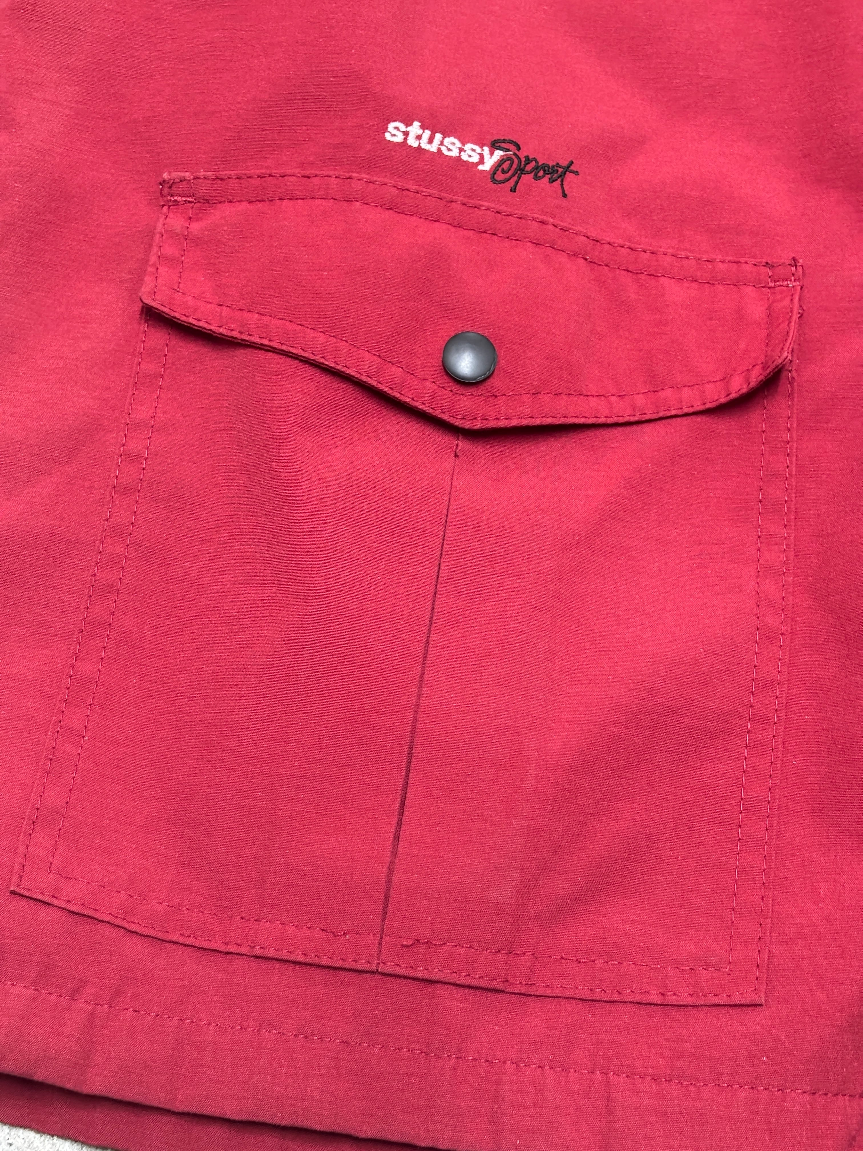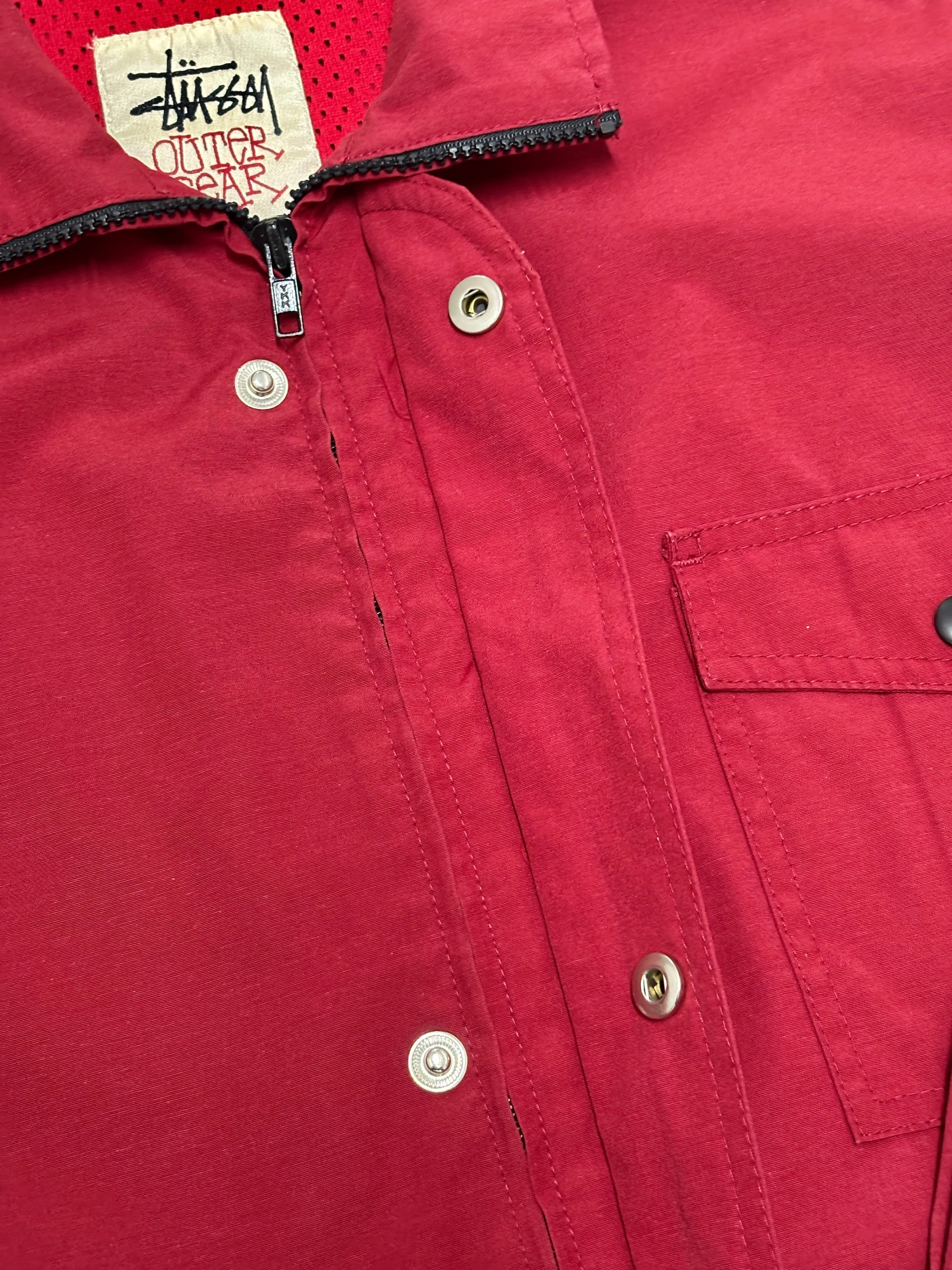 90s OLD STUSSY/STUSSY SPORT Nylon Jacket/USA製/白タグ/M/ナイロンジャケット/刺繍ロゴ/OUTER GEAR/レッド/ステューシー/オ-ルドステューシー/古着/ア-カイブ