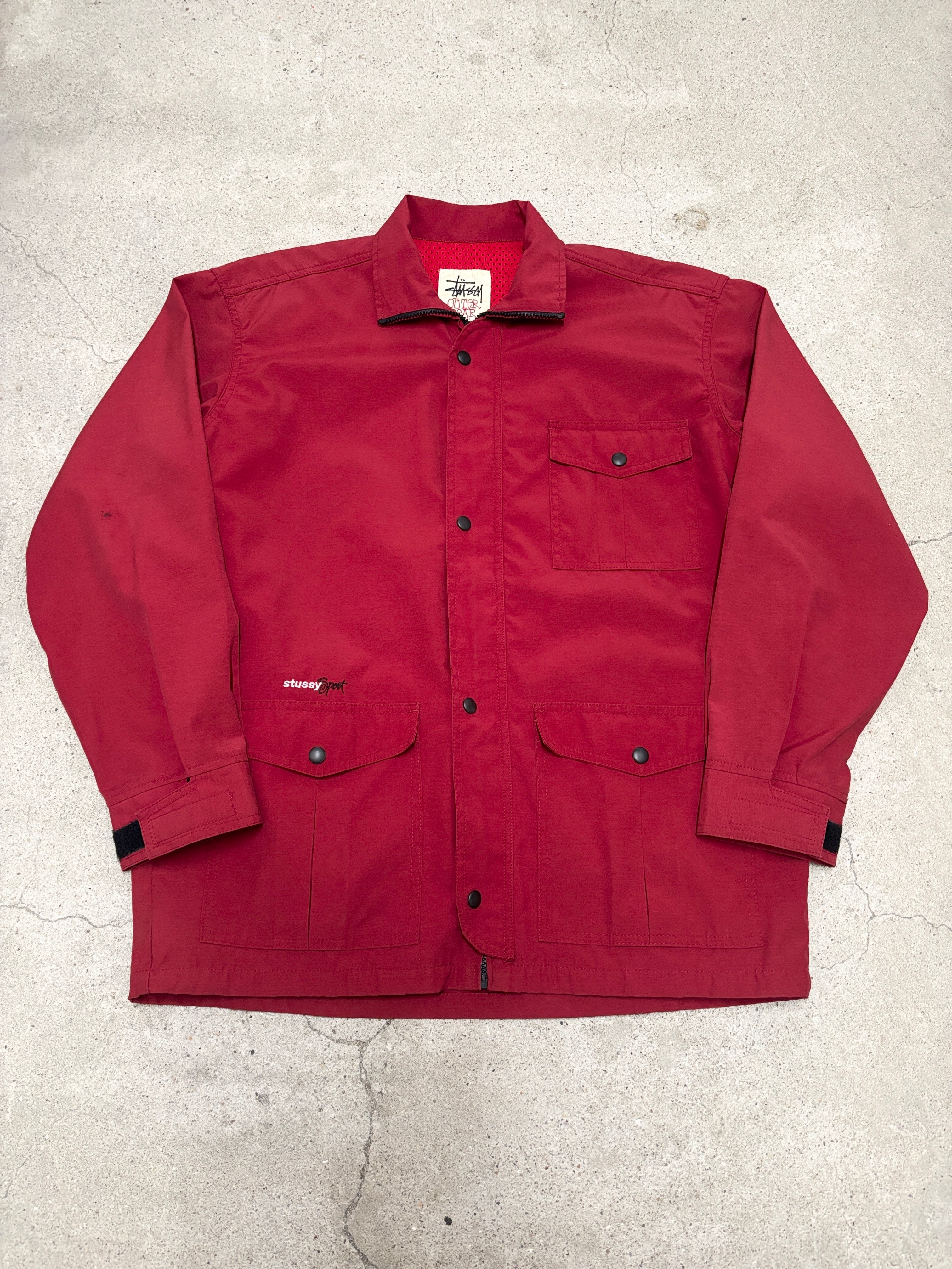 90s OLD STUSSY/STUSSY SPORT Nylon Jacket/USA製/白タグ/M/ナイロンジャケット/刺繍ロゴ/OUTER GEAR/レッド/ステューシー/オ-ルドステューシー