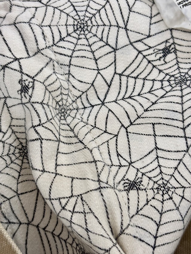 ペイント加工、蜘蛛の刺繍がデザインされたアイテム。