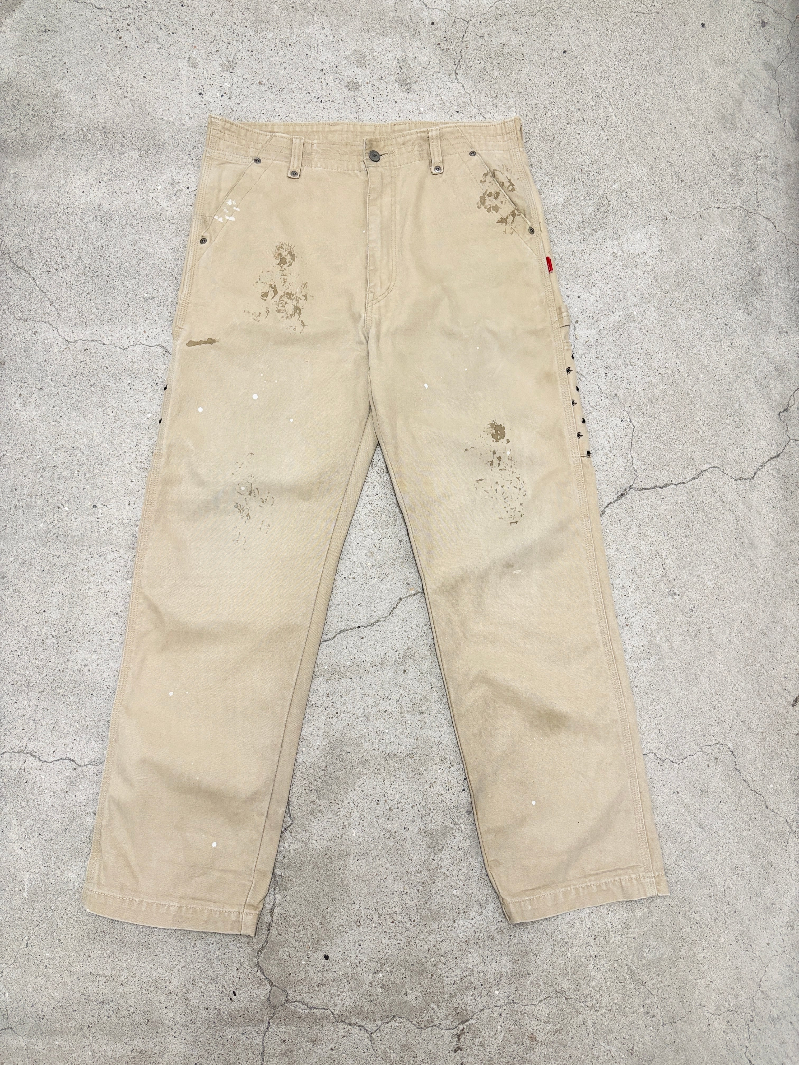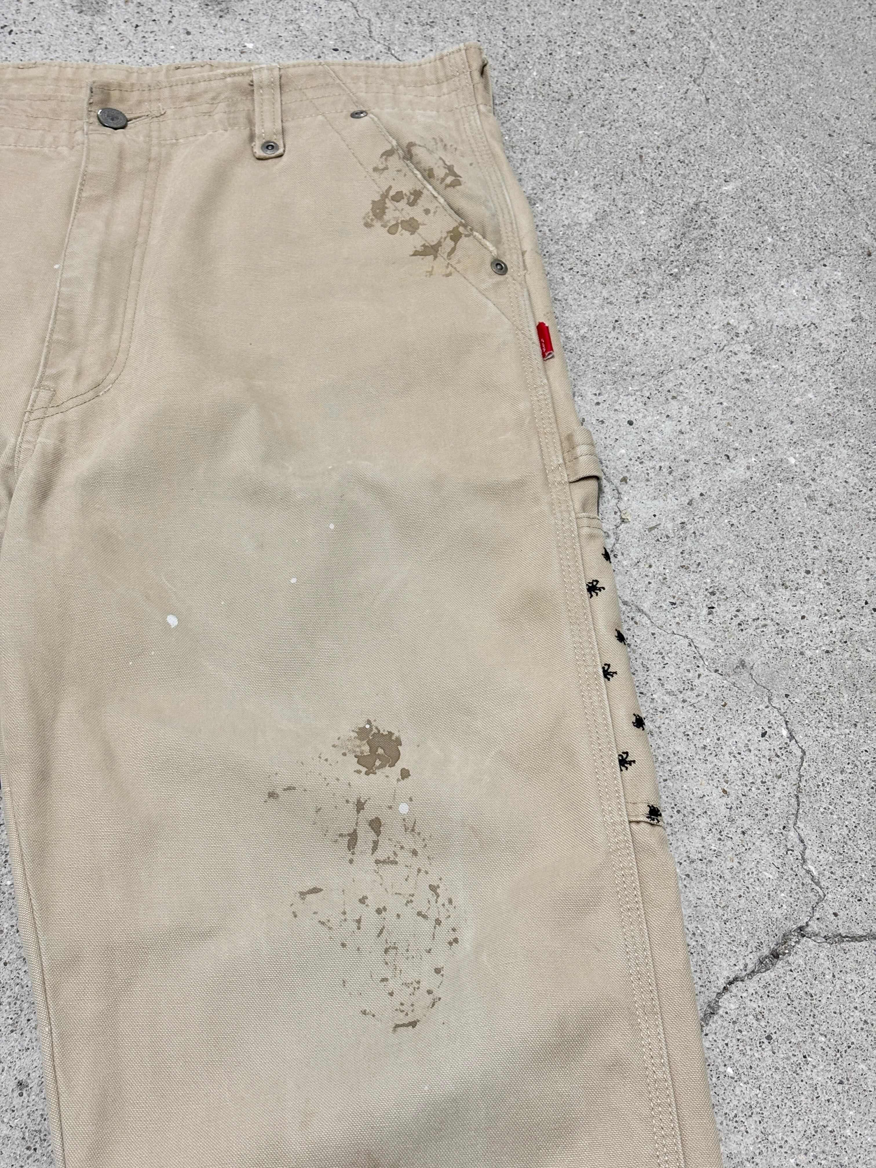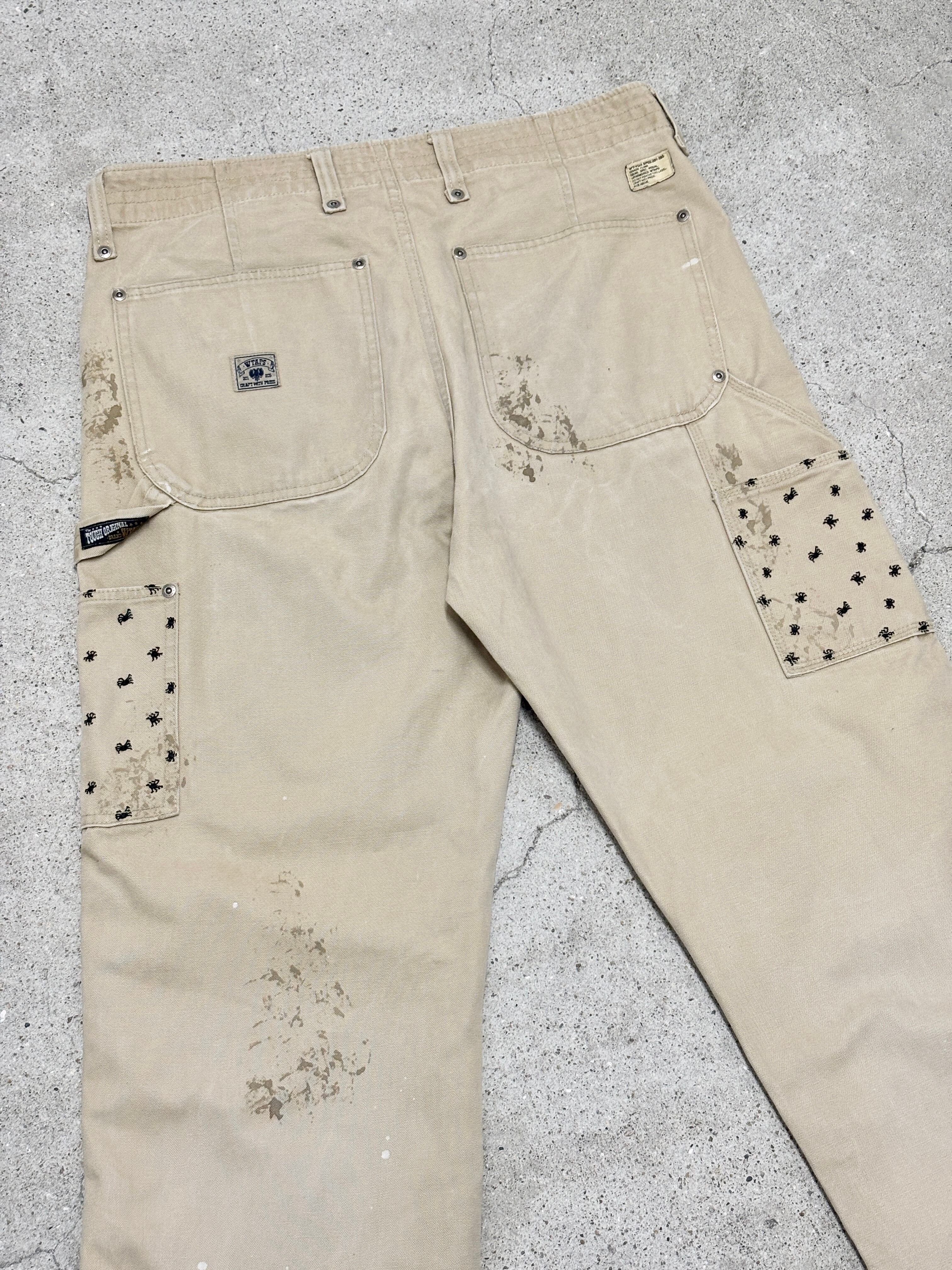00s WTAPS/09ss Painter pants/L相当/ペインタ-パンツ/ワークパンツ/ペイント加工/蜘蛛刺繍/ベ-ジュ/ダブルタップス/ルード/古着/ア―カイブ