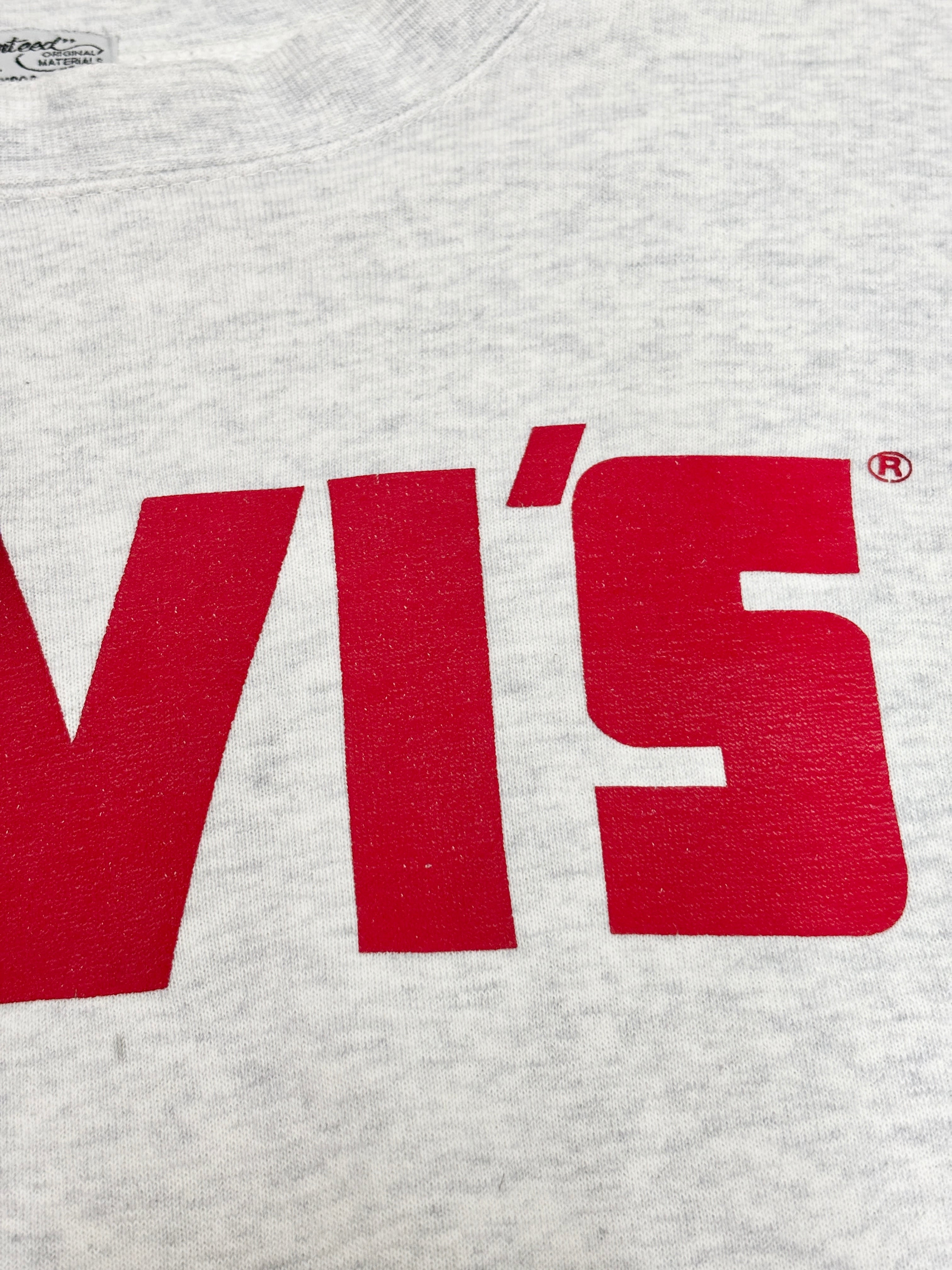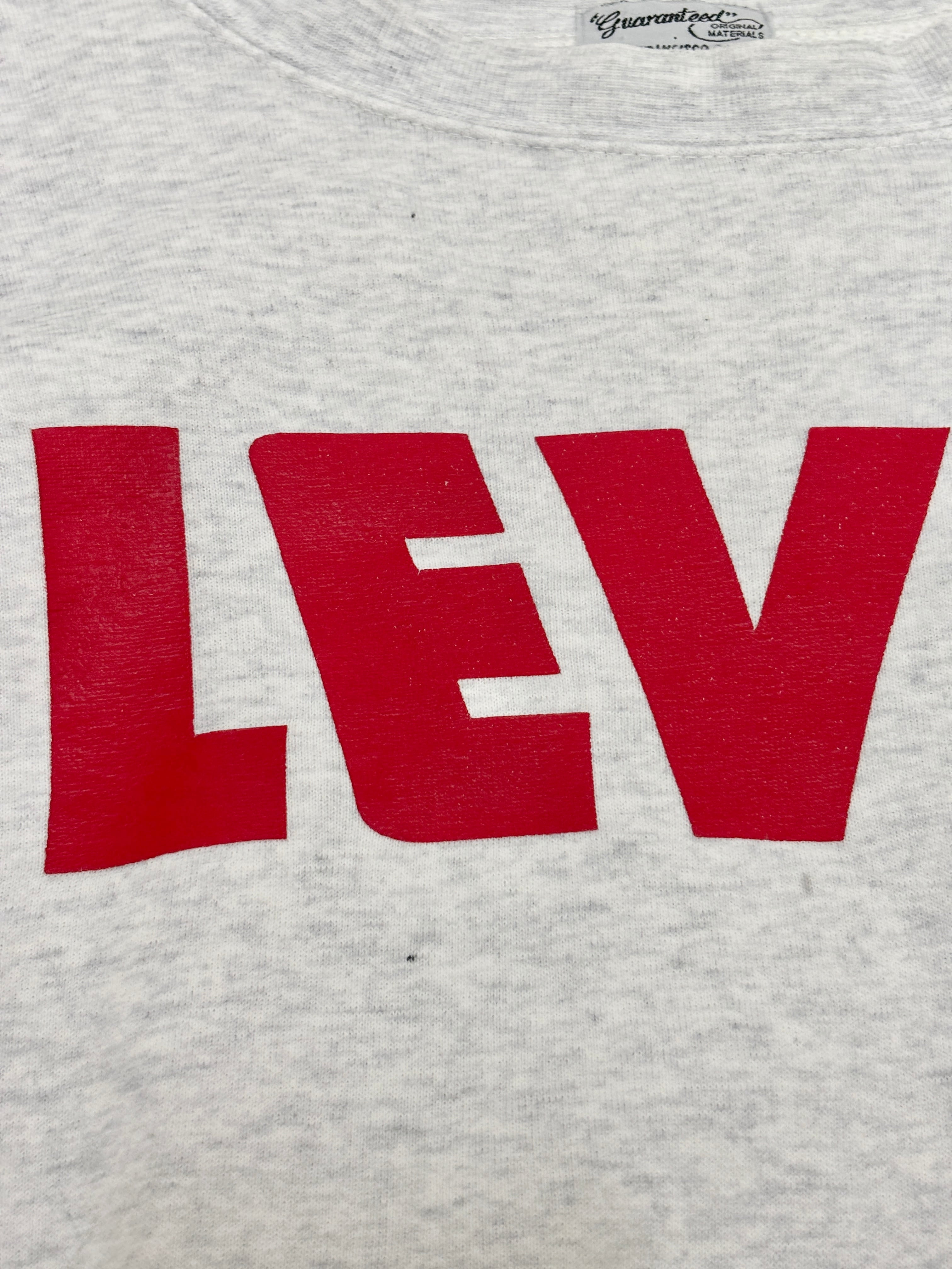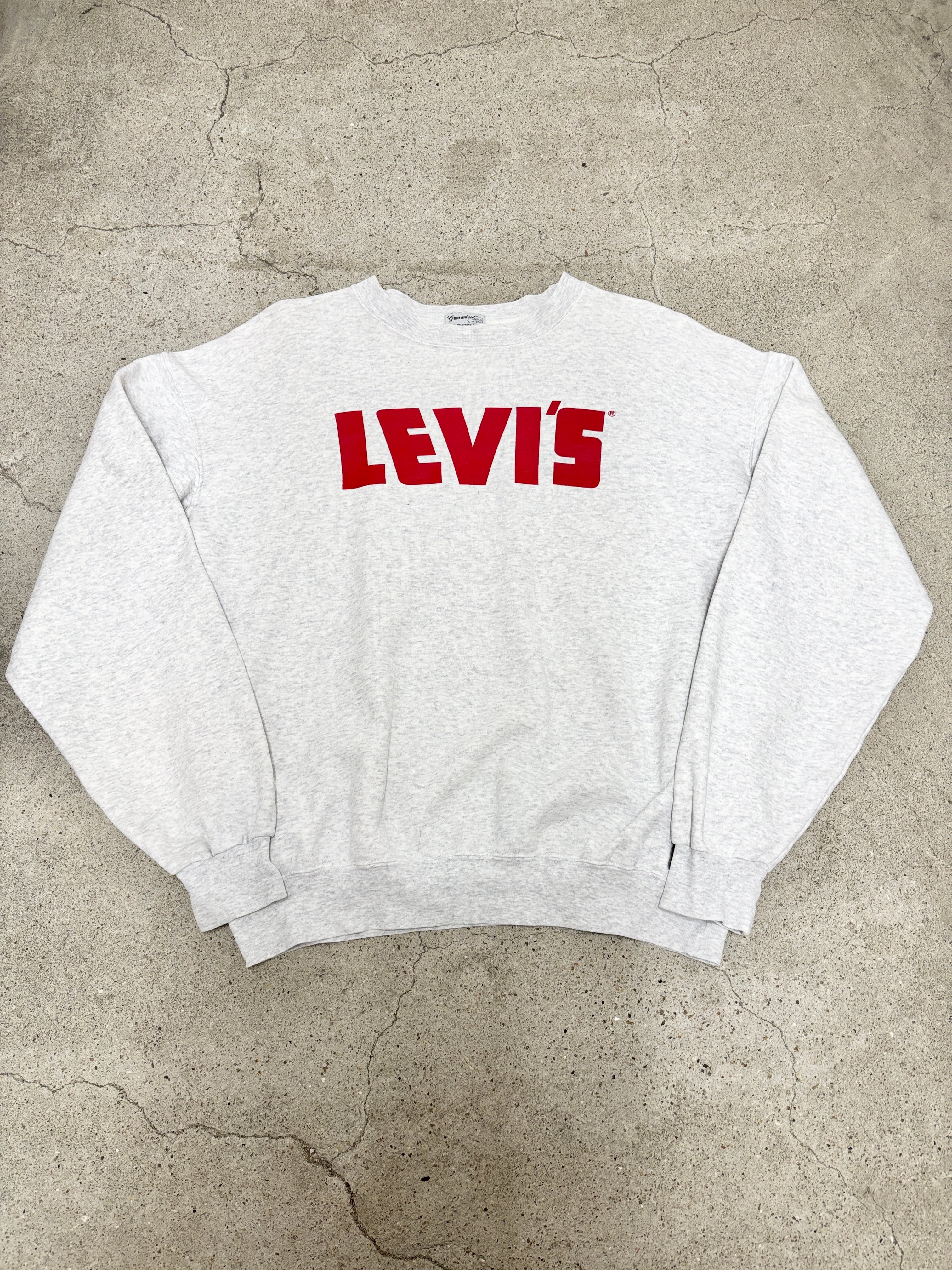 90s Levi`s/Logo print Sweat/1992年/日本製/L/ロゴプリントスウエット/BIG E/グレ-/レッド/リ-バイス