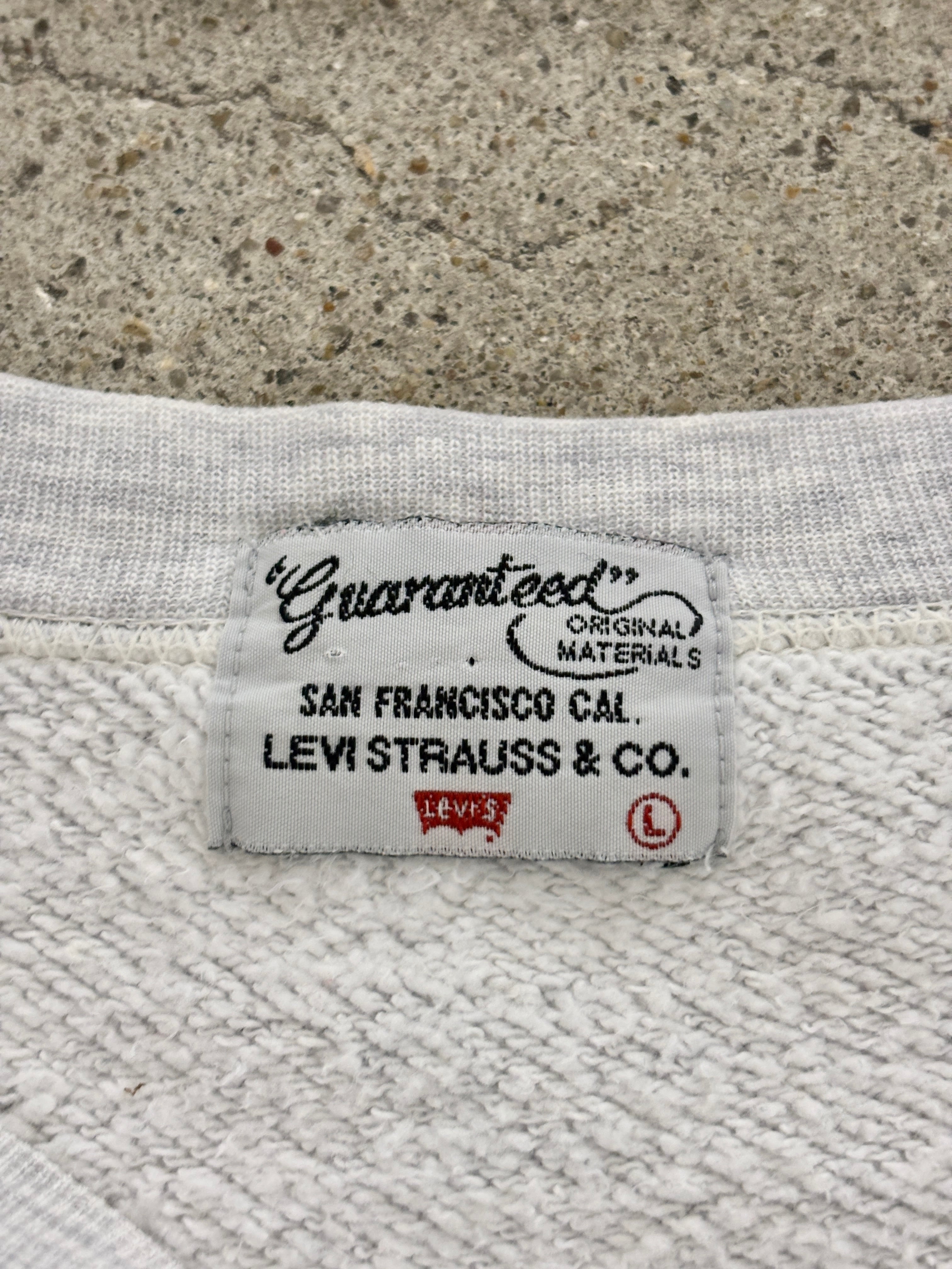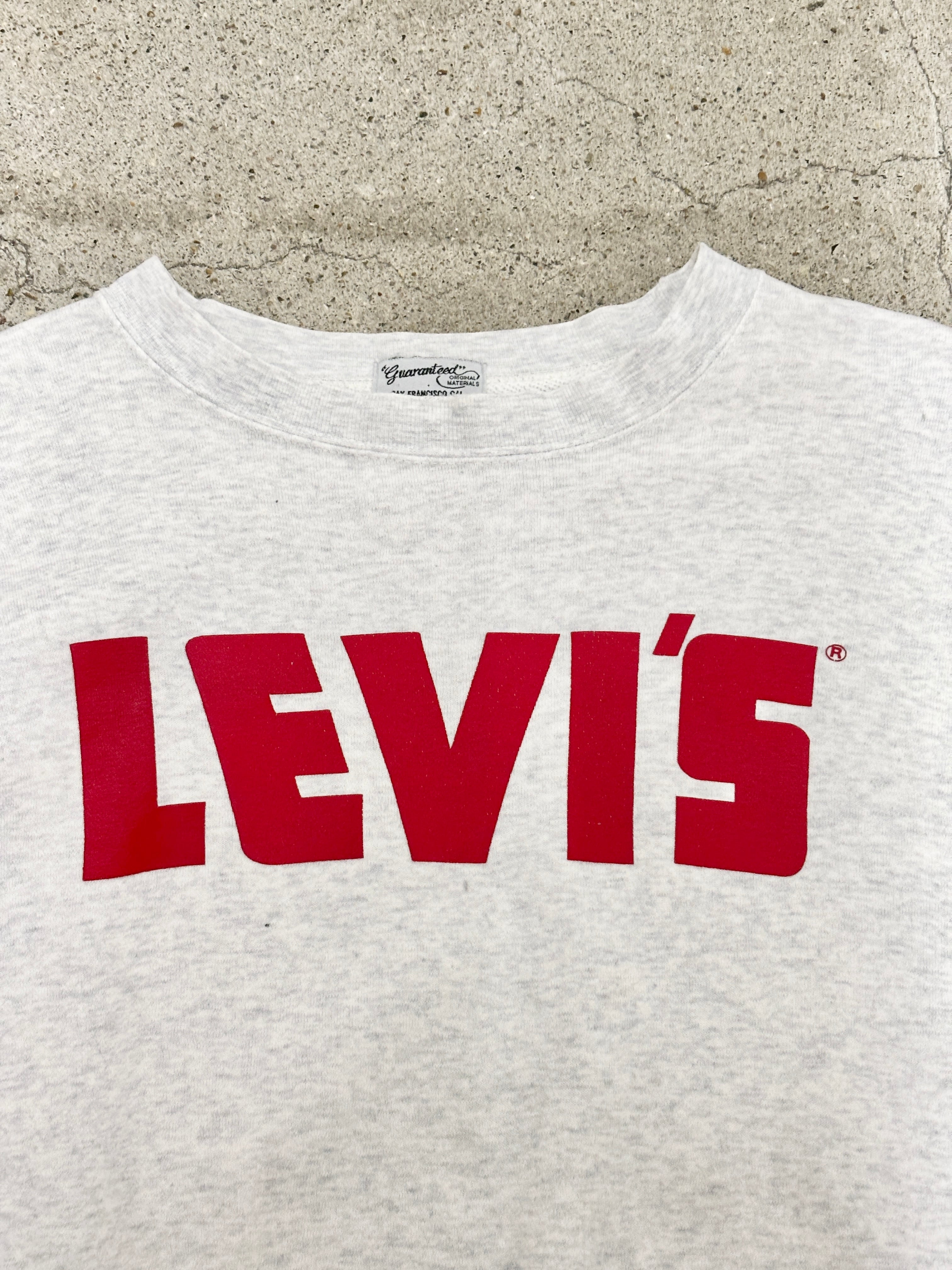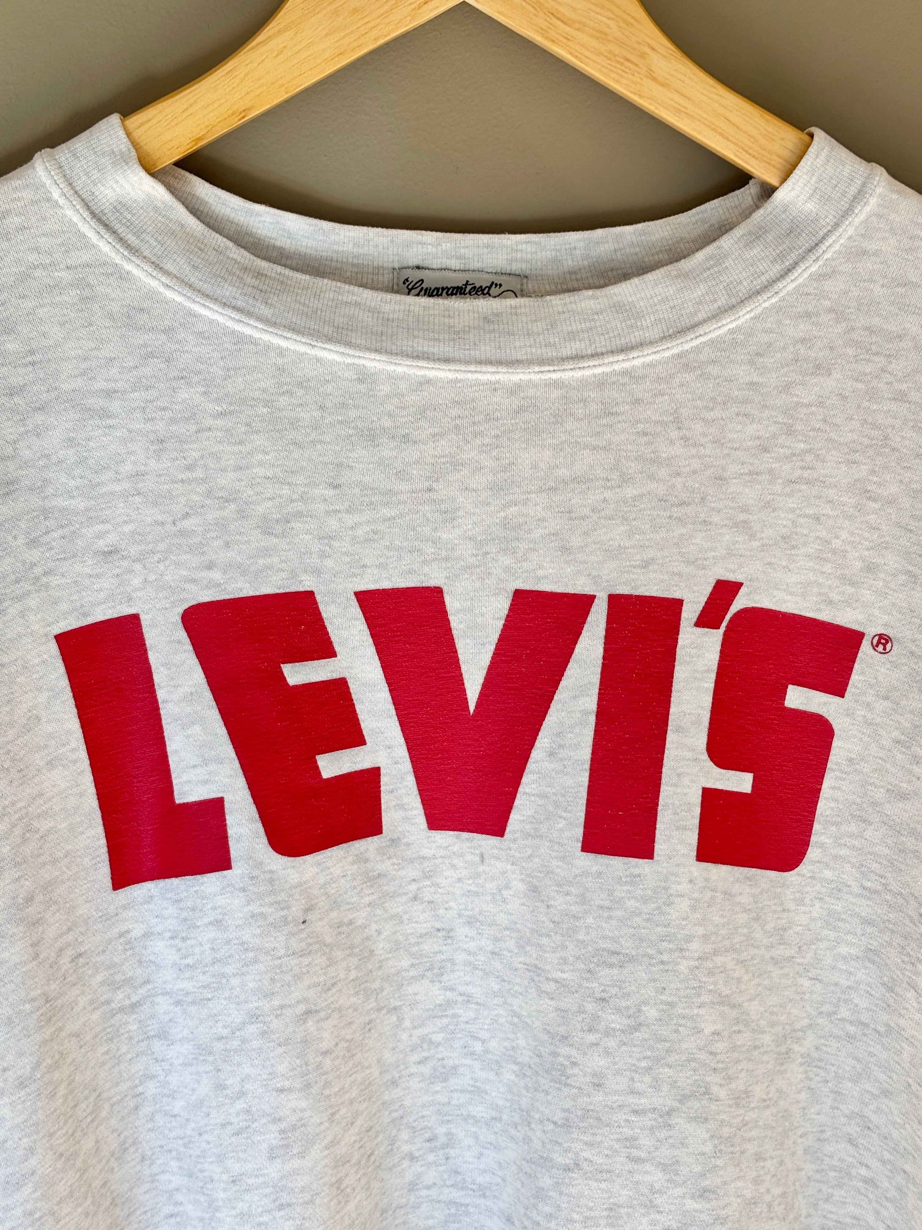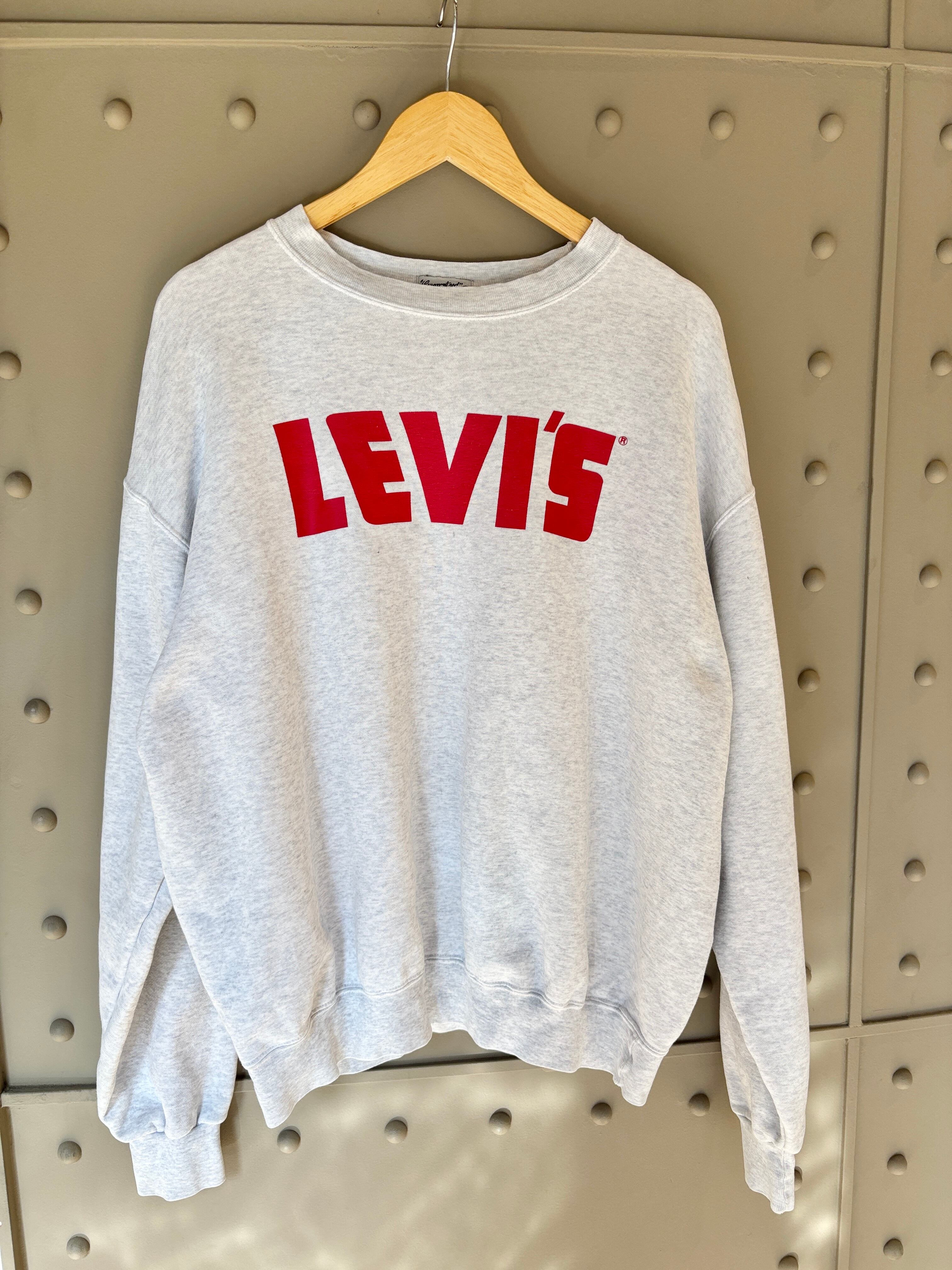 90s Levi`s/Logo print Sweat/1992年/日本製/L/ロゴプリントスウエット/BIG E/グレ-/レッド/リ-バイス