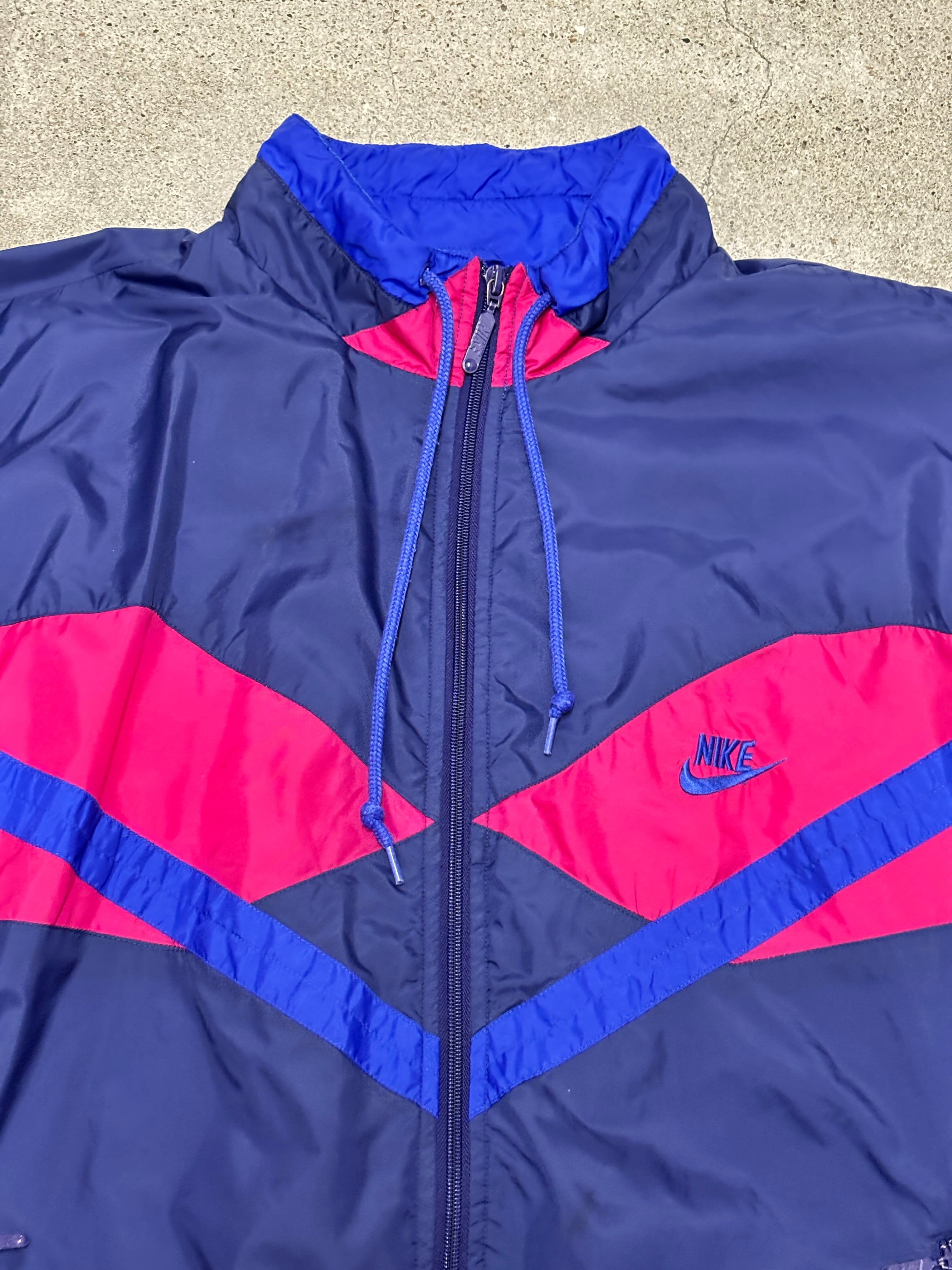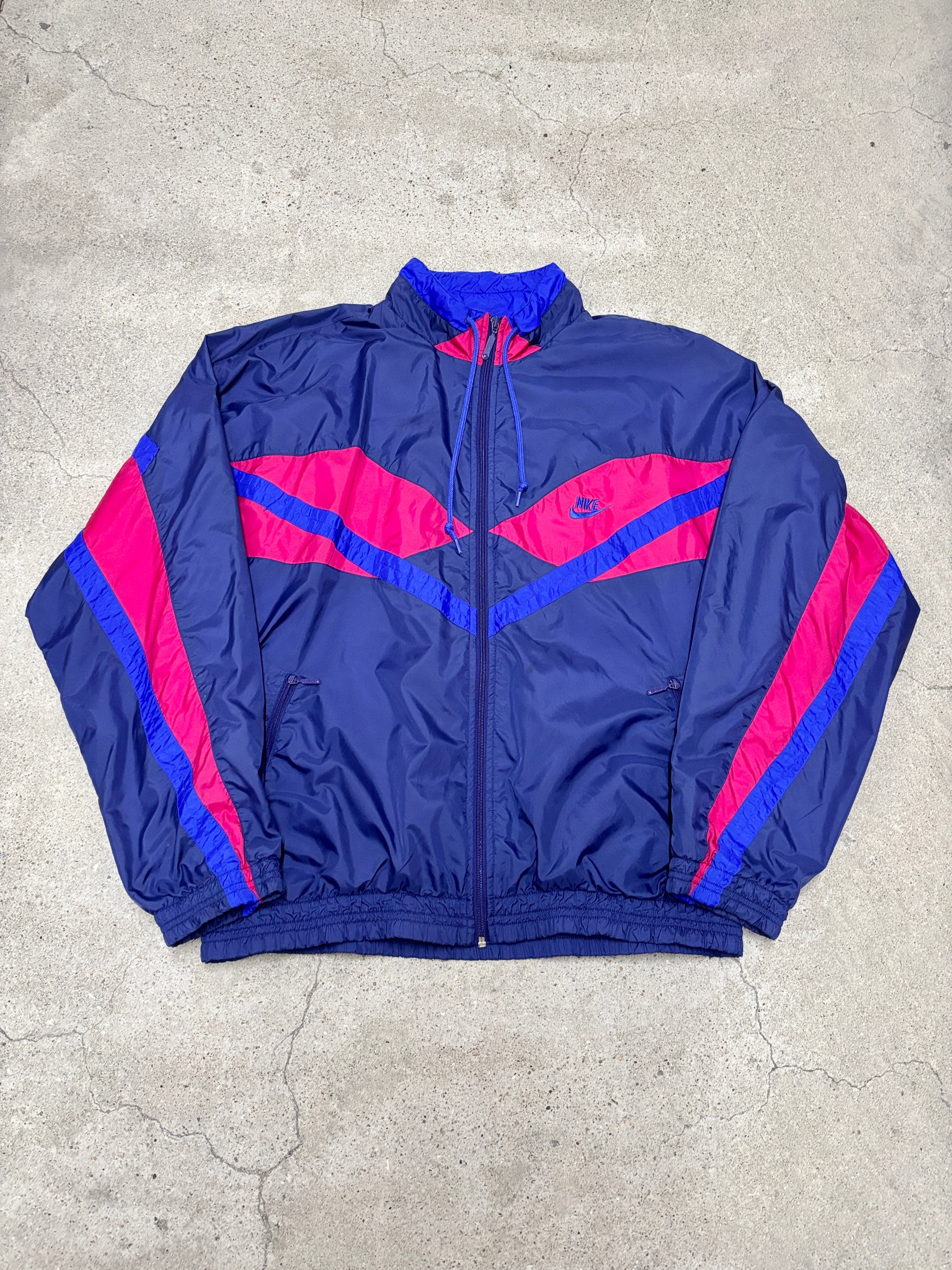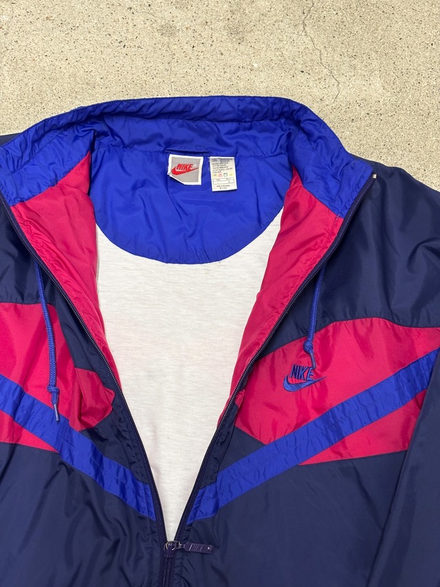90~00s NIKE/Nylon Jacket/銀タグ/L/ナイロンジャケット/スウォッシュロゴ/刺繍ロゴ/ネイビ-/パ-プル/ナイキ/古着/ア―カイブ