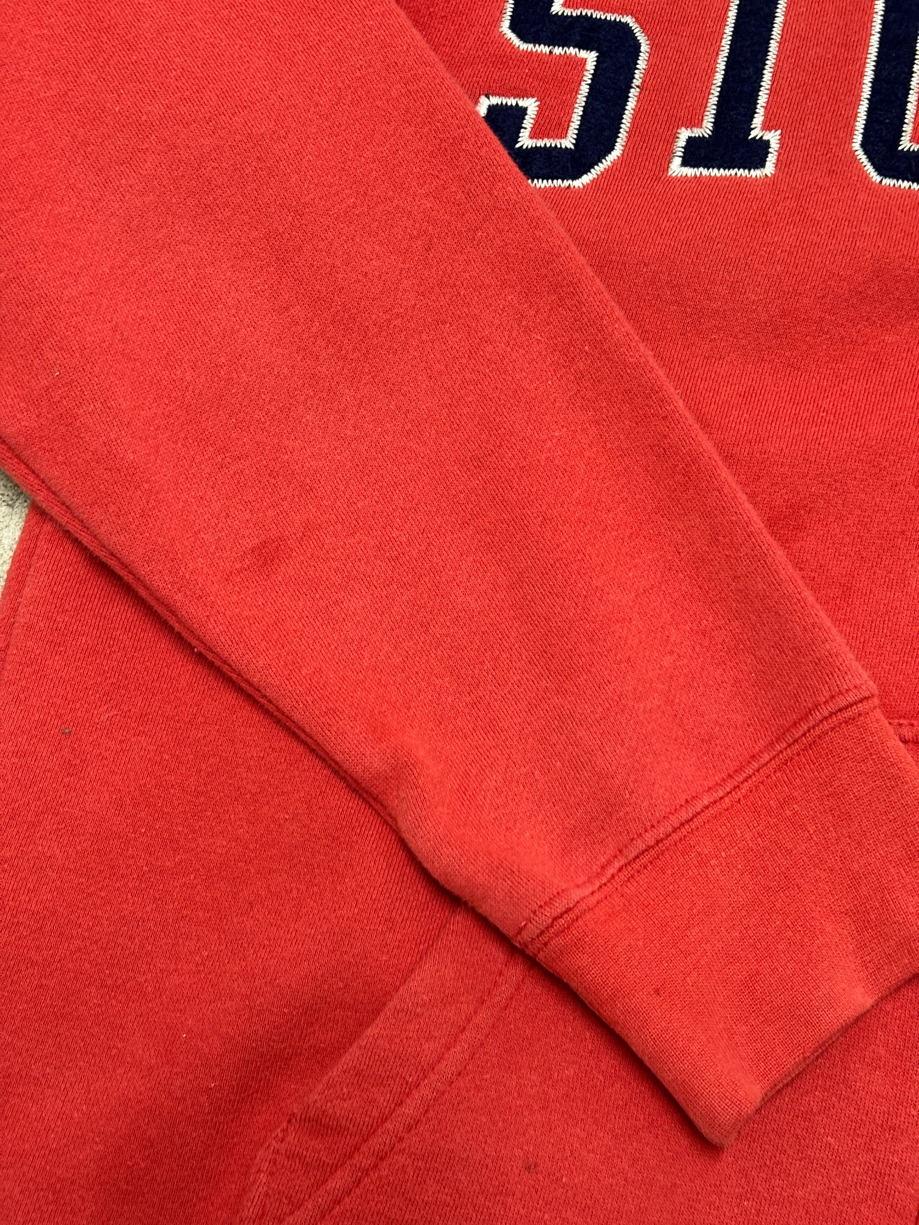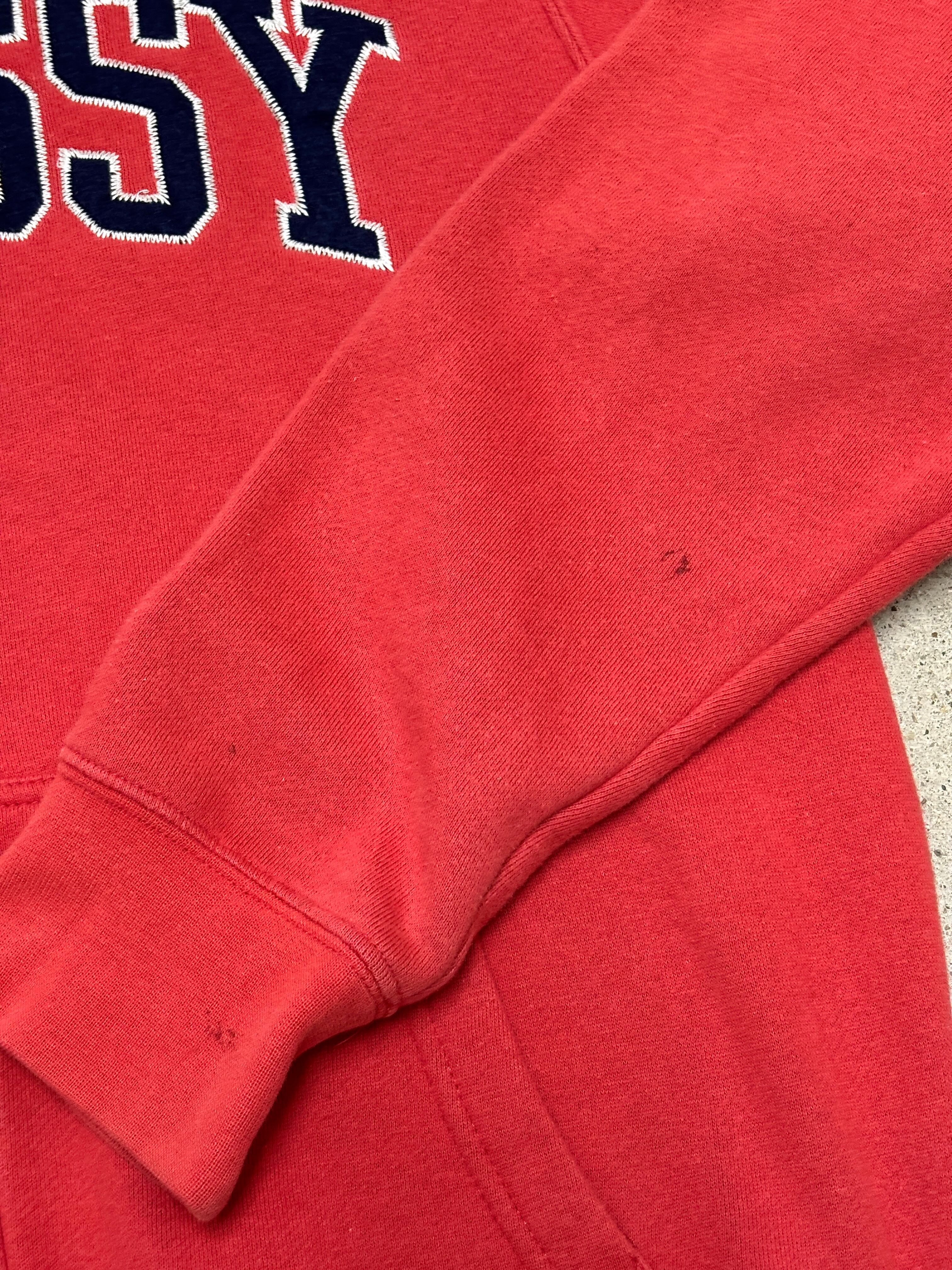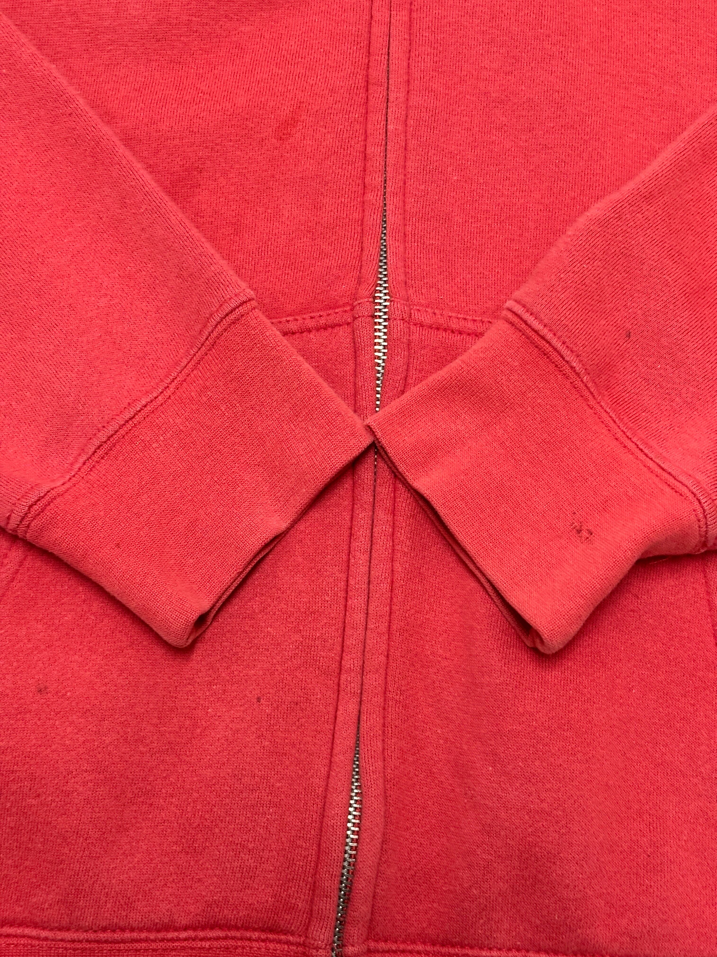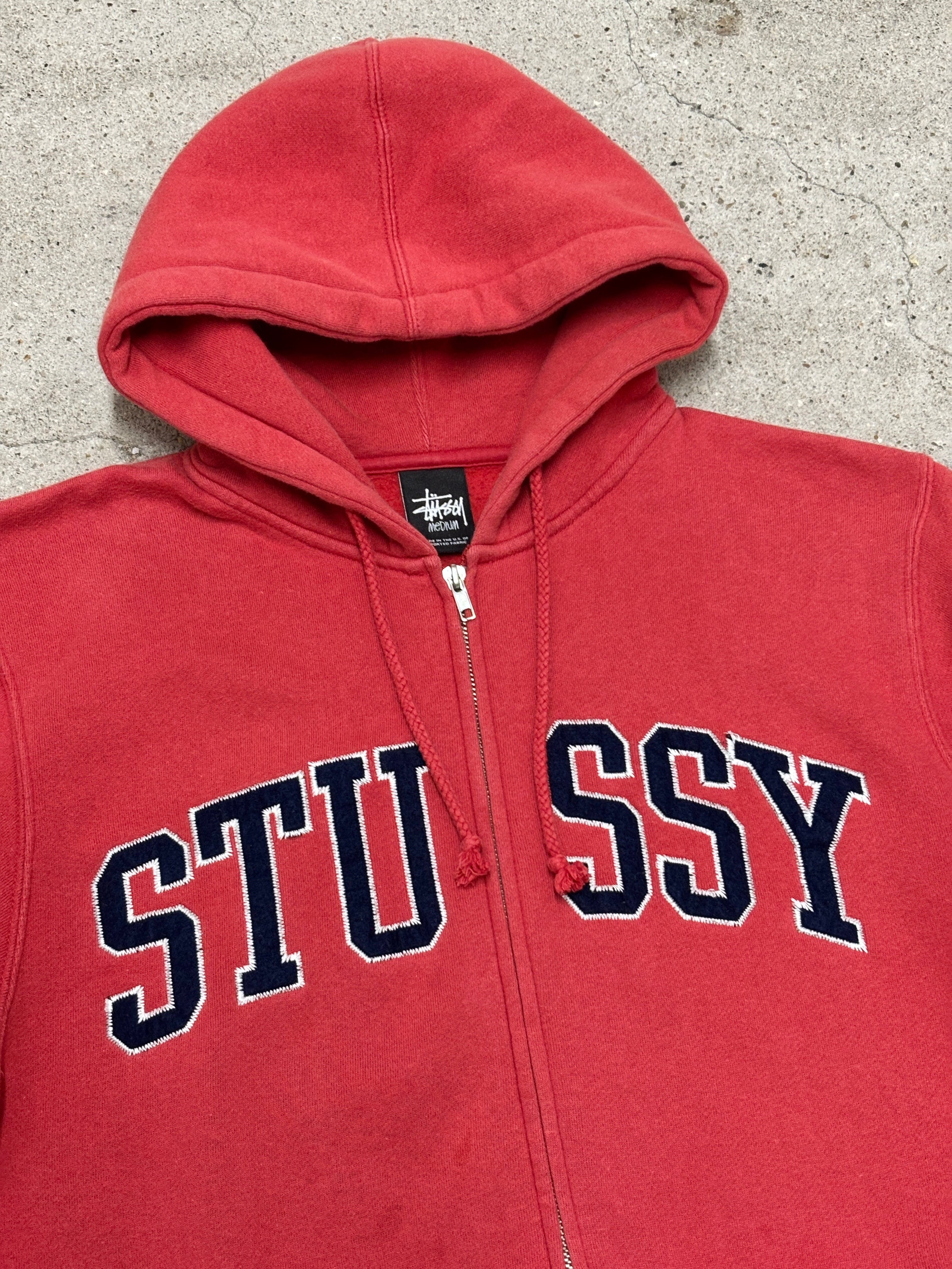 10s STUSSY/Logo patch zip Hoodie/M/ロゴパッチジップパ-カ-/フ-ディ-/レッド/ステューシー/古着/ア―カイブ